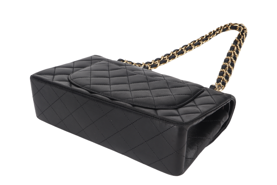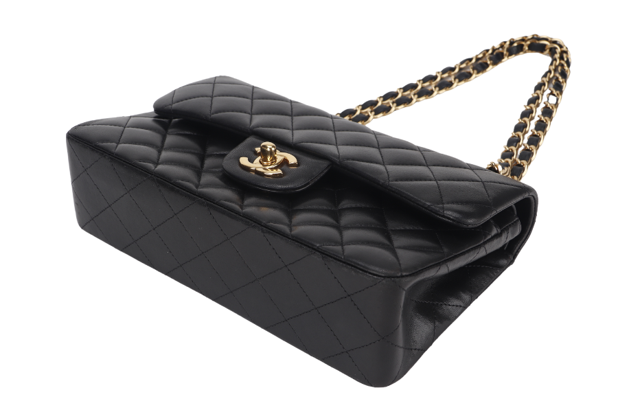 CHANEL CLASSIC FLAP SMALL BLACK LAMBSKIN GOLD HARDWARE WITH (1547xxxx) WITH DUST COVER AND BOX