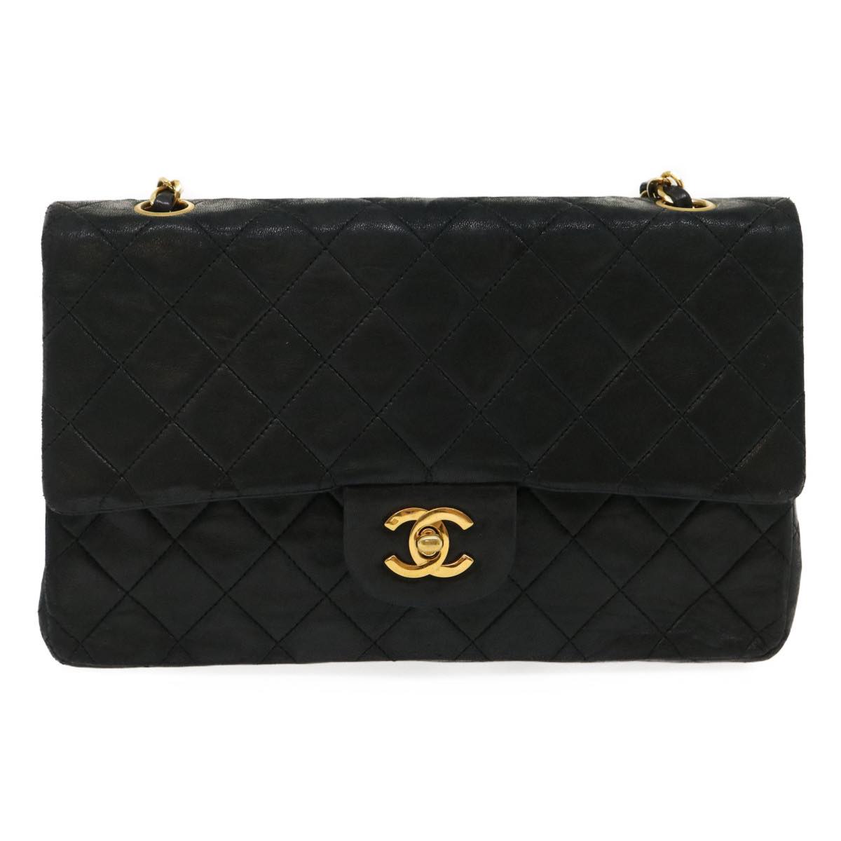 Chanel Classic Matelasse 25 Chain Flap Shoulder Bag Lamb Skin Black Auth 29592A