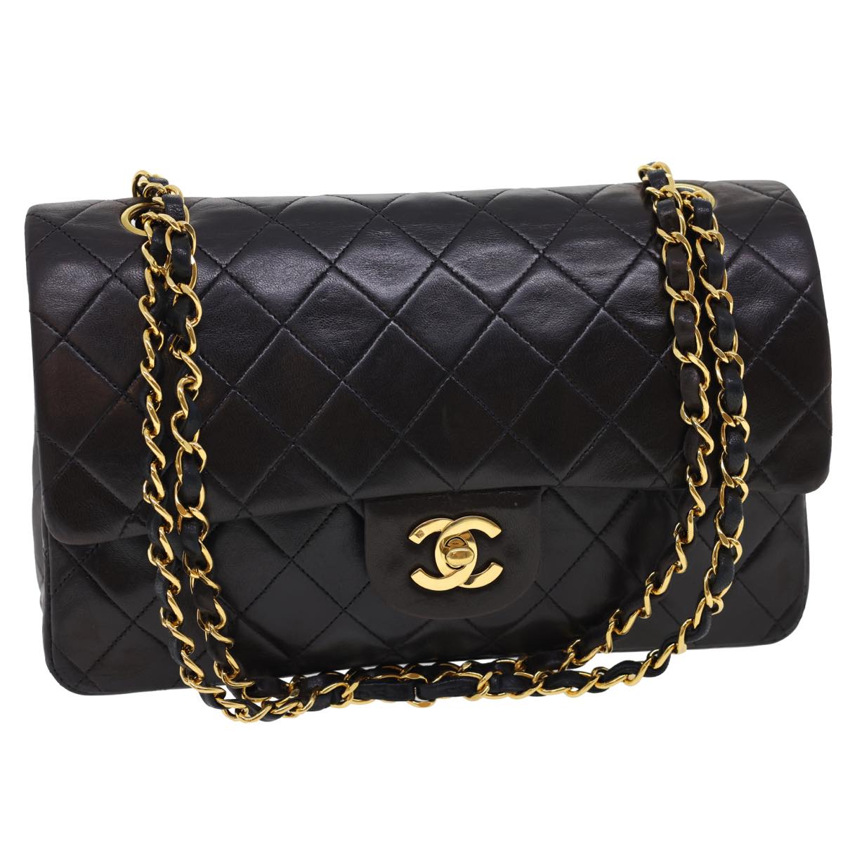 Chanel Classic Matelasse 25 Chain Flap Shoulder Bag Lamb Skin Black Auth hs649A