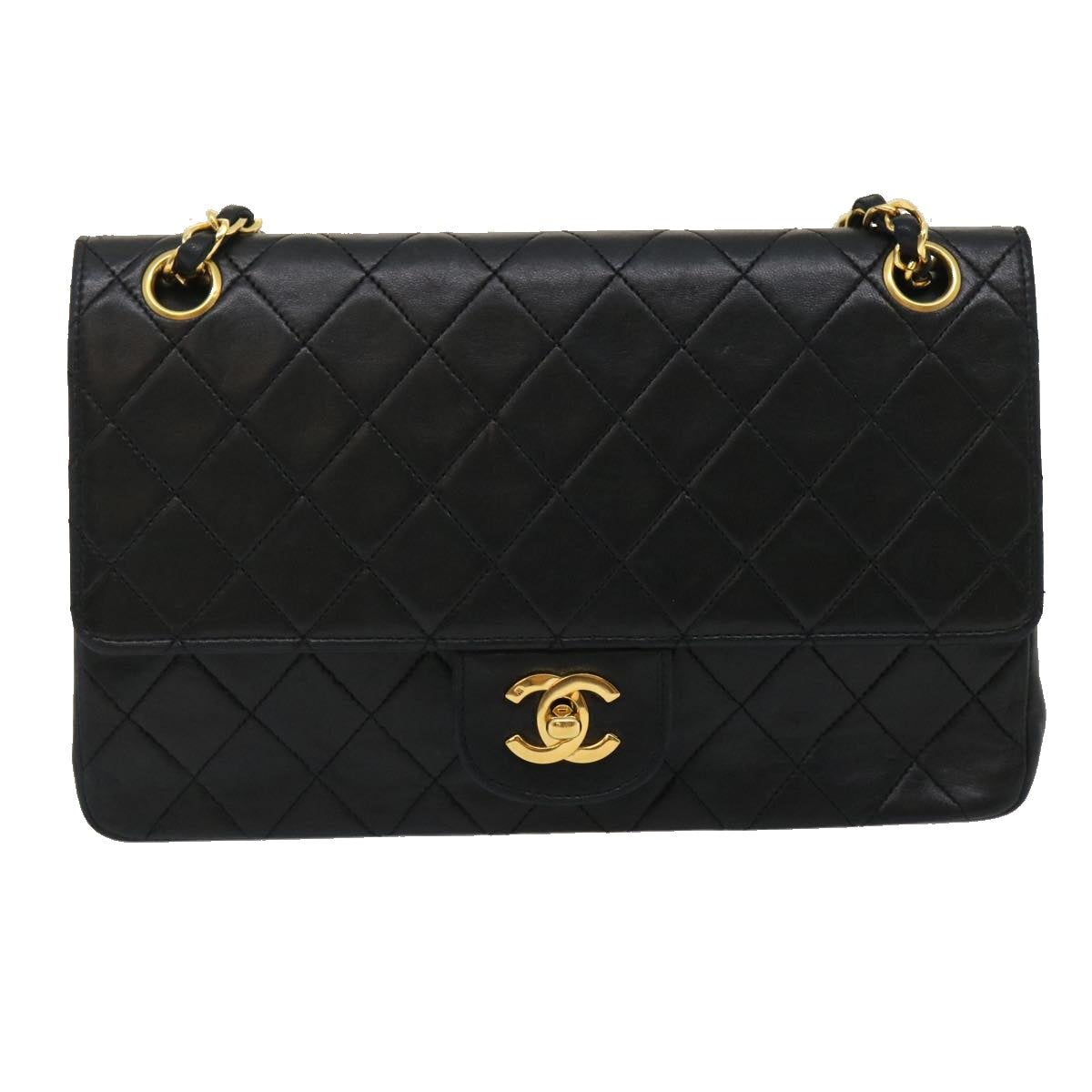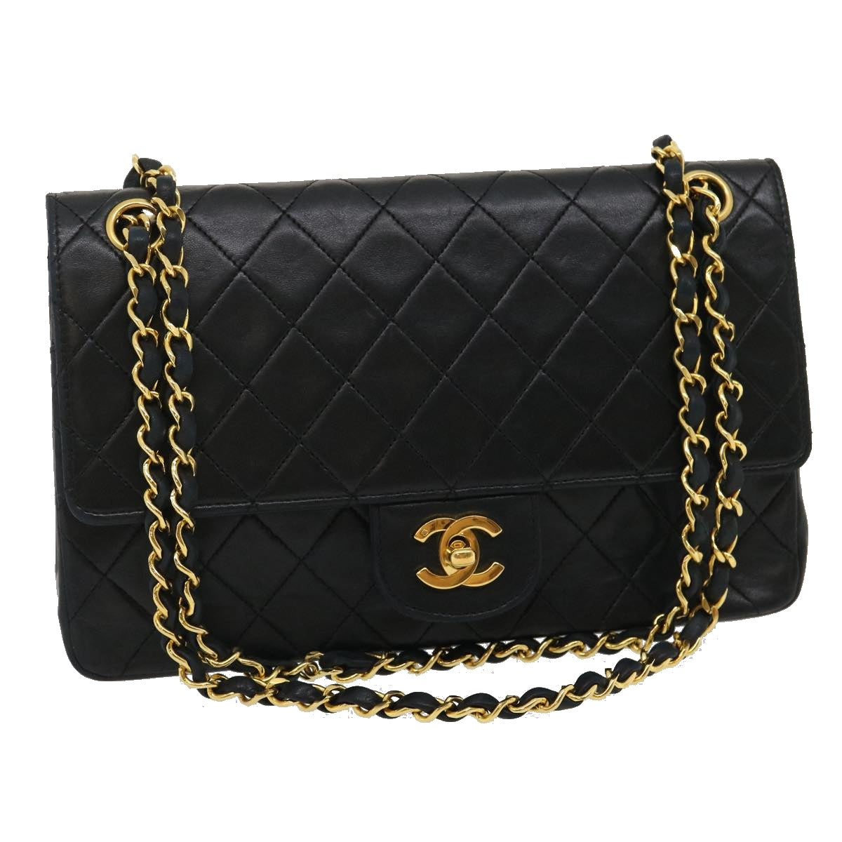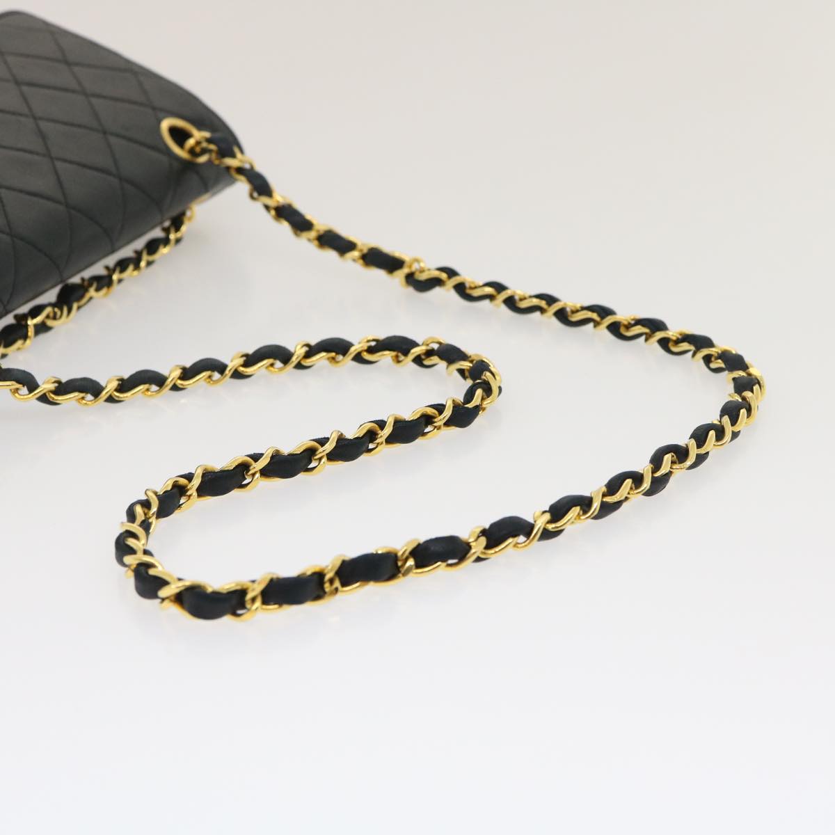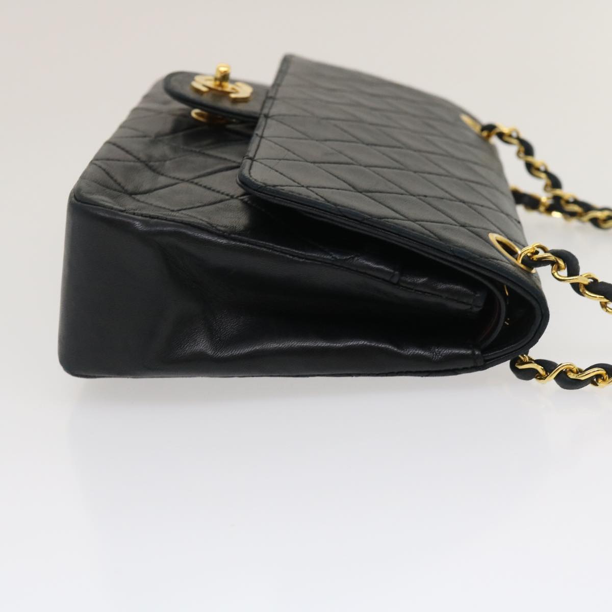 Chanel Classic Matelasse 25 Chain Flap Shoulder Bag Lamb Skin Black Auth lt449A