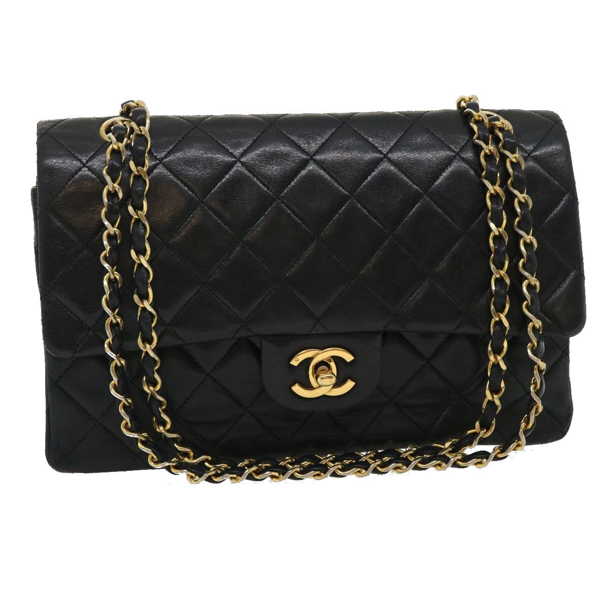 Chanel Classic Matelasse 25 Chain Flap Shoulder Bag Lamb Skin Black lt448A