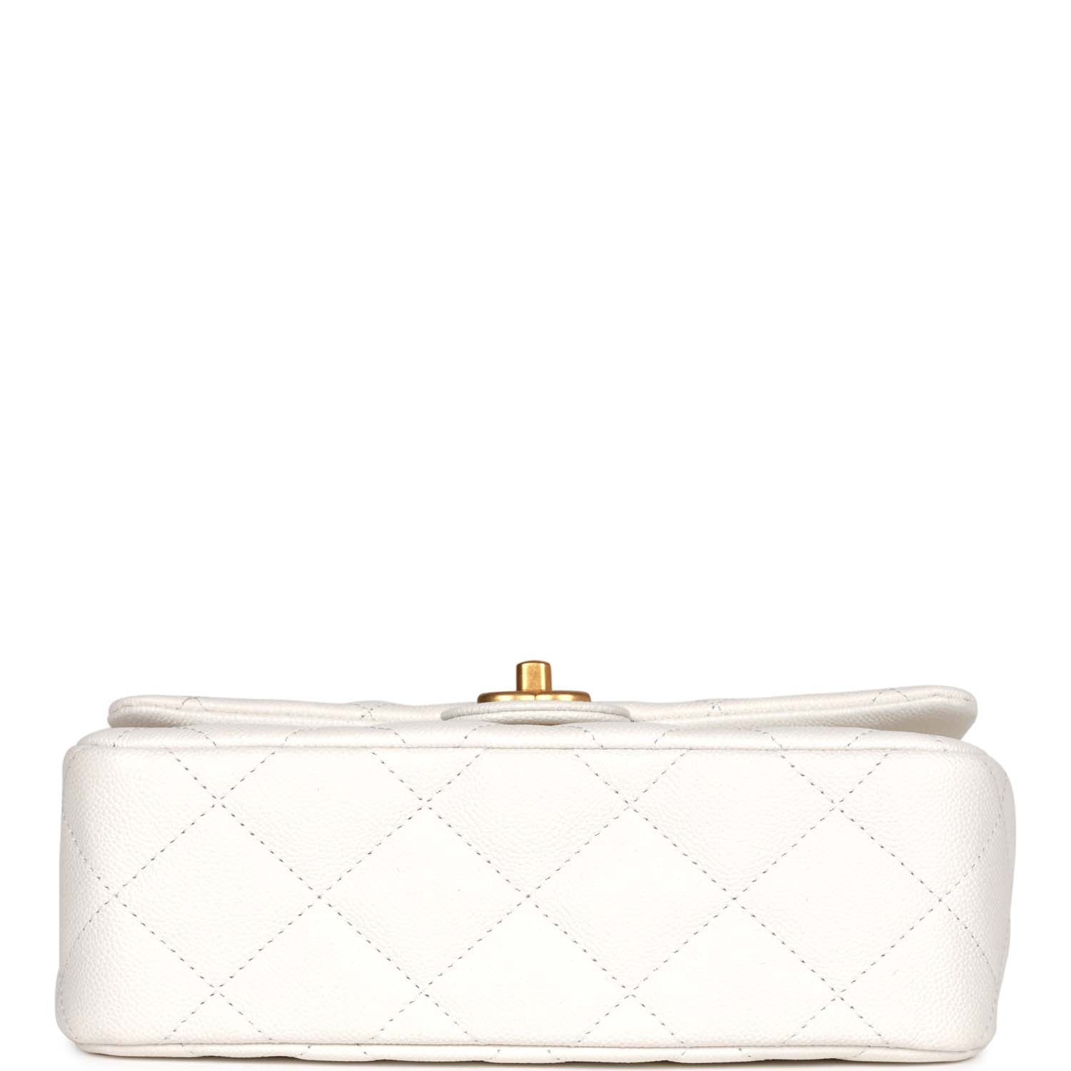 Chanel Large Single Flap White Caviar Leather Antique Gold Hardware