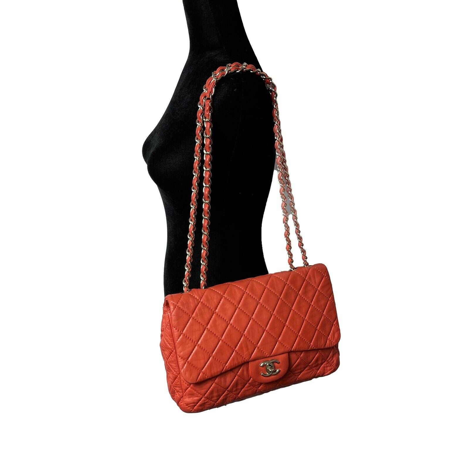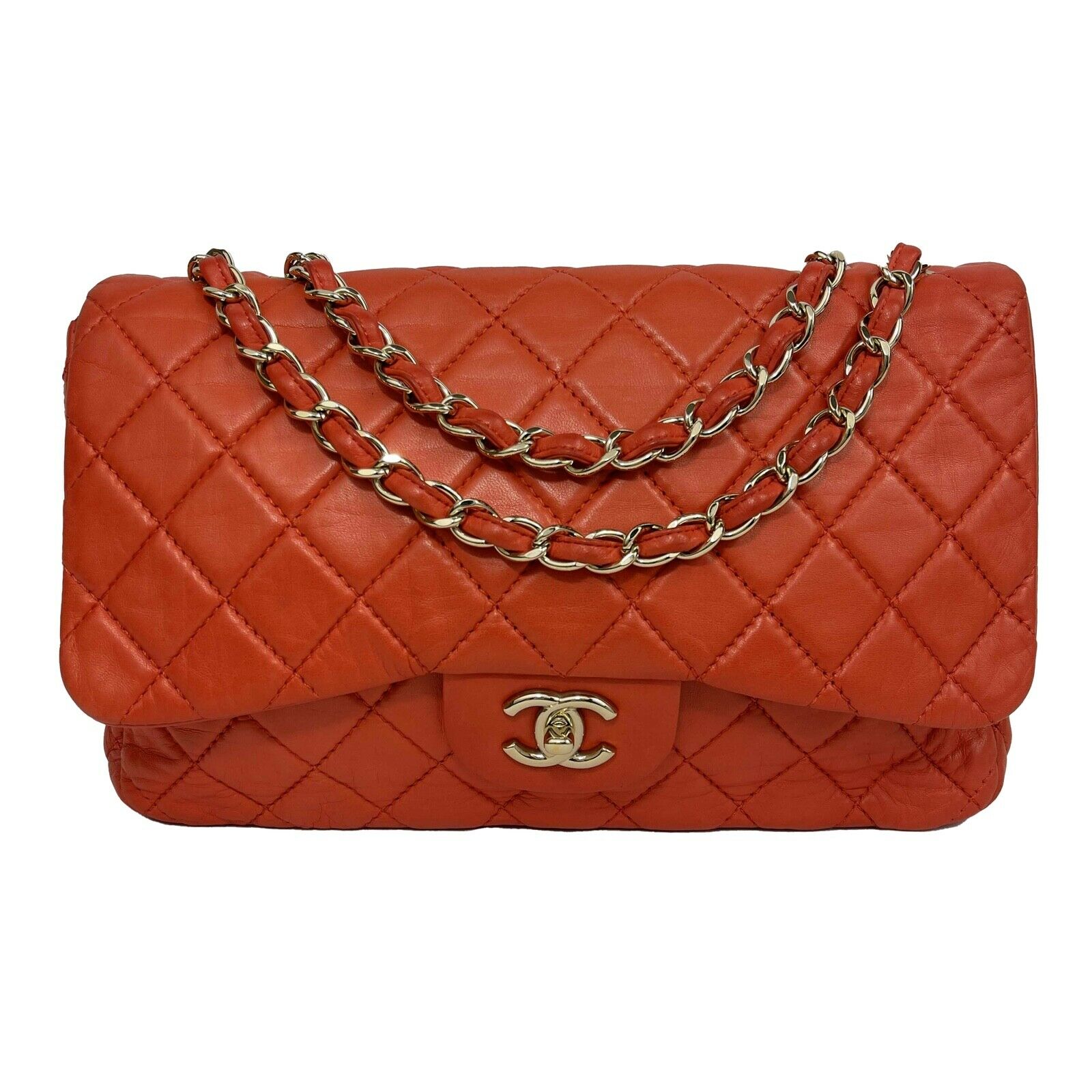 Chanel - Good - Classic Jumbo Single Flap Quilted Lambskin - Champagne Gold, Coral - Handbag