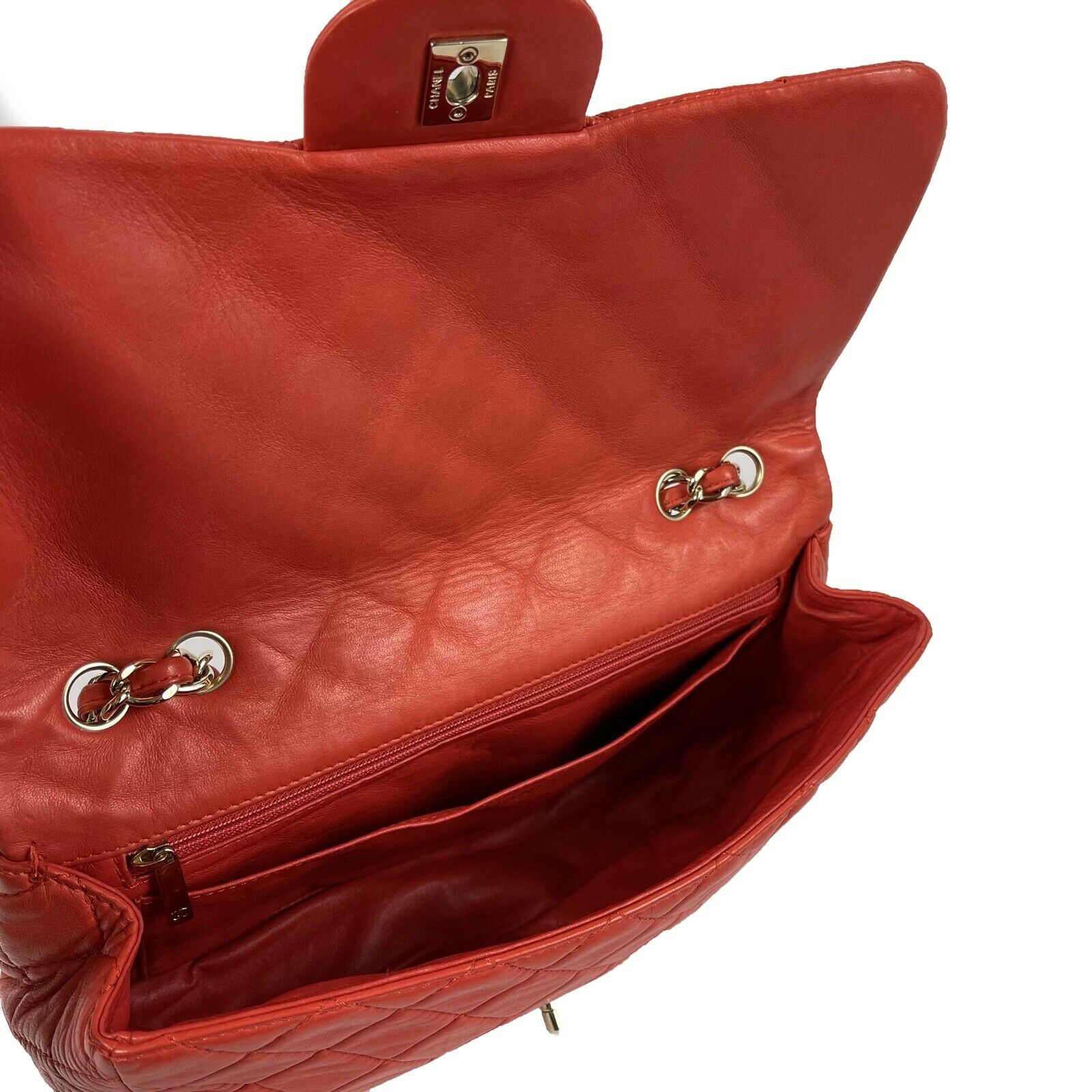 CHANEL - Classic Single Flap Jumbo Quilted Lambskin - Champagne Gold Red Handbag