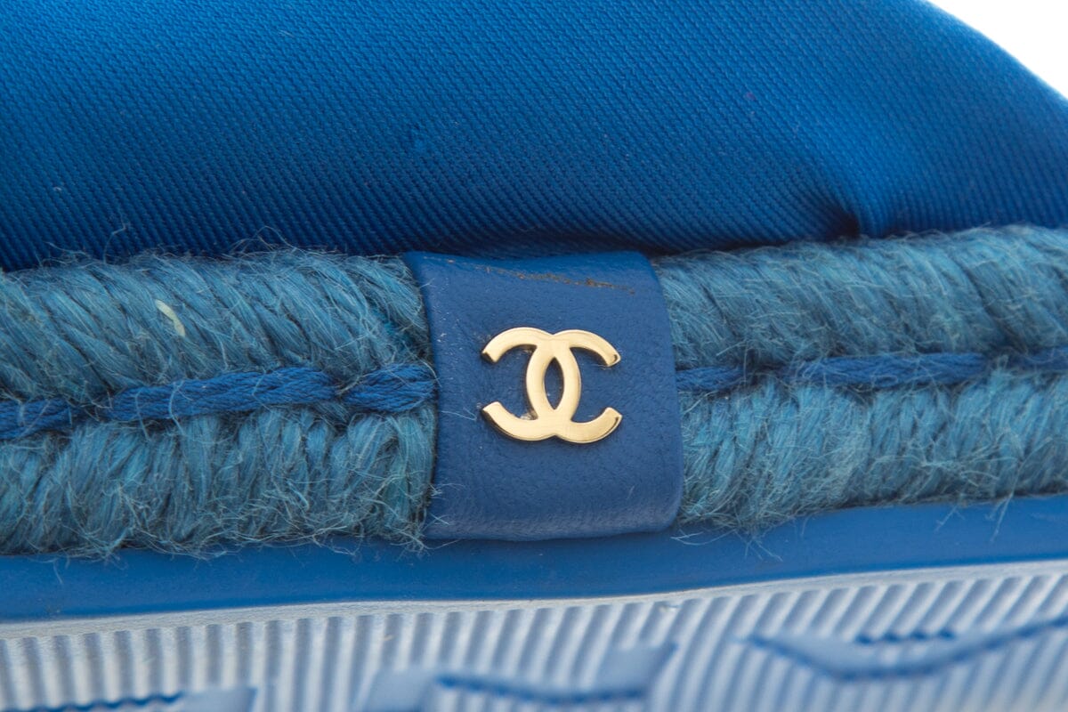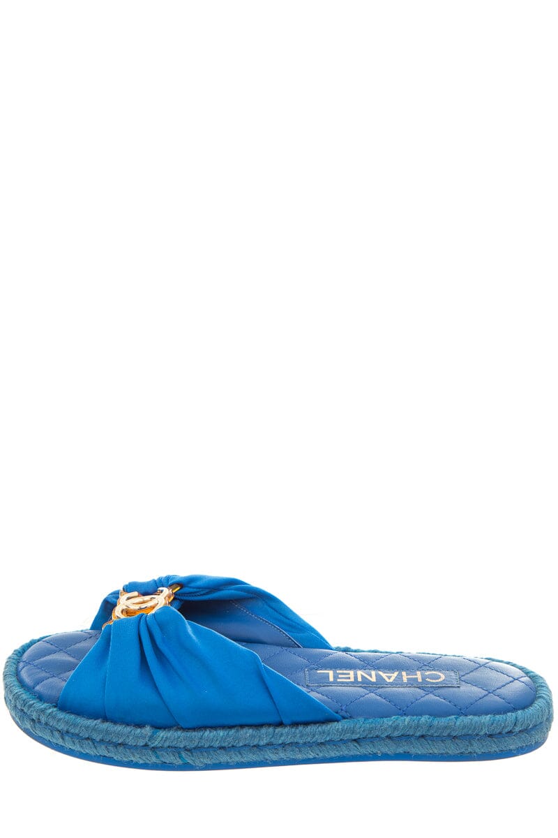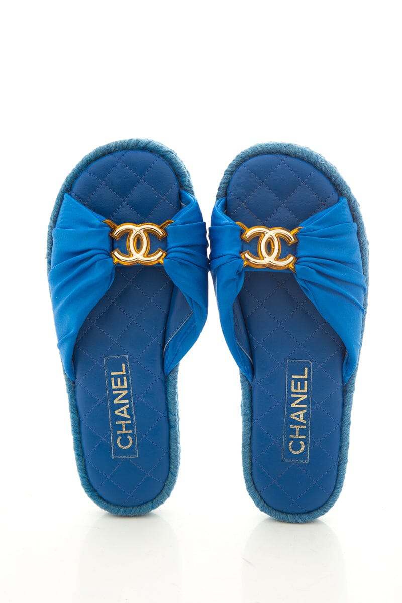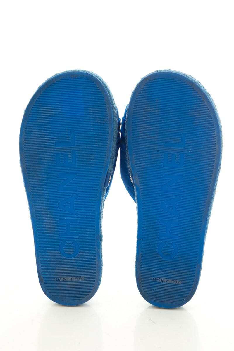 Chanel "Cloth" Blue Slides with Gold Hardware. This item is in good condition.