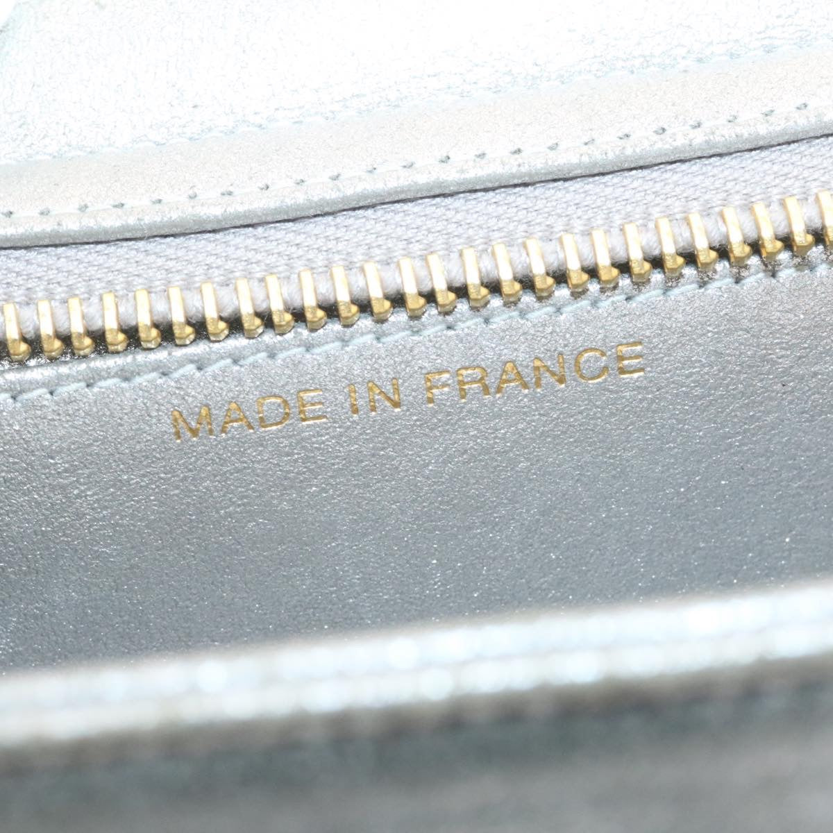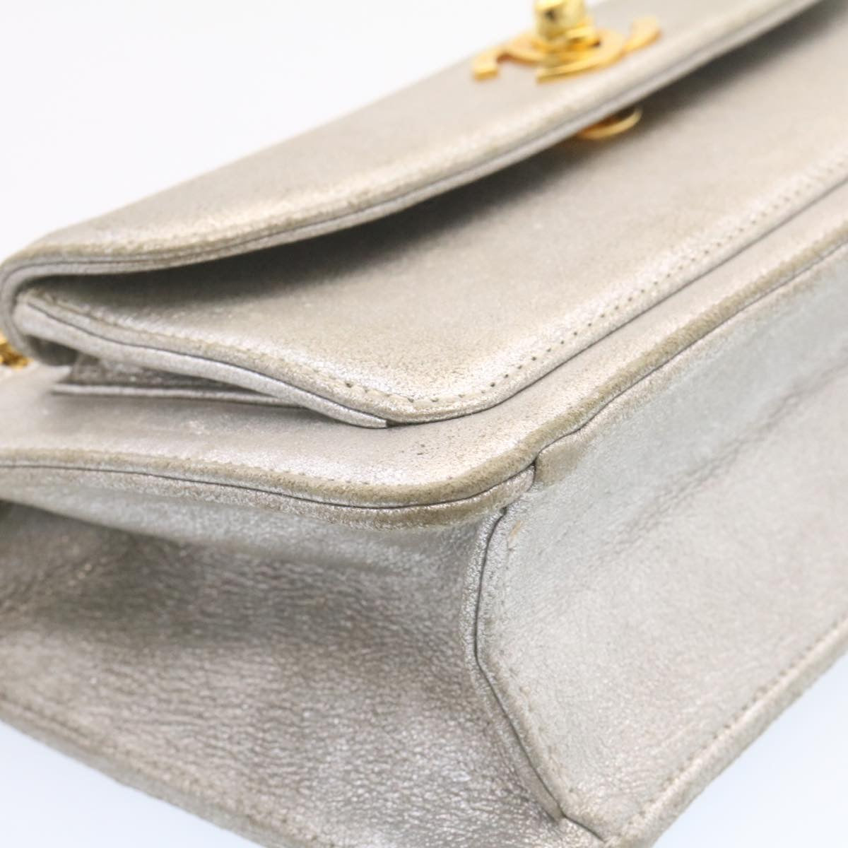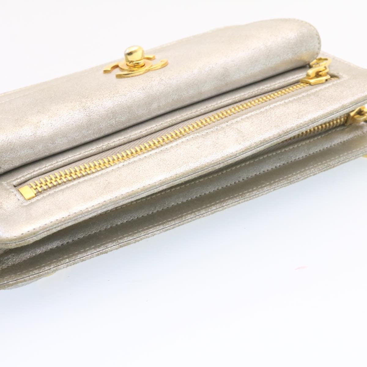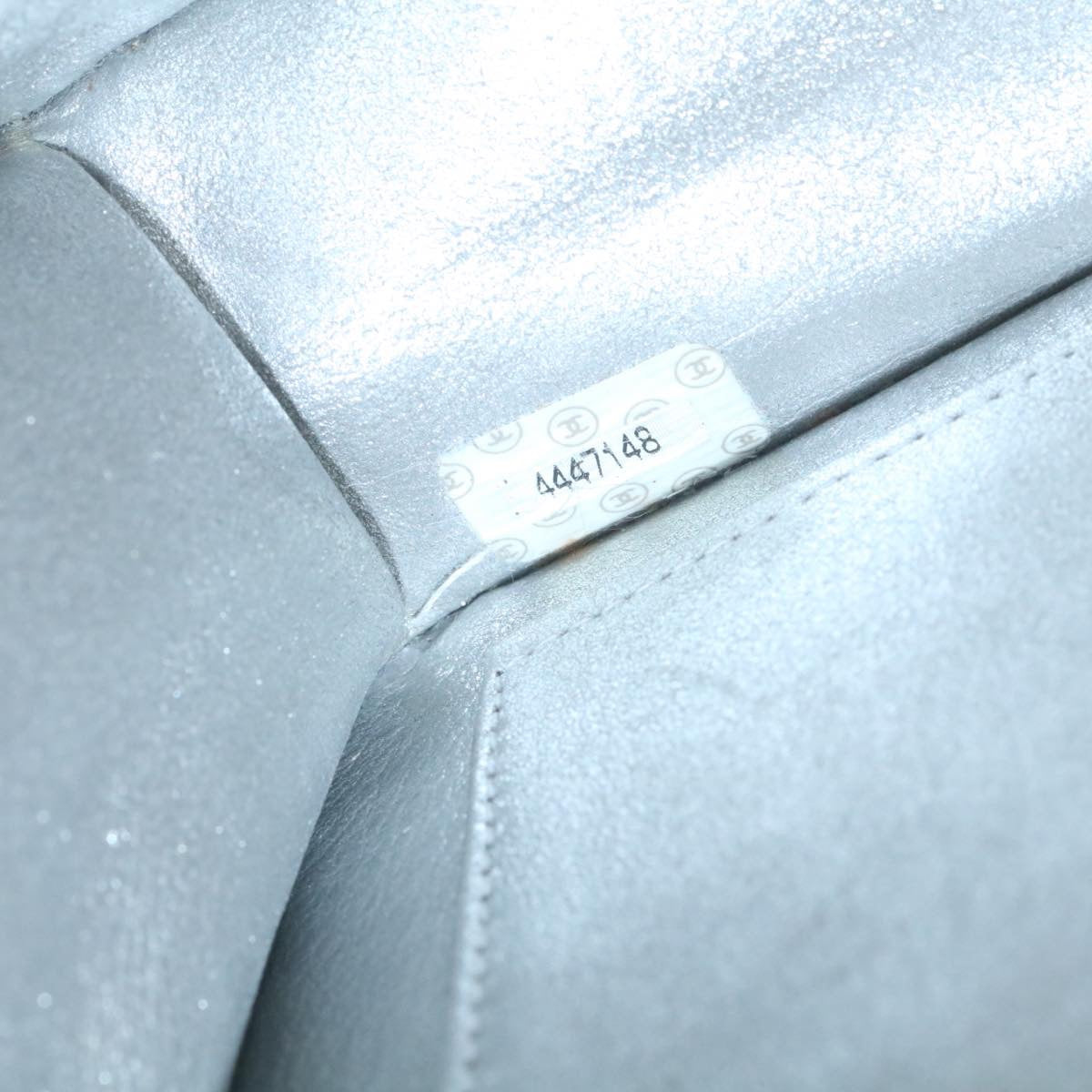 Chanel Clutch Bag Leather Silver CC Auth 26857