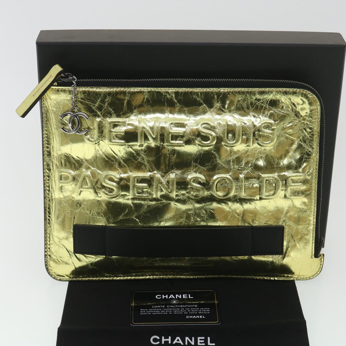 Chanel Clutch Bag Metallic Leather Gold A82164 CC Auth 38172