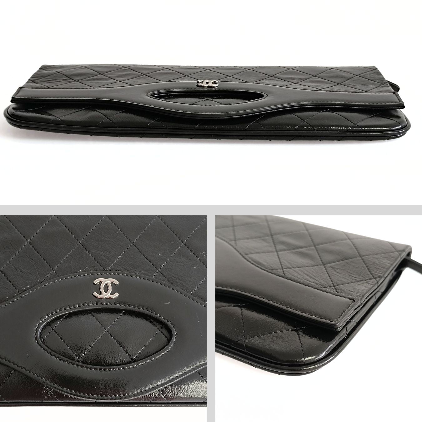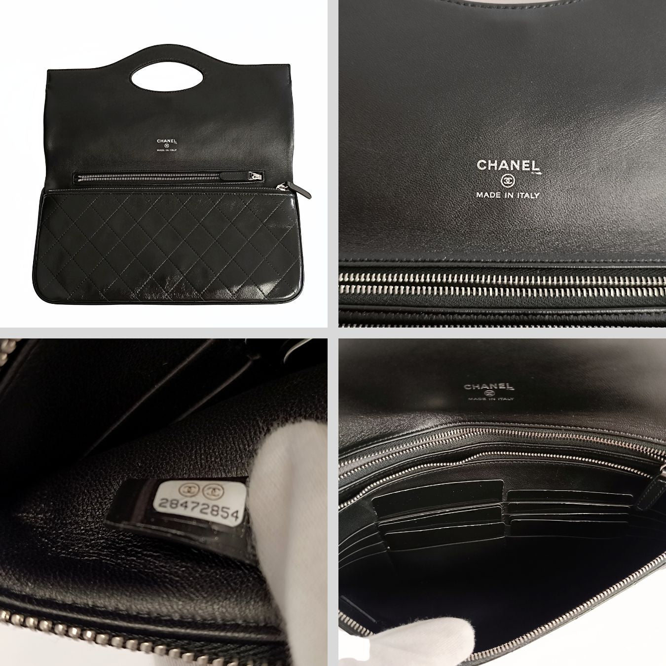 Chanel Clutch handbag in matelassé black leather.Produced in Italy in 2019 - 2020.It has a zipped pocket inside and multiple card pockets.Steel finishes.Never used and complete with its kit, box and dustbag.DIMENSIONS: L: 30 cm - H: 16 cmAll our items are selected, carefully sanitized and ated by our experts.CODE: 5682B1005BRAND: ChanelMADE IN: ItalyITY CODE: 28472854Black colourMATERIAL: LeatherCONDITION: NewAssured Product ity: This product is supplied by a renowned and trusted partner. With this purchase, you are preserving iconic craftsmanship, celebrating heritage, and embracing the beauty of conscious shopping.