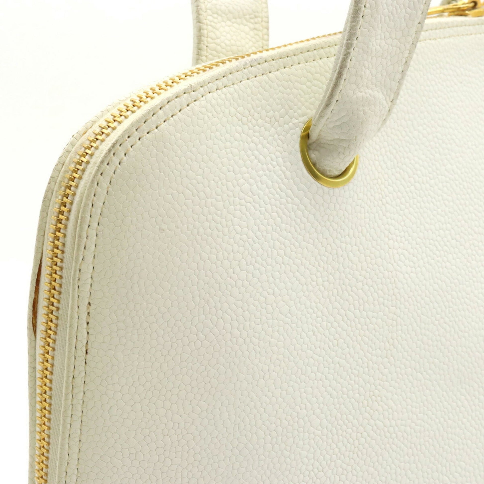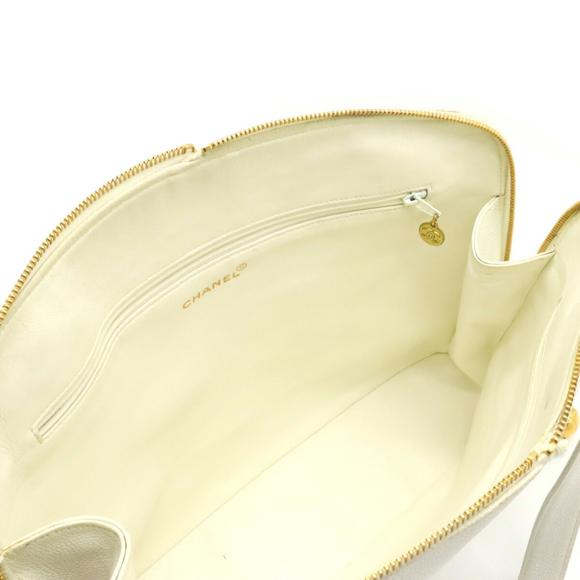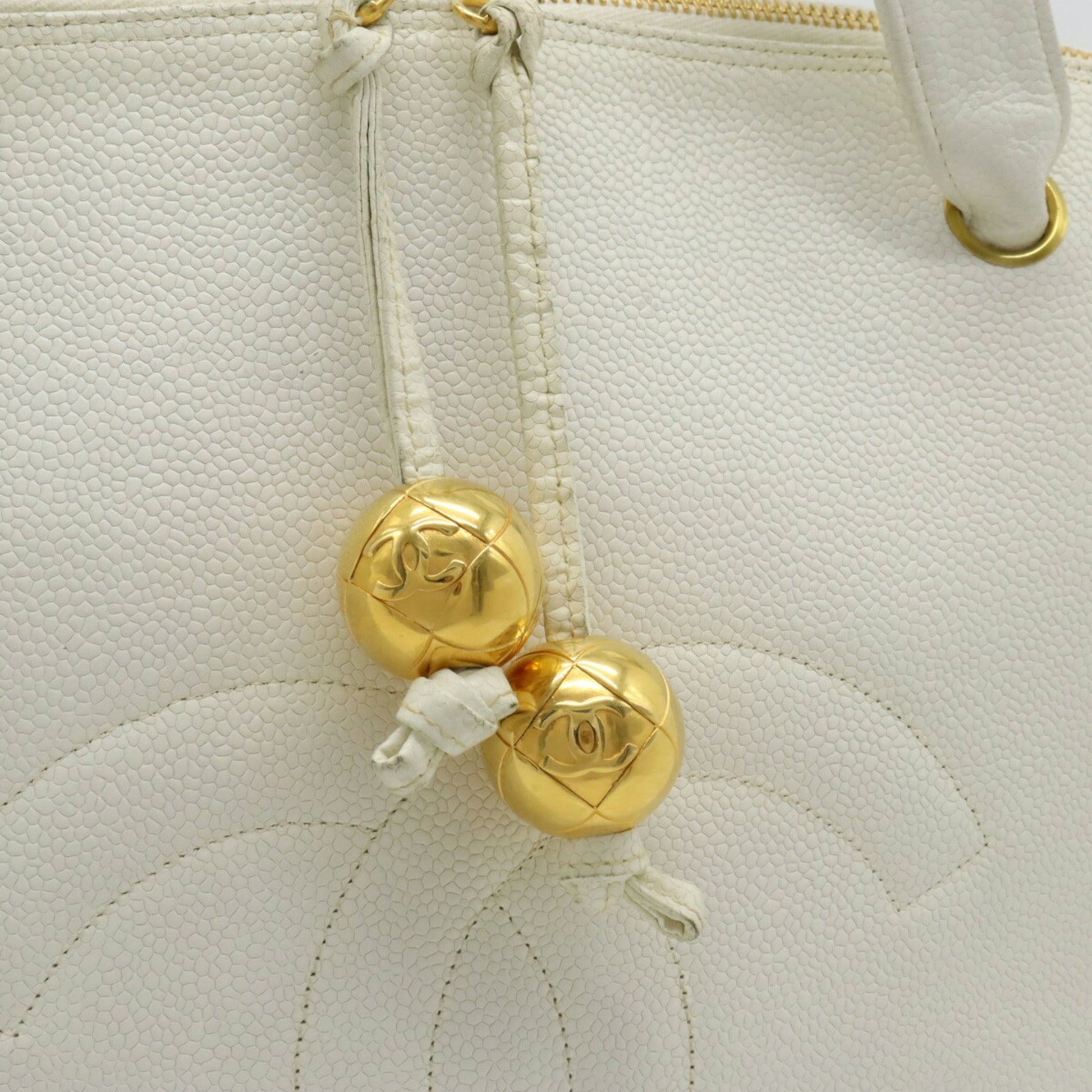 Chanel Coco Ball Mark Tote Bag Shoulder Caviar Skin Leather White