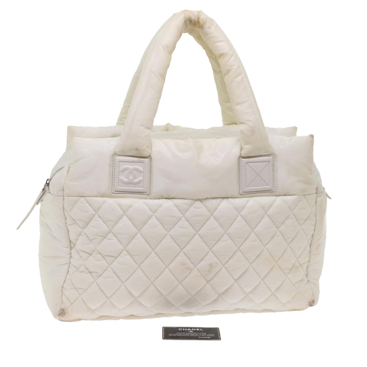 Chanel Coco Cocoon Hand Bag Patent Leather White CC bs6942