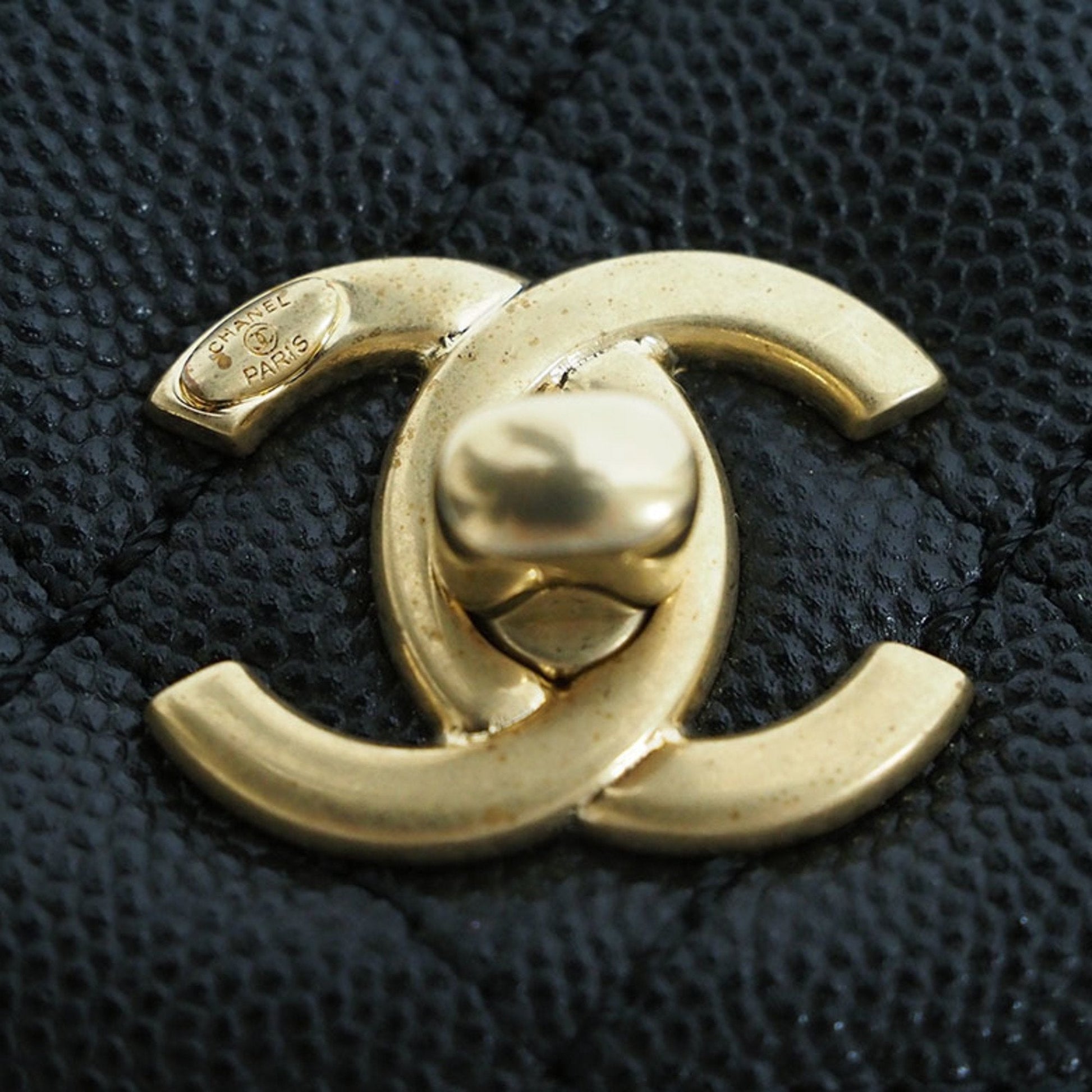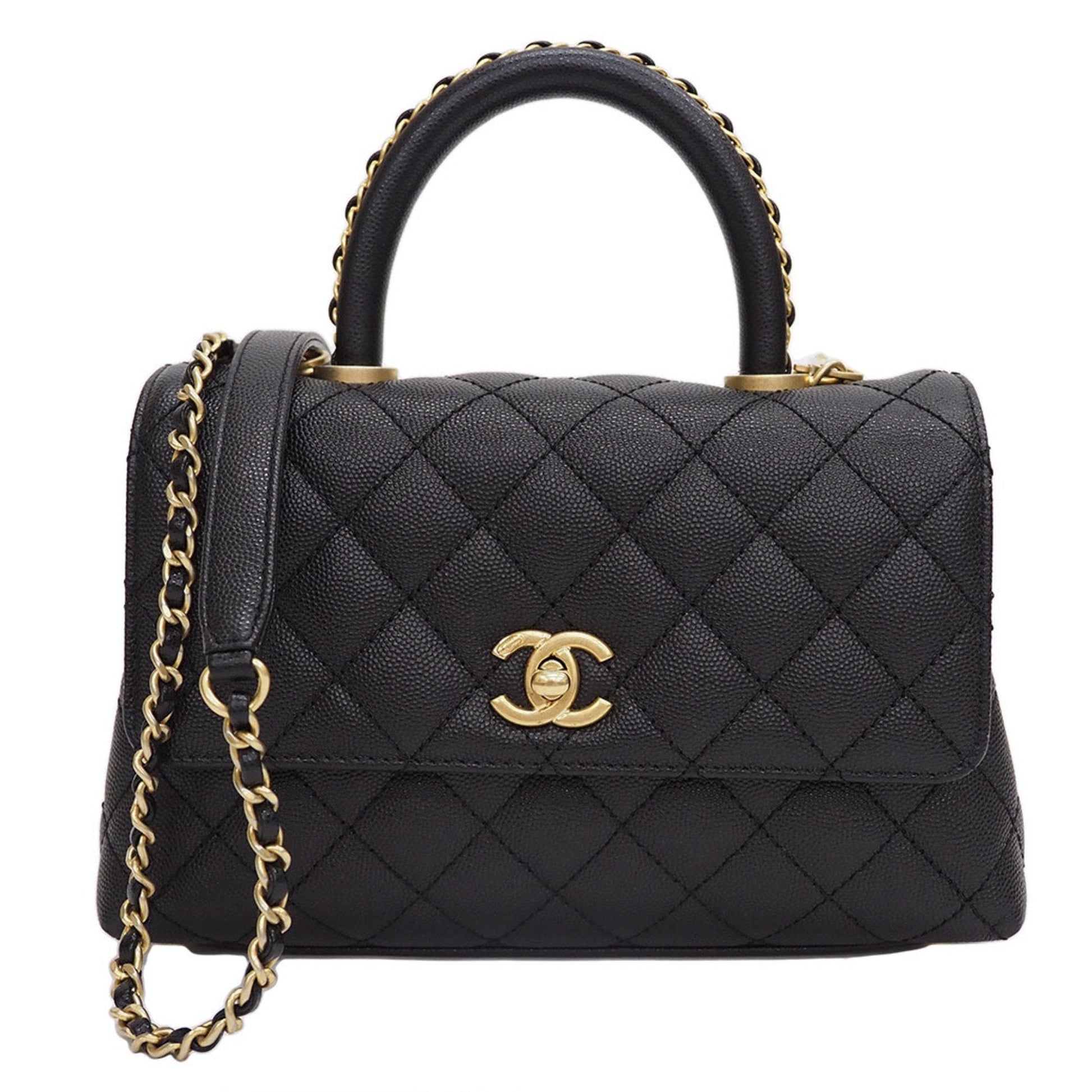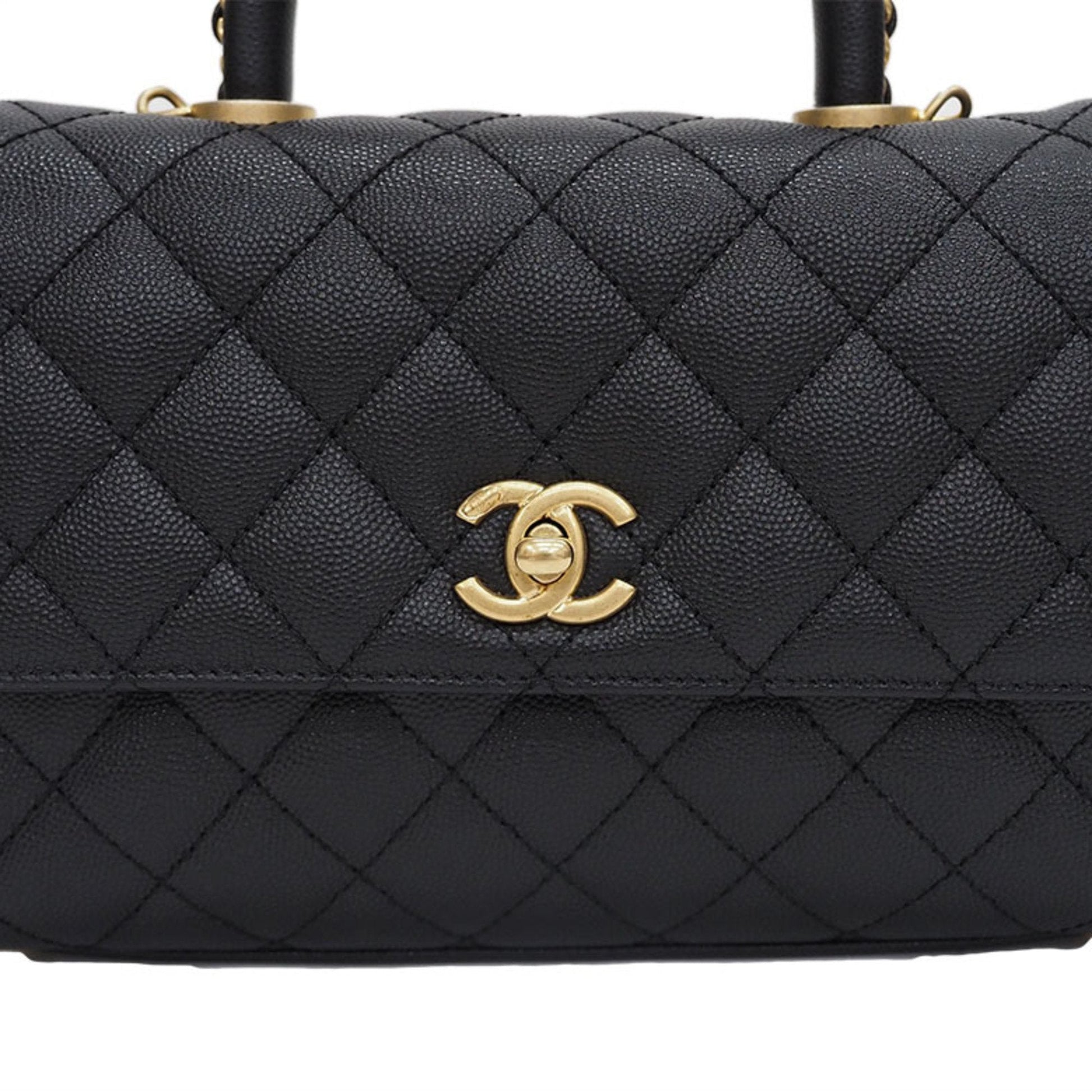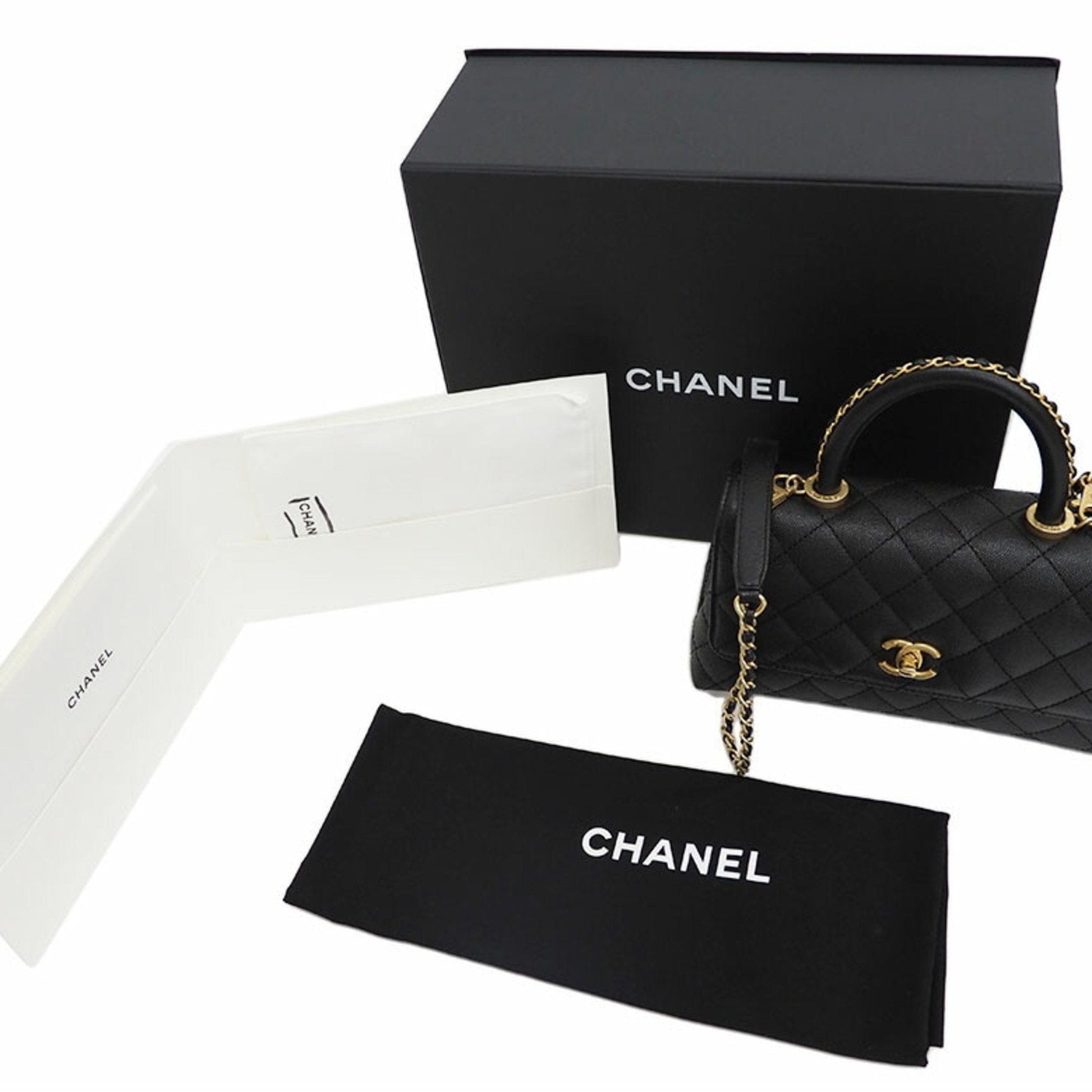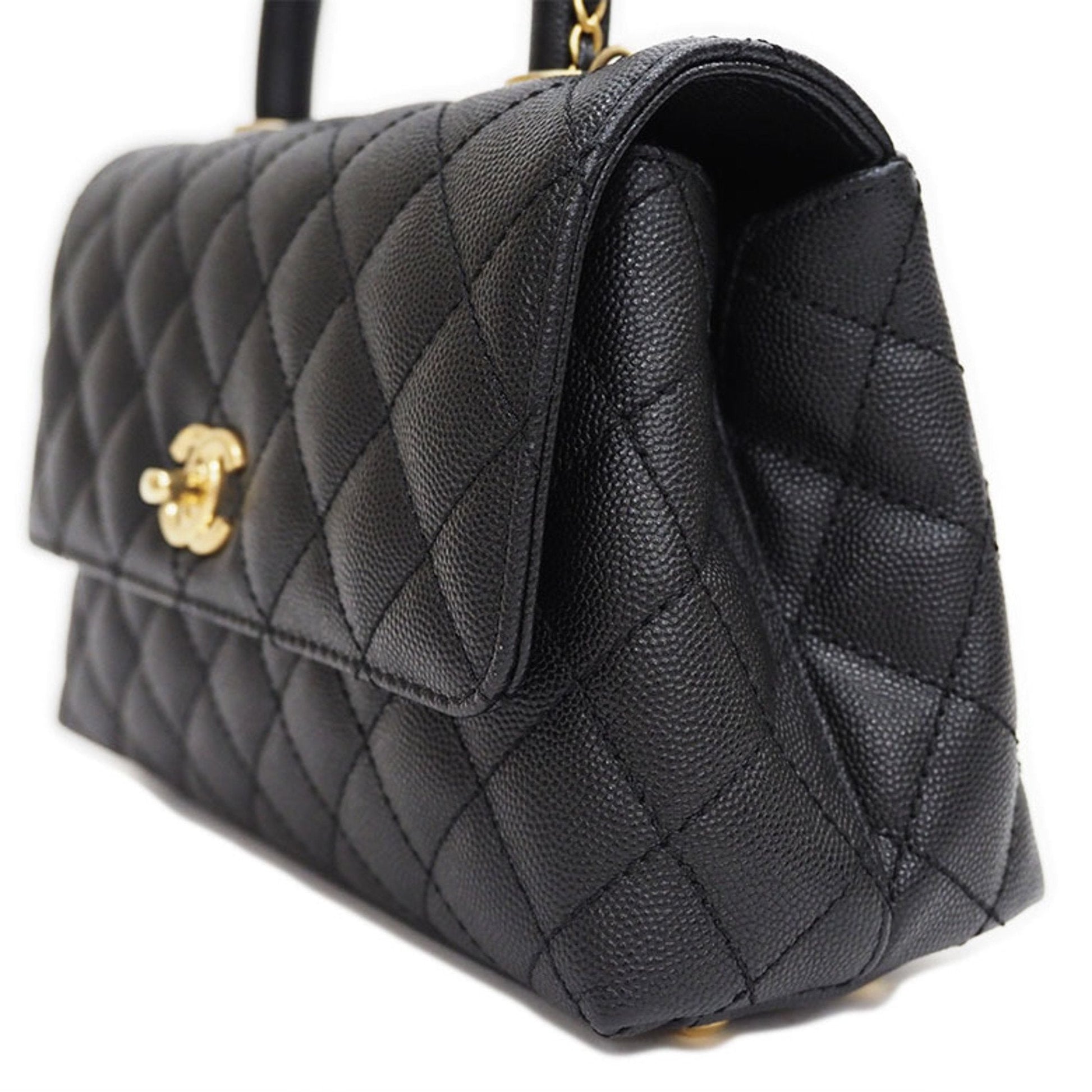 Chanel Coco Handle HandBag Black A92990 Caviar Skin Women's