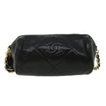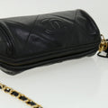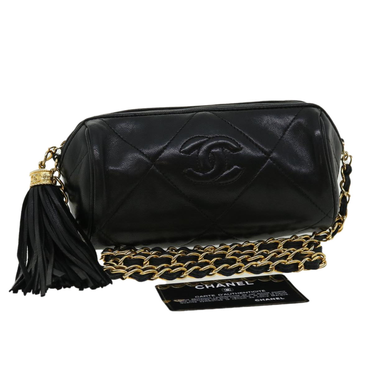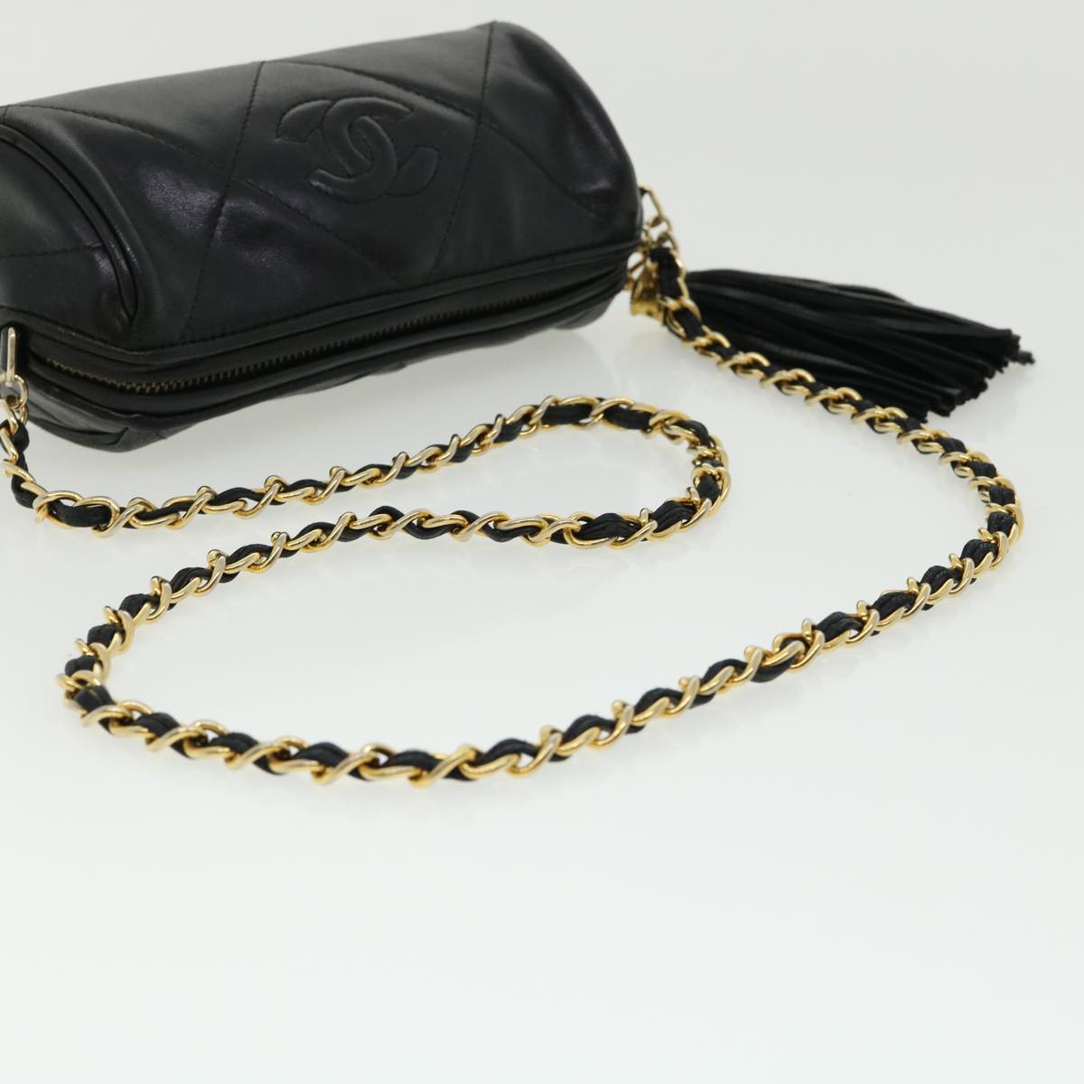 Chanel COCO Mark FringeChain Shoulder Bag Lamb Skin Black CC Auth knn088