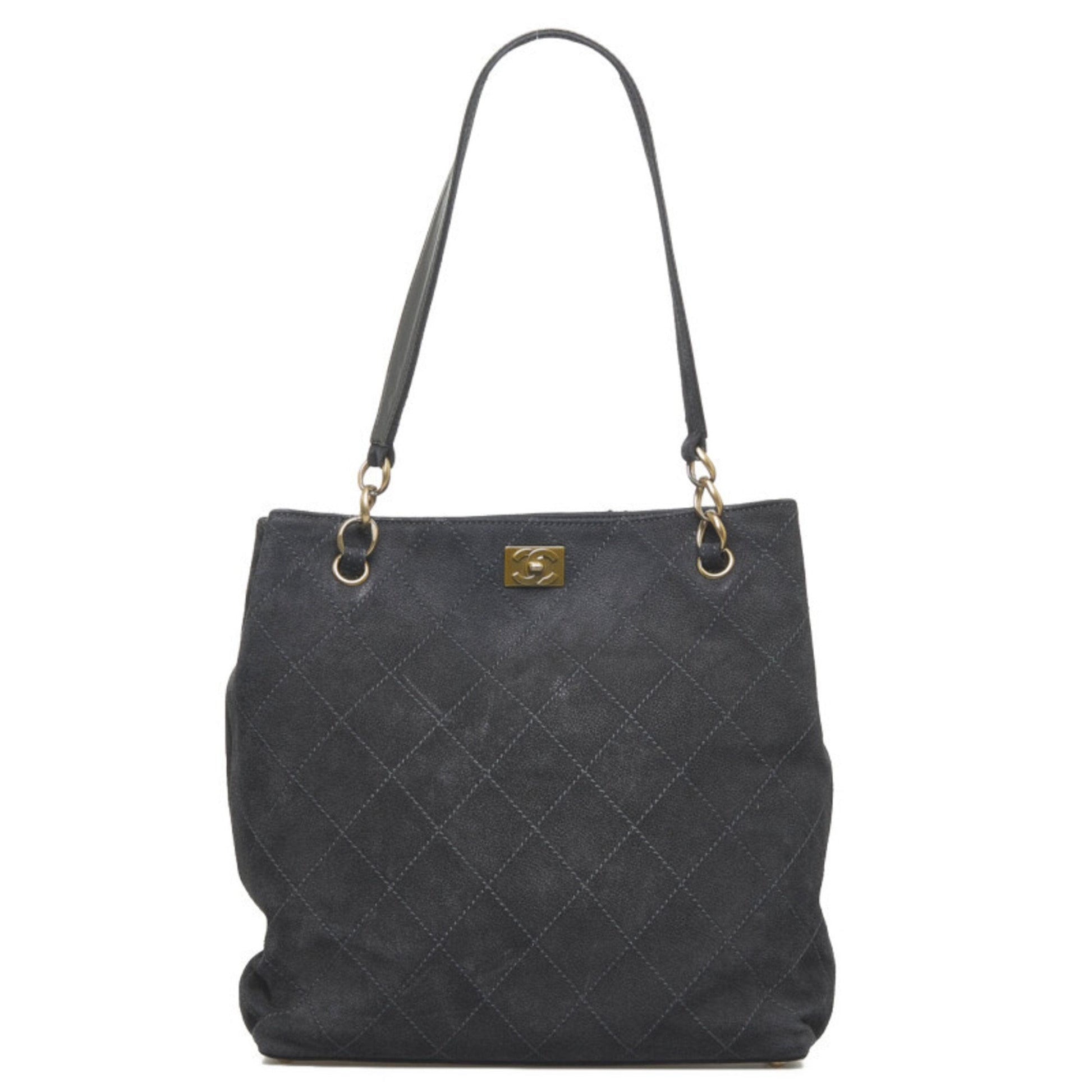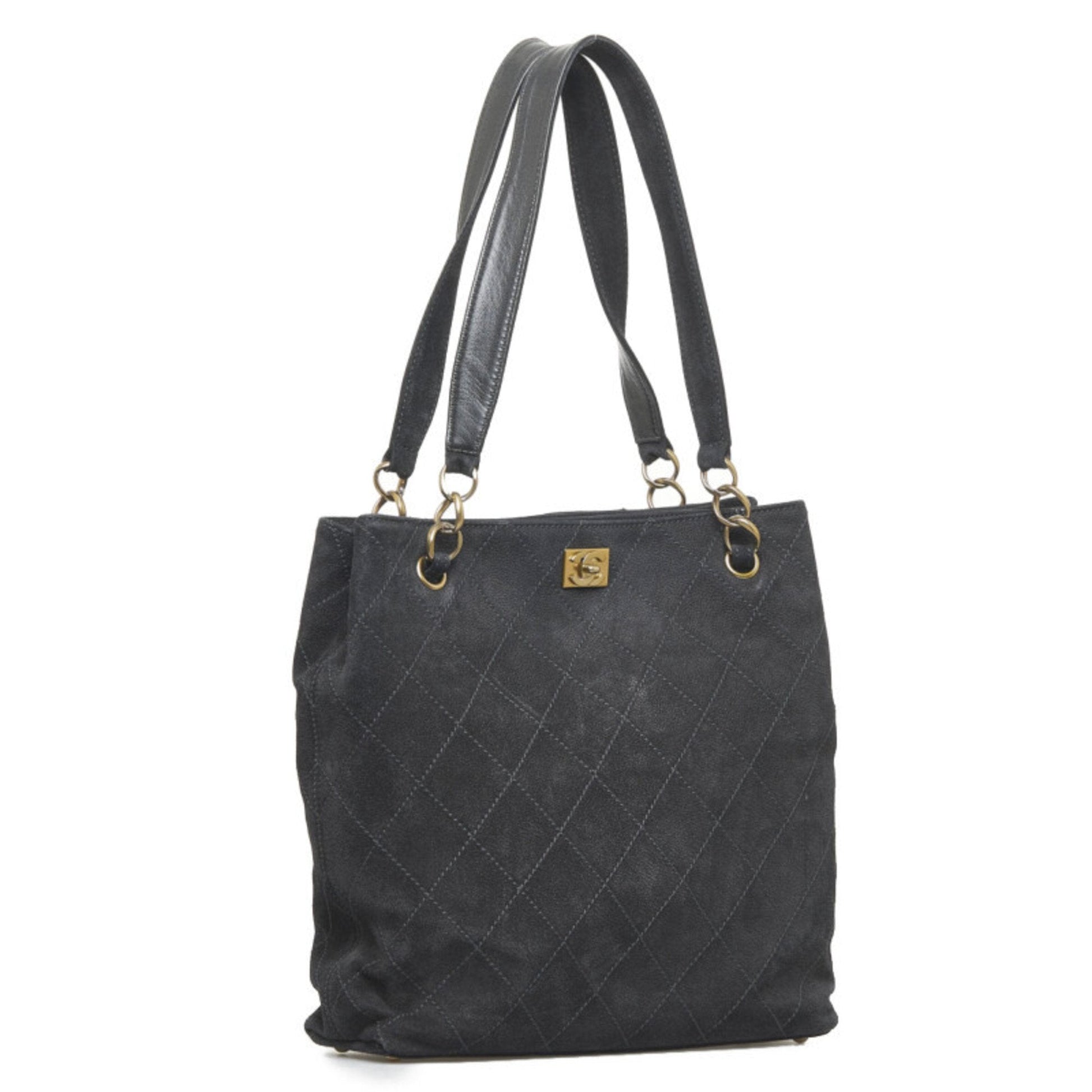 Chanel coco mark handBag Tote Bag black leather ladies