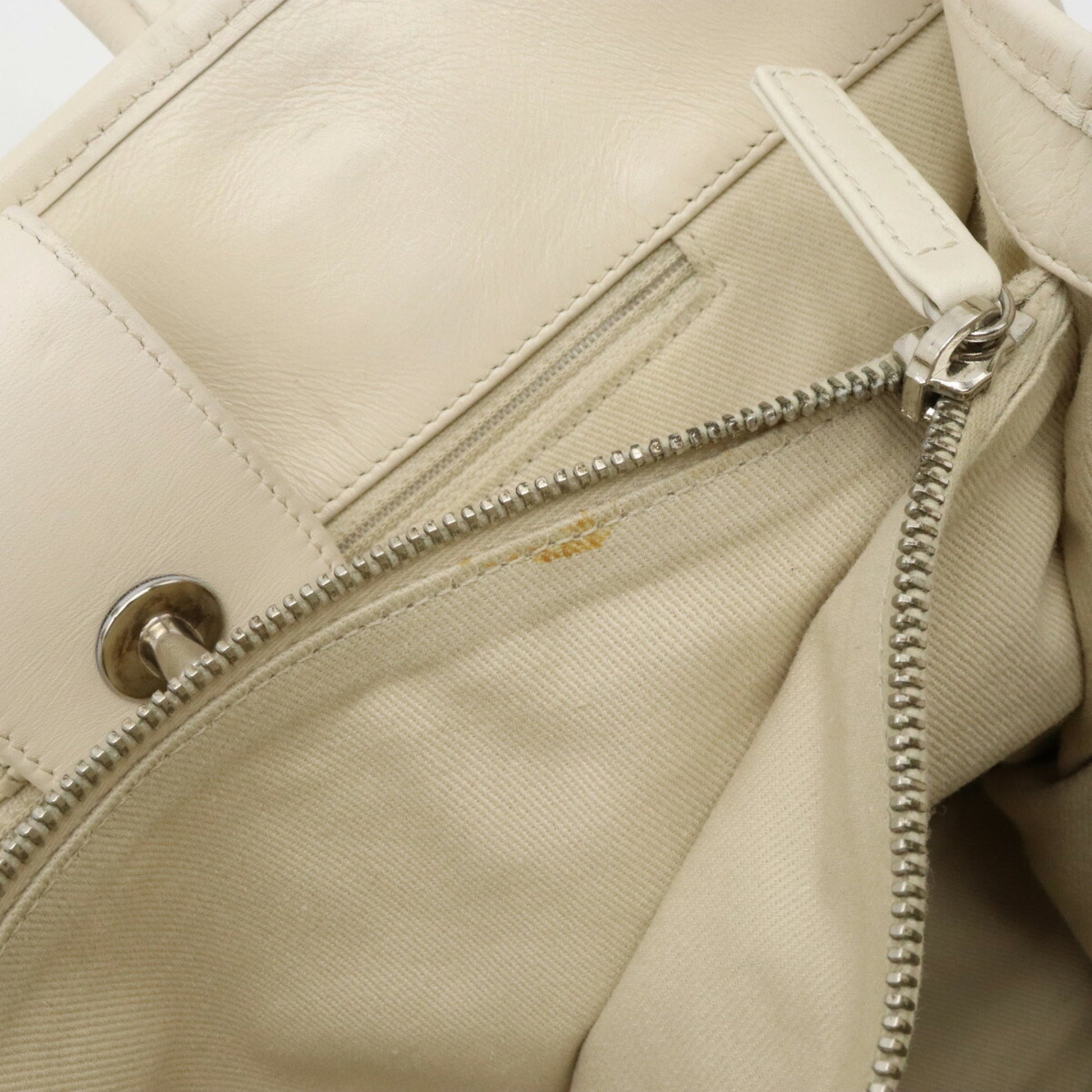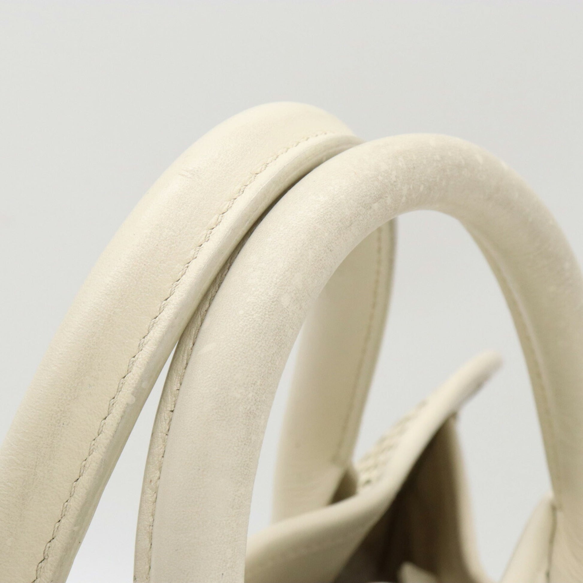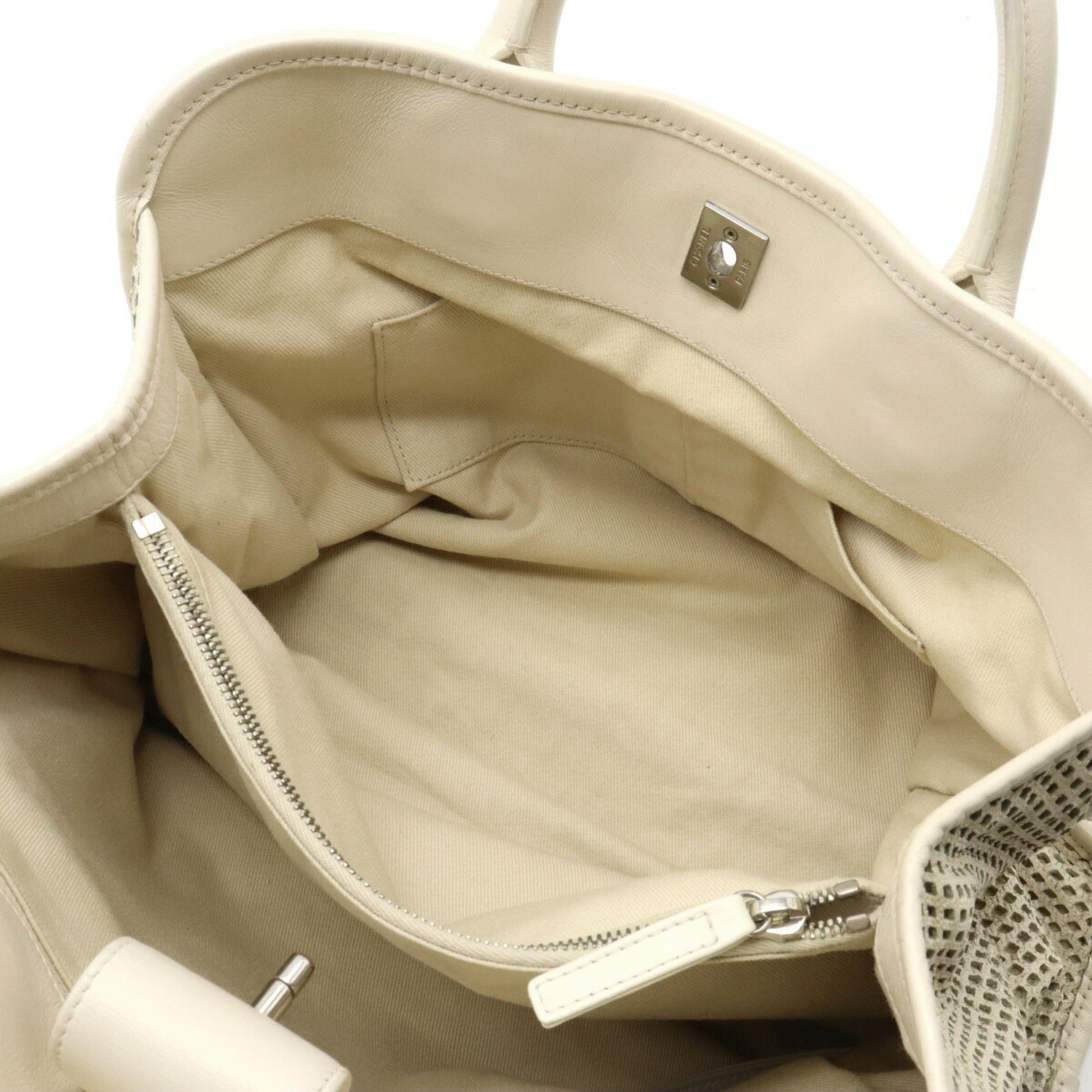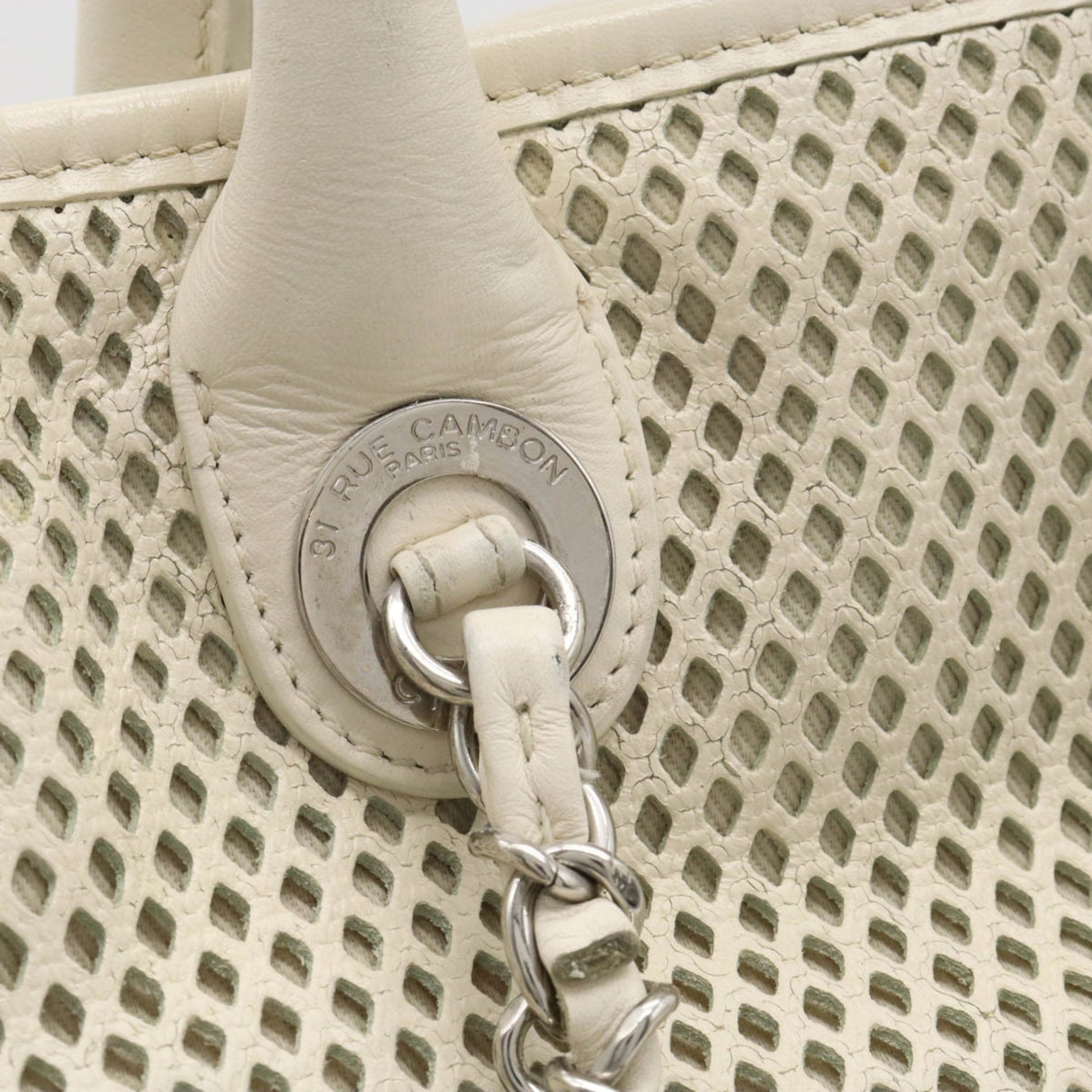 Chanel Coco Mark Perforated Mesh HandBag Tote Bag Shoulder Chain Leather Ivory