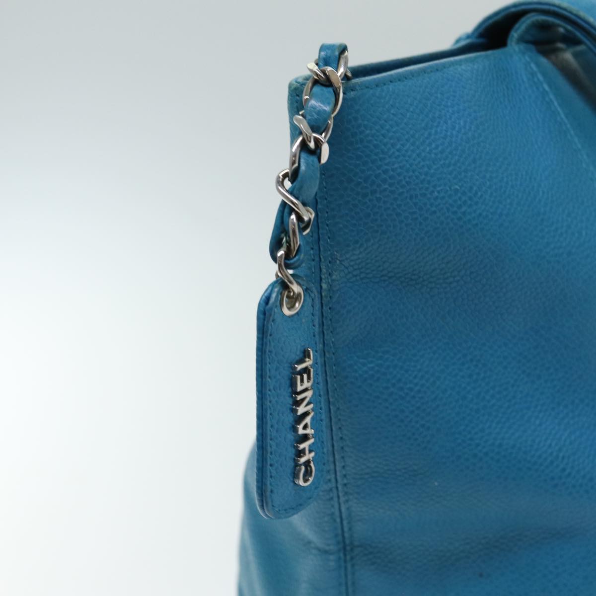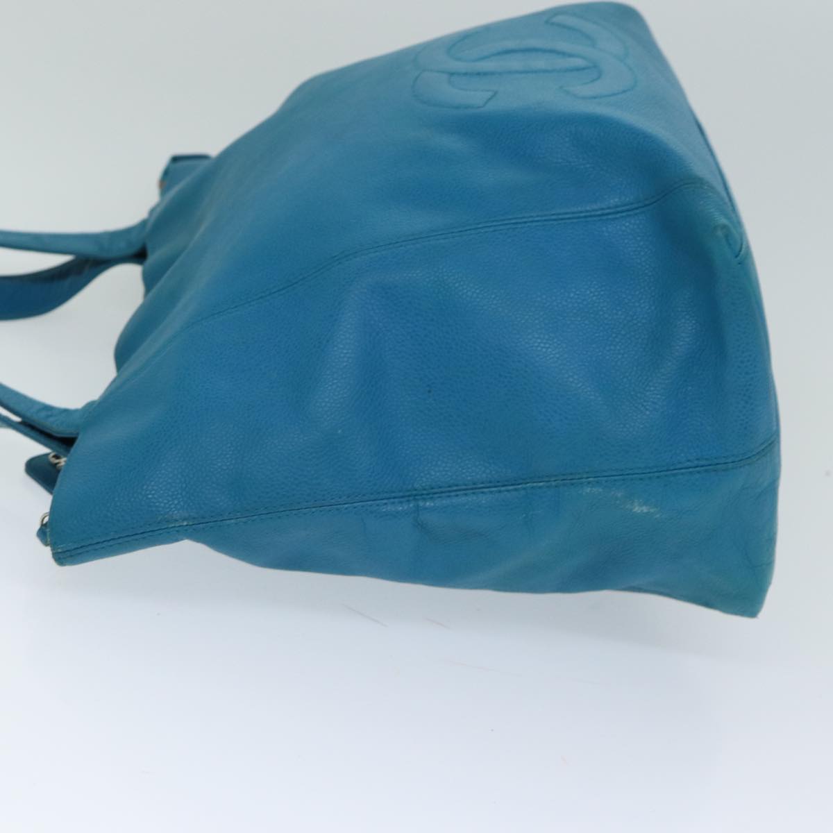 CHANEL COCO Mark Tote Bag Caviar Skin Blue CC Auth yk12847