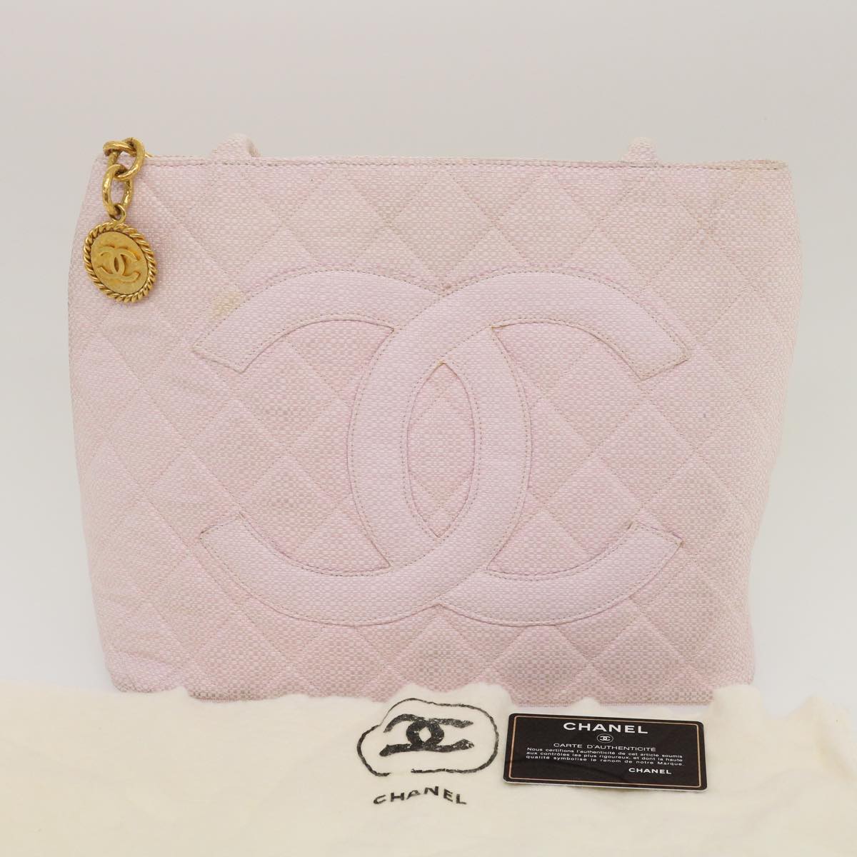 Chanel COCO Mark Tote Bag cotton Pink CC Auth 29713A