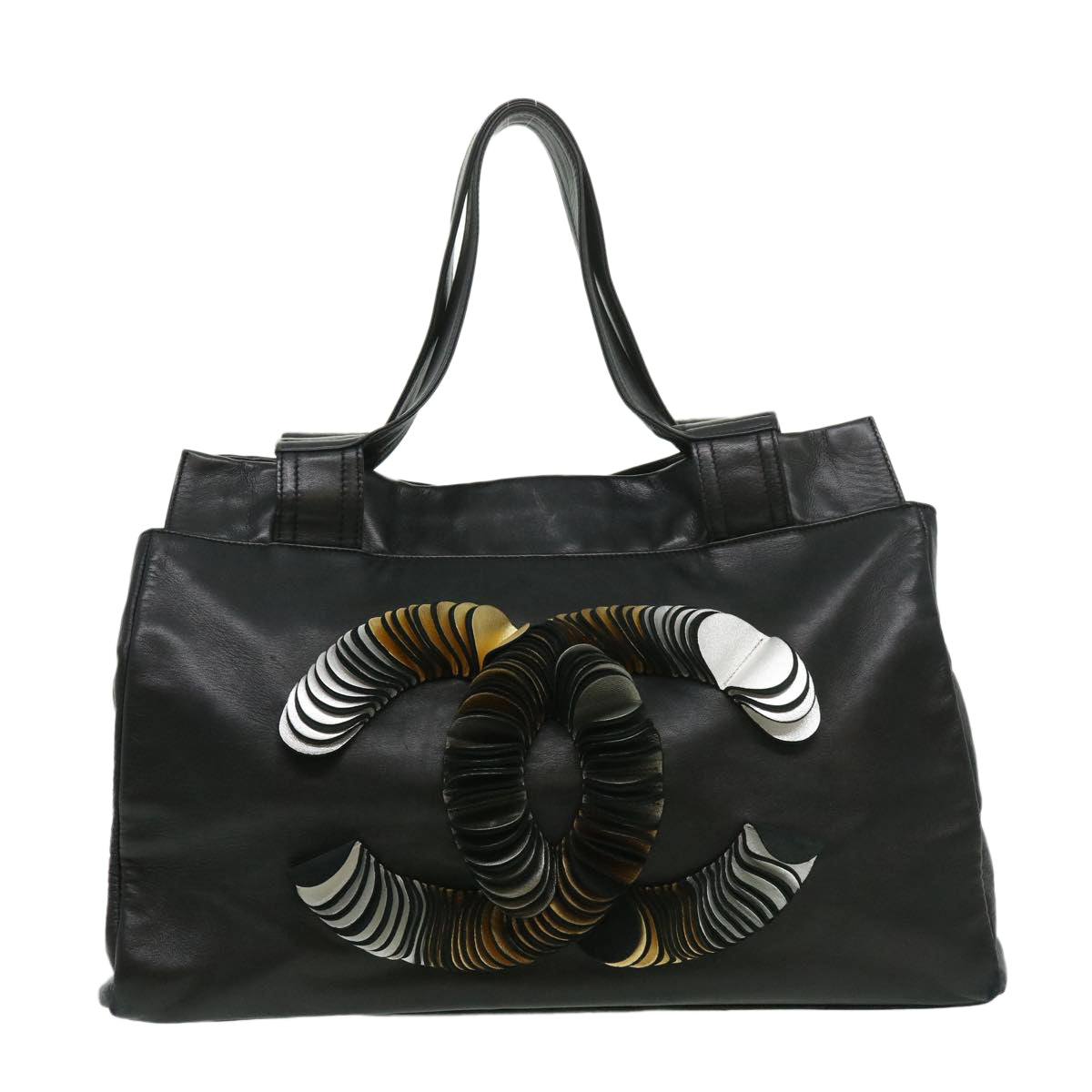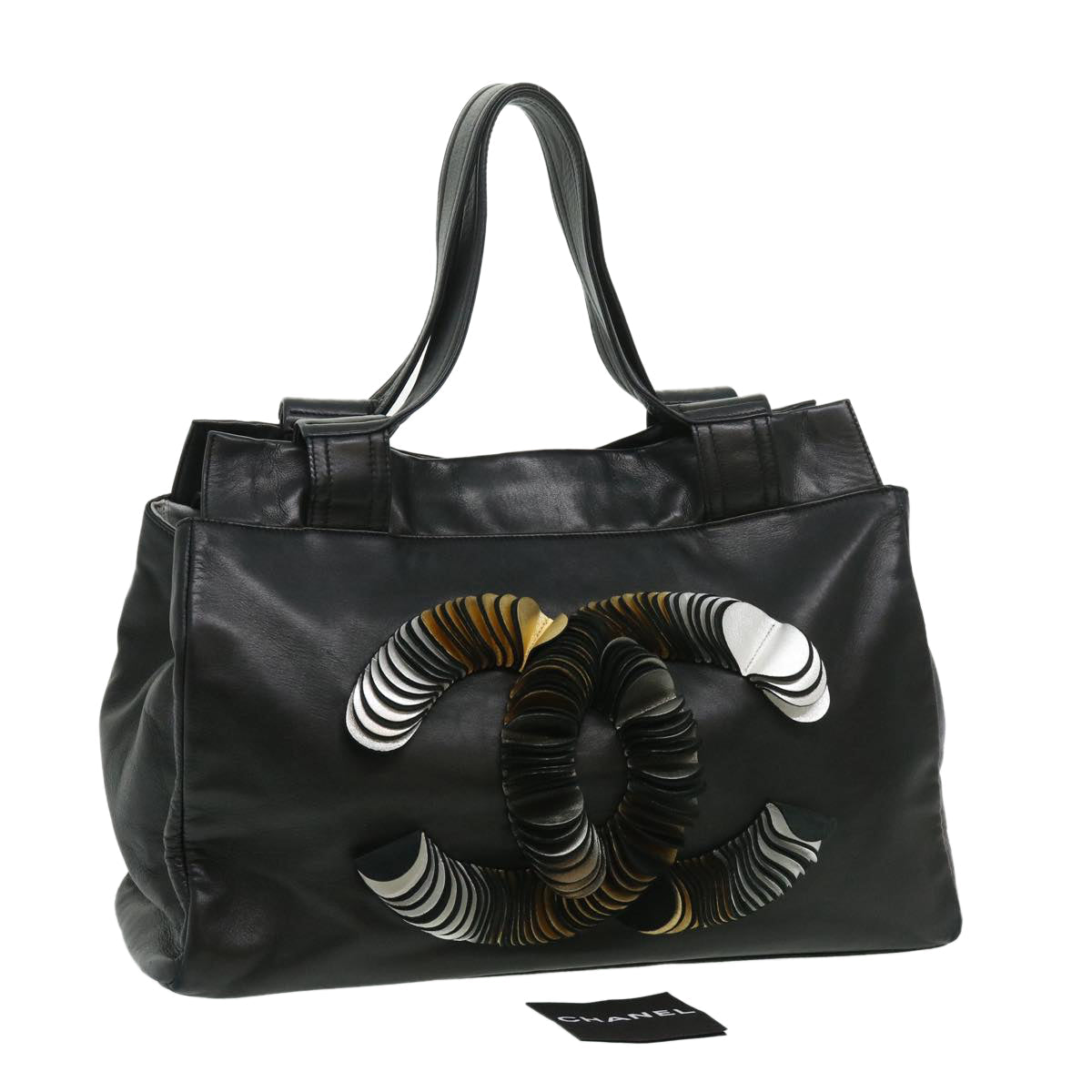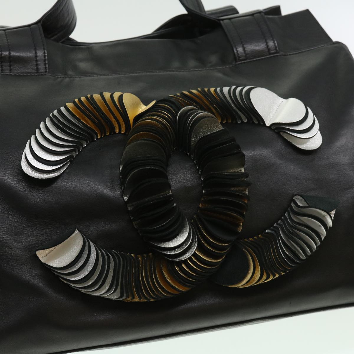 Chanel COCO Mark Tote Bag Lamb Skin Black CC Auth bs1448A