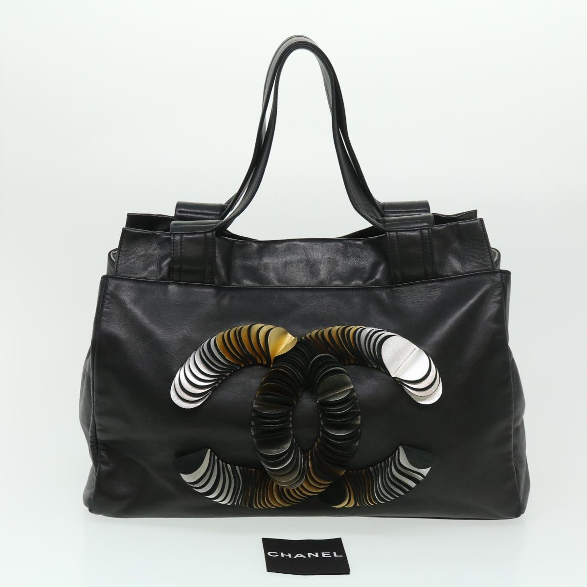 Chanel COCO Mark Tote Bag Lamb Skin Black CC Auth bs1448A