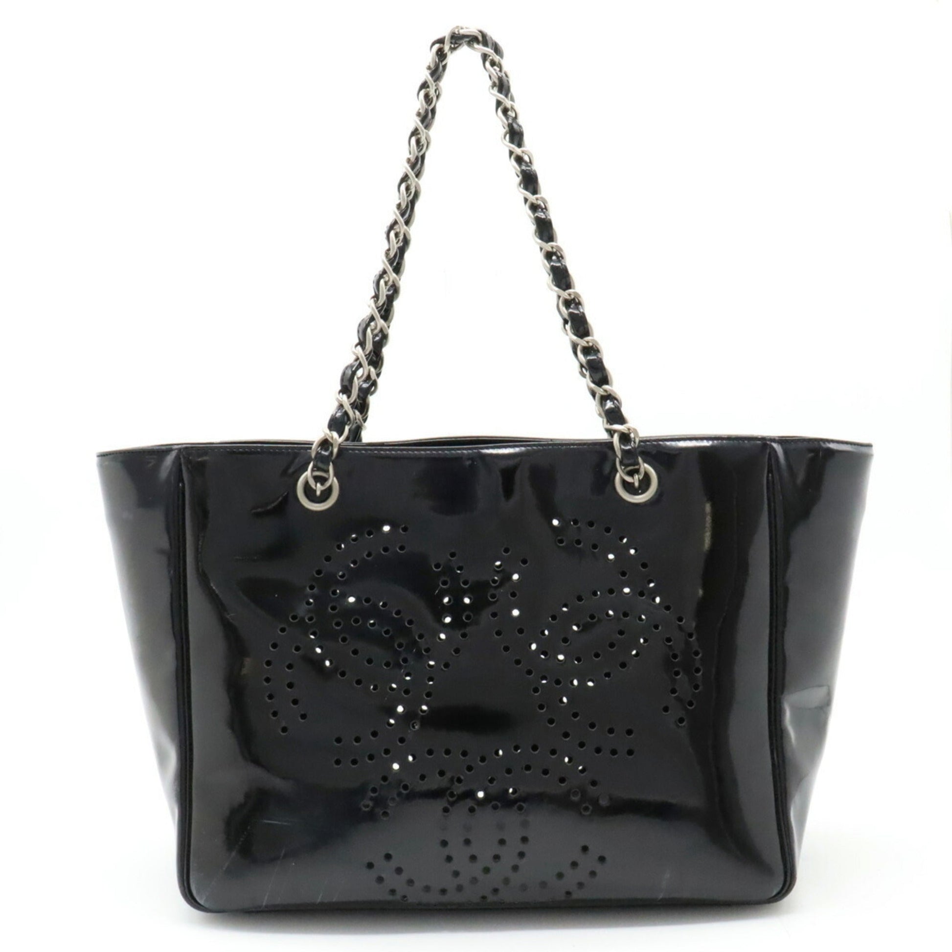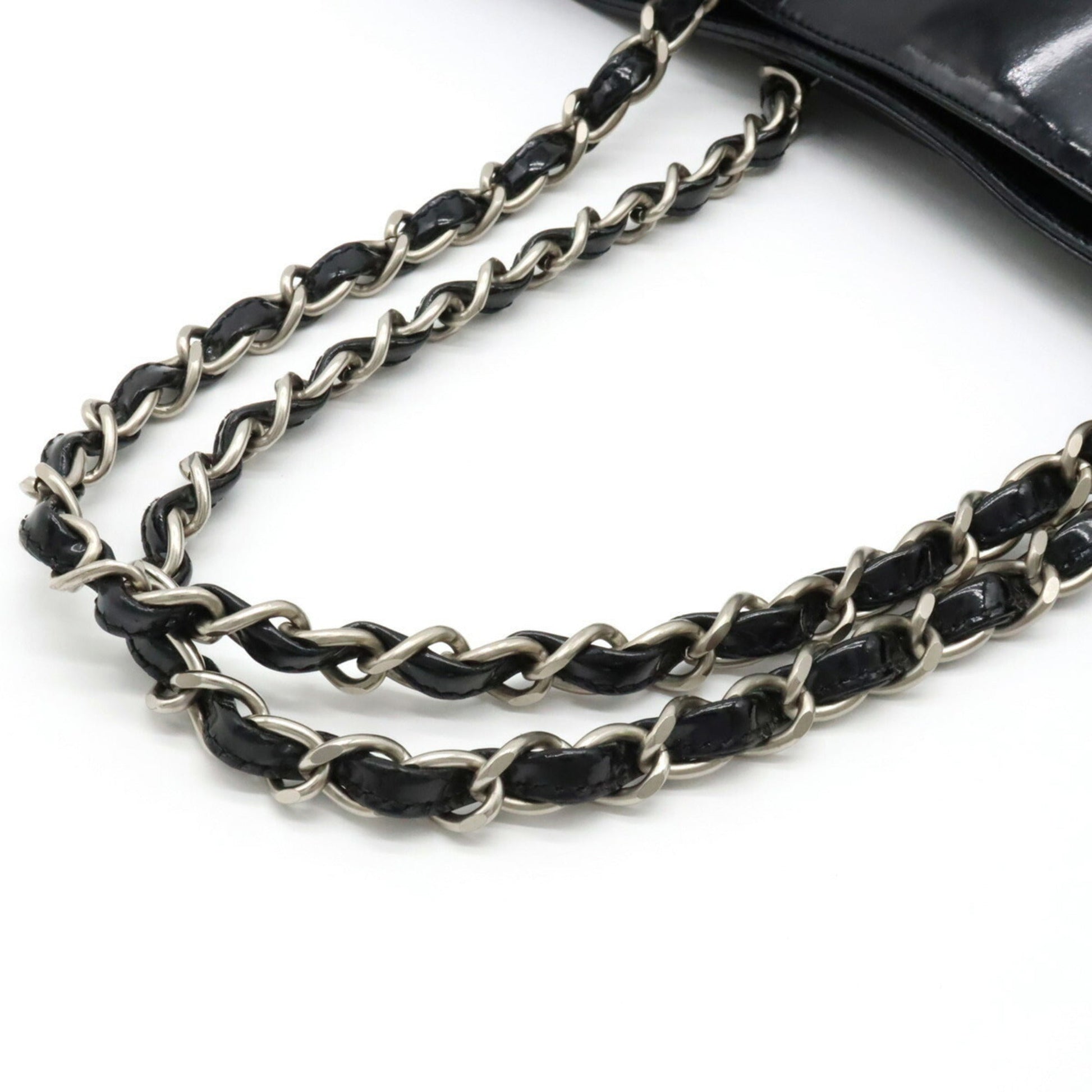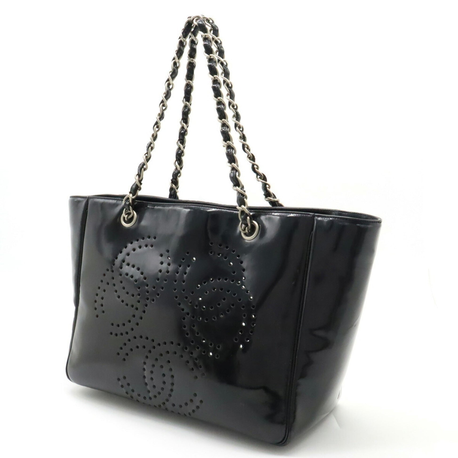 Chanel Coco Mark Triple Punching Chain Shoulder Bag Tote Enamel Black