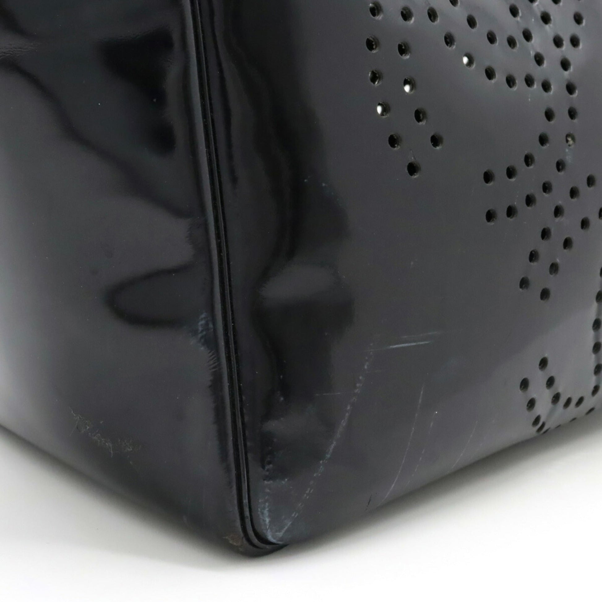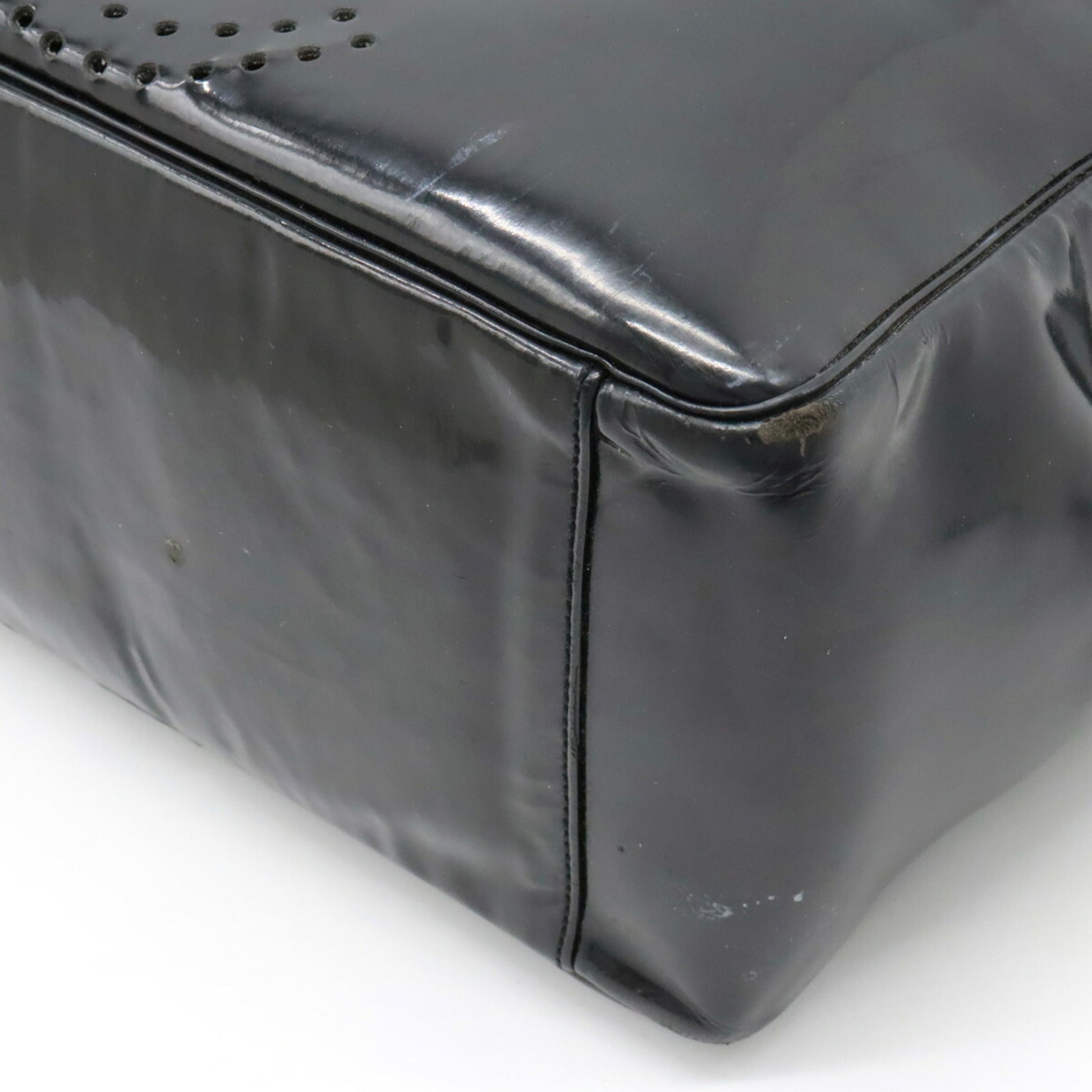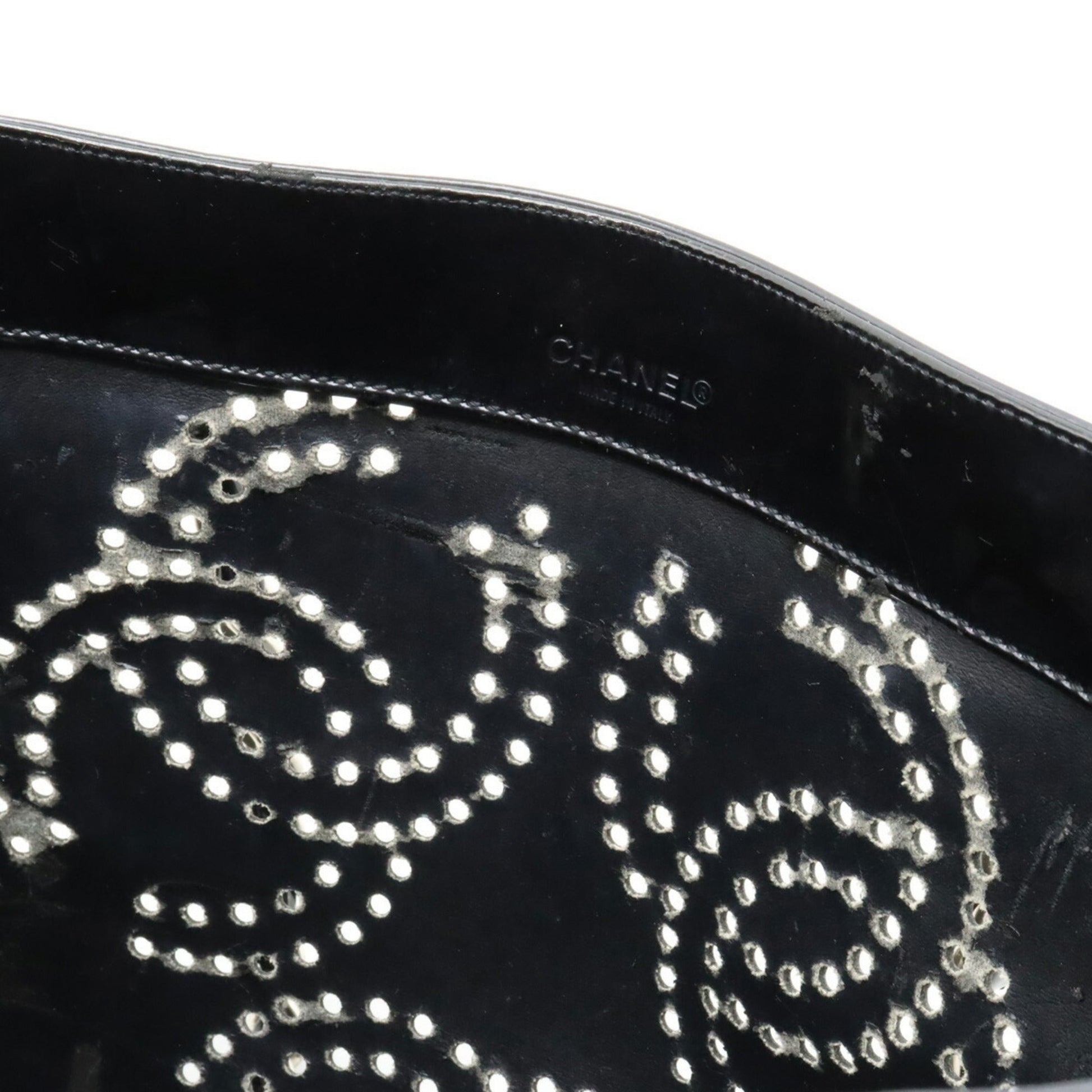 Chanel Coco Mark Triple Punching Chain Shoulder Bag Tote Enamel Black