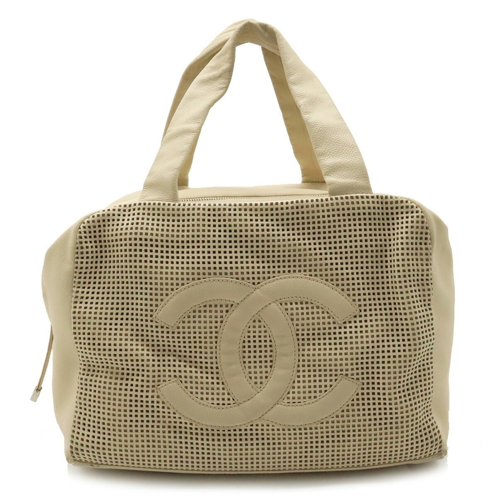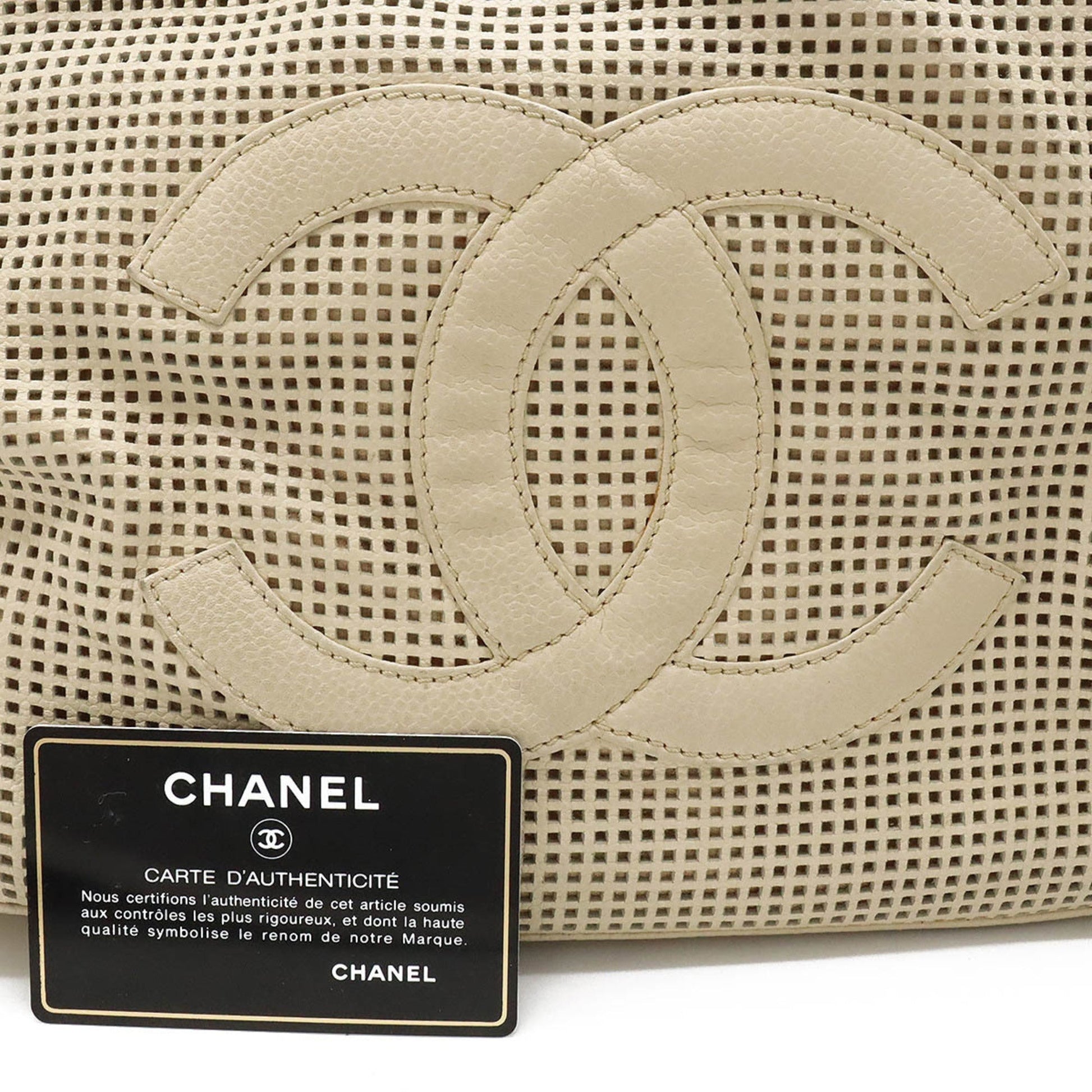 Chanel Cocomark HandBag Boston Punching Mesh Leather Beige