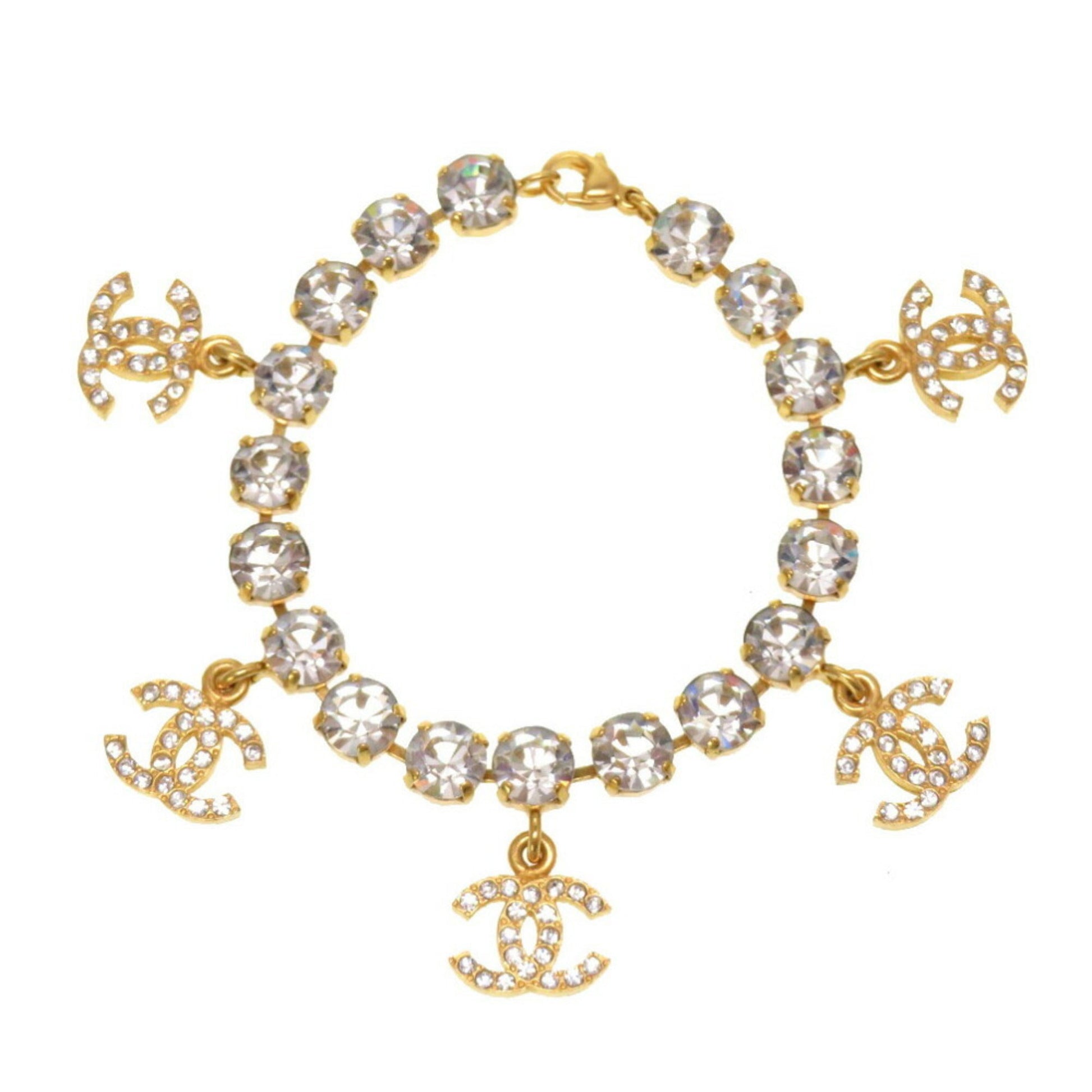 Chanel Cocomark Rhinestone 95A Gold Bracelet