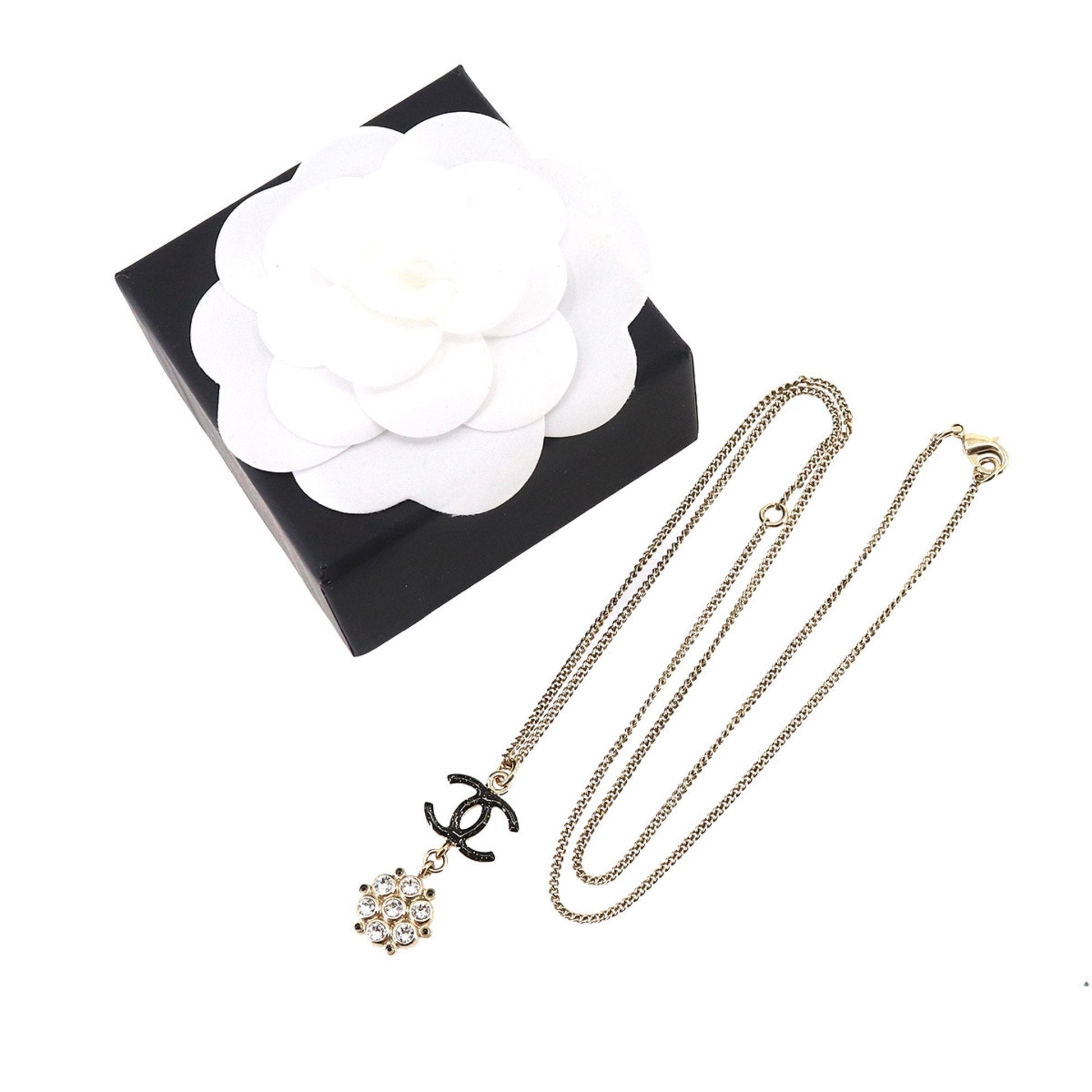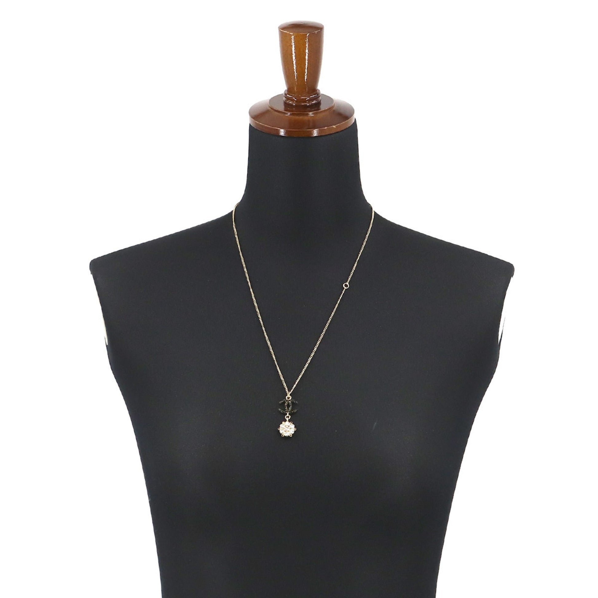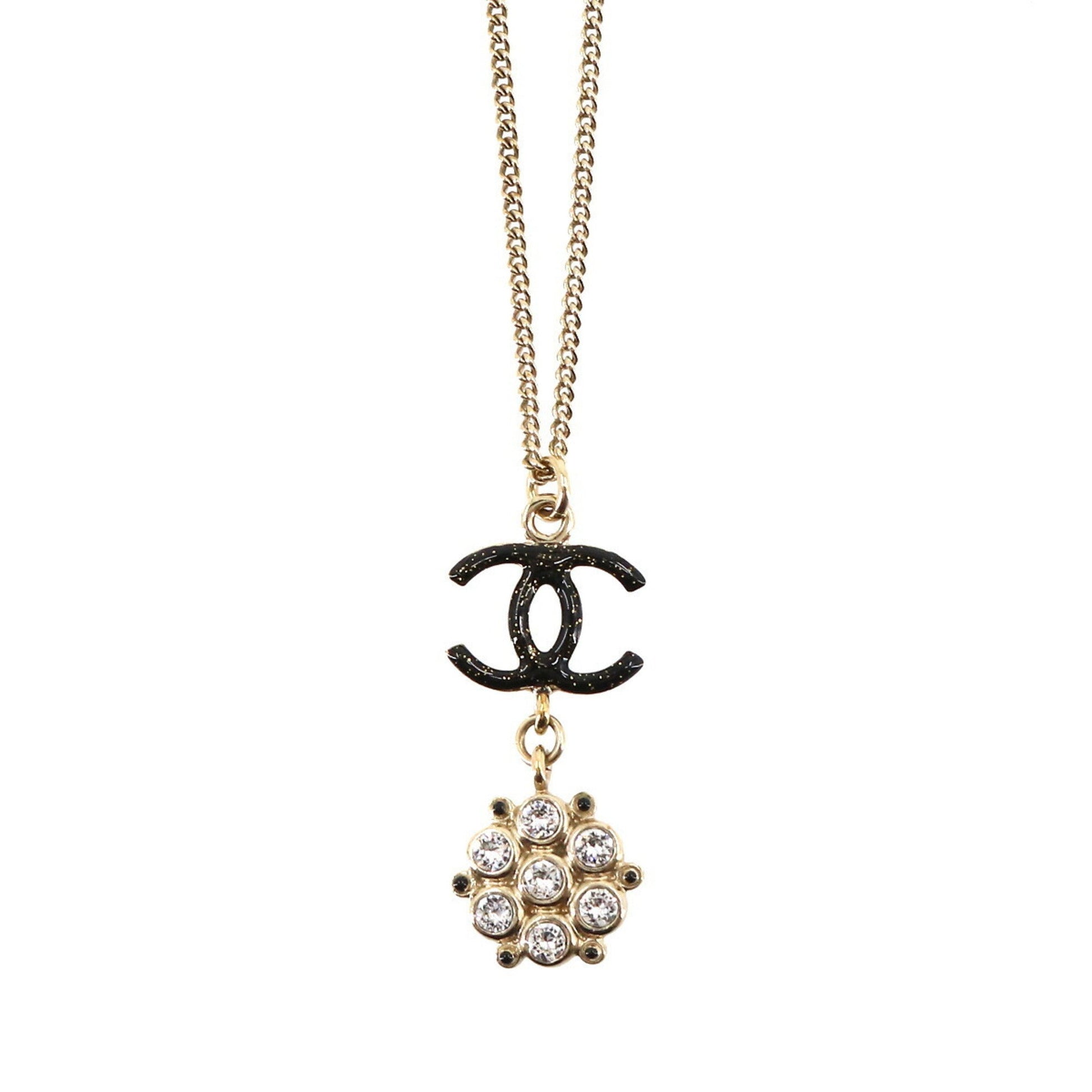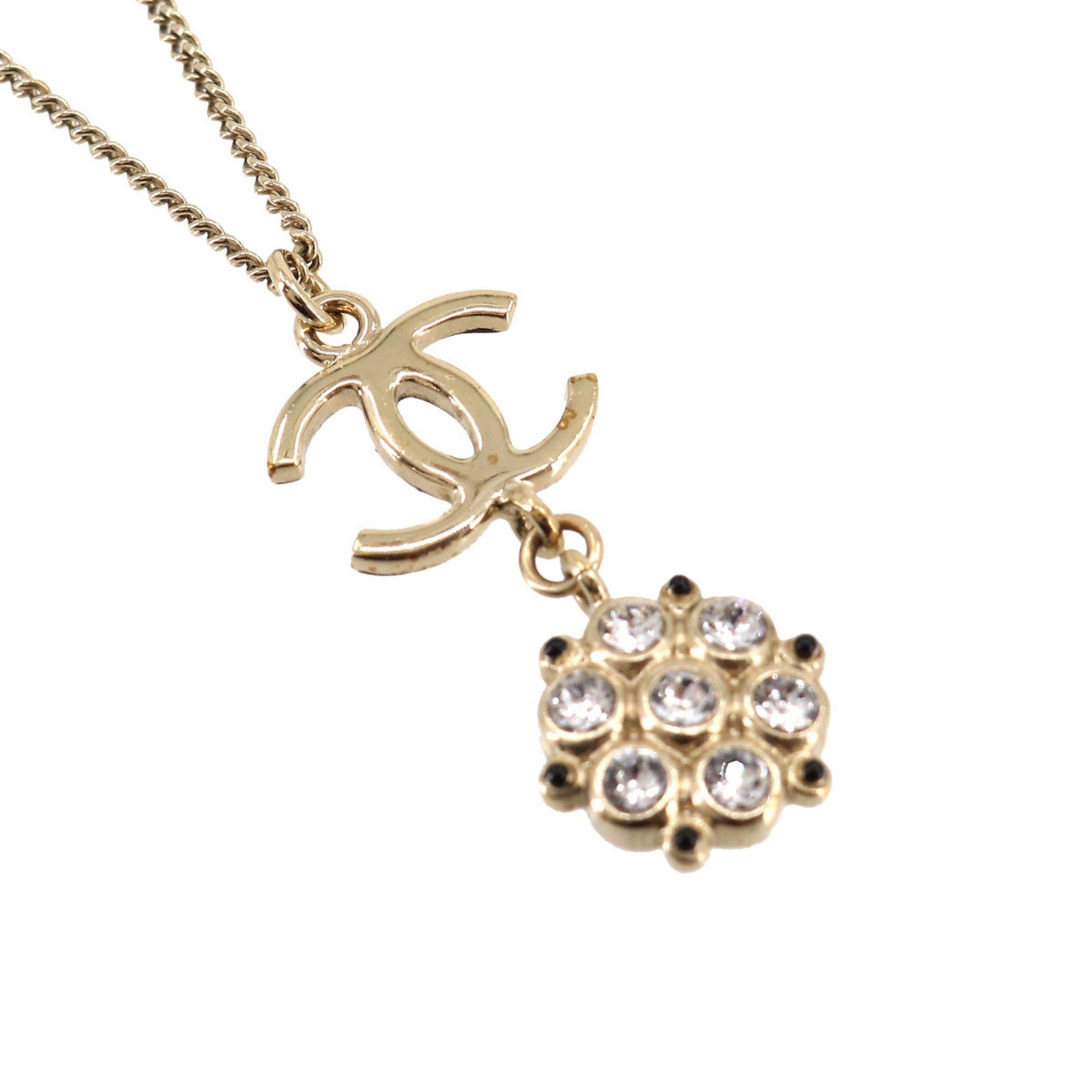 Chanel Cocomark Rhinestone Necklace Gold Black B19B Accessories