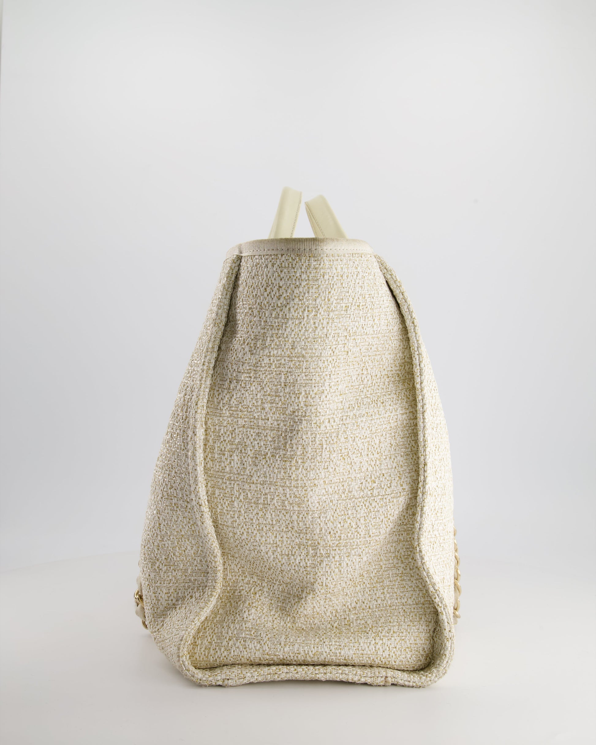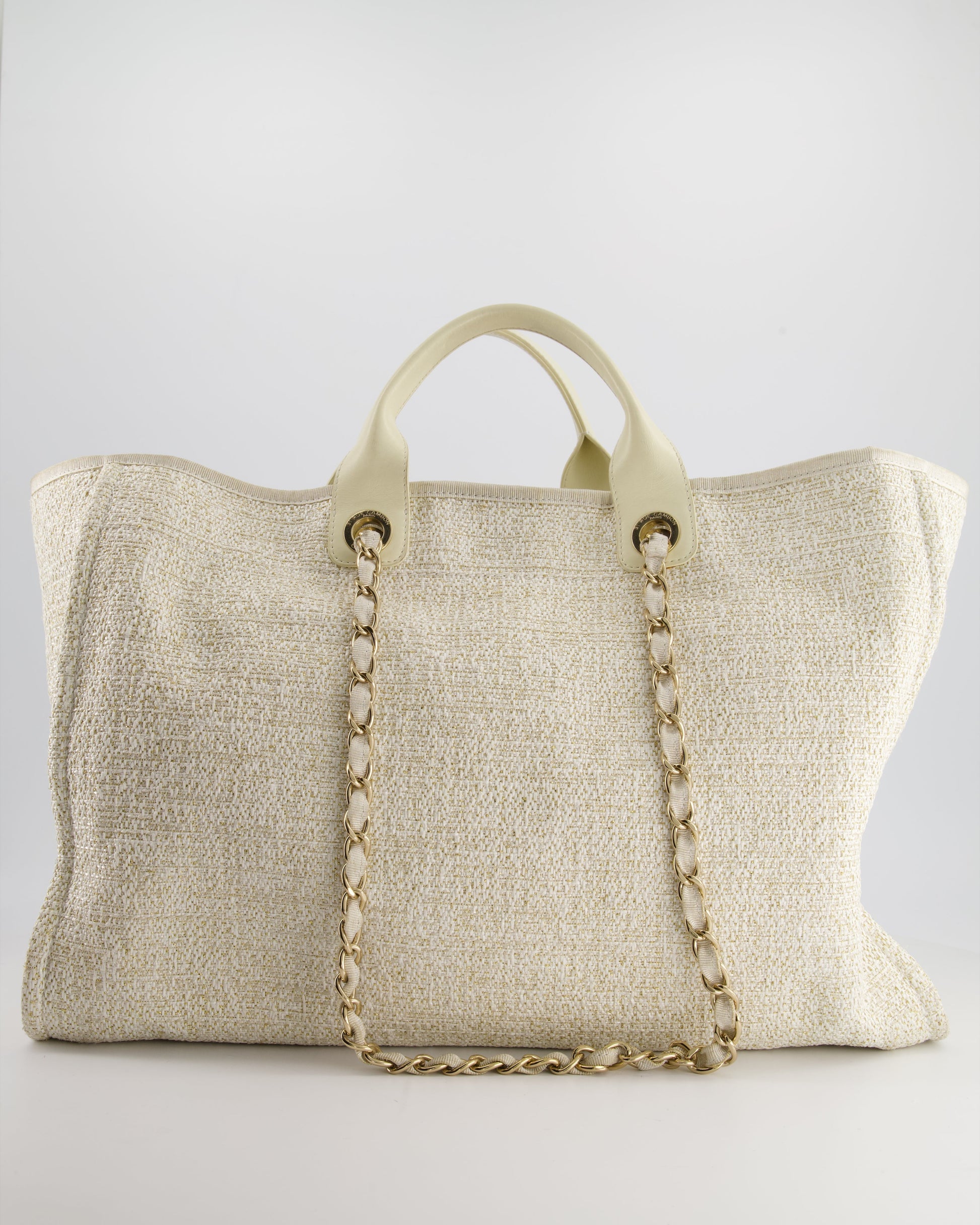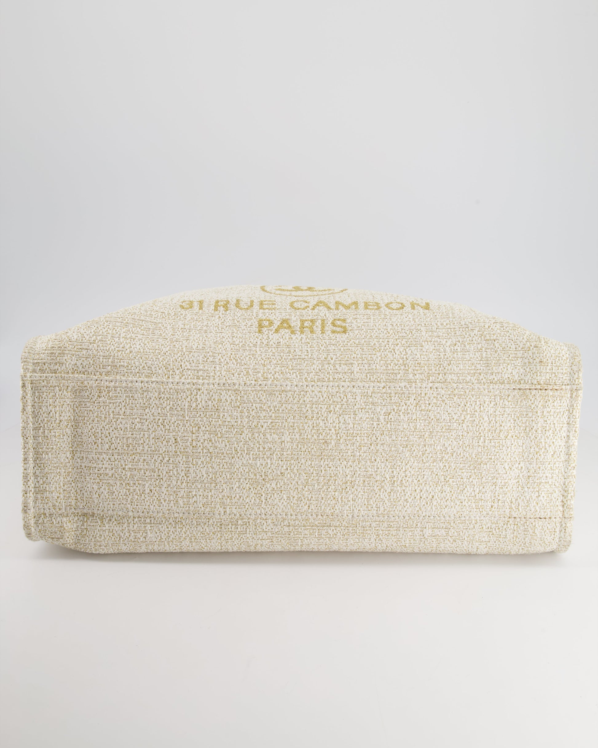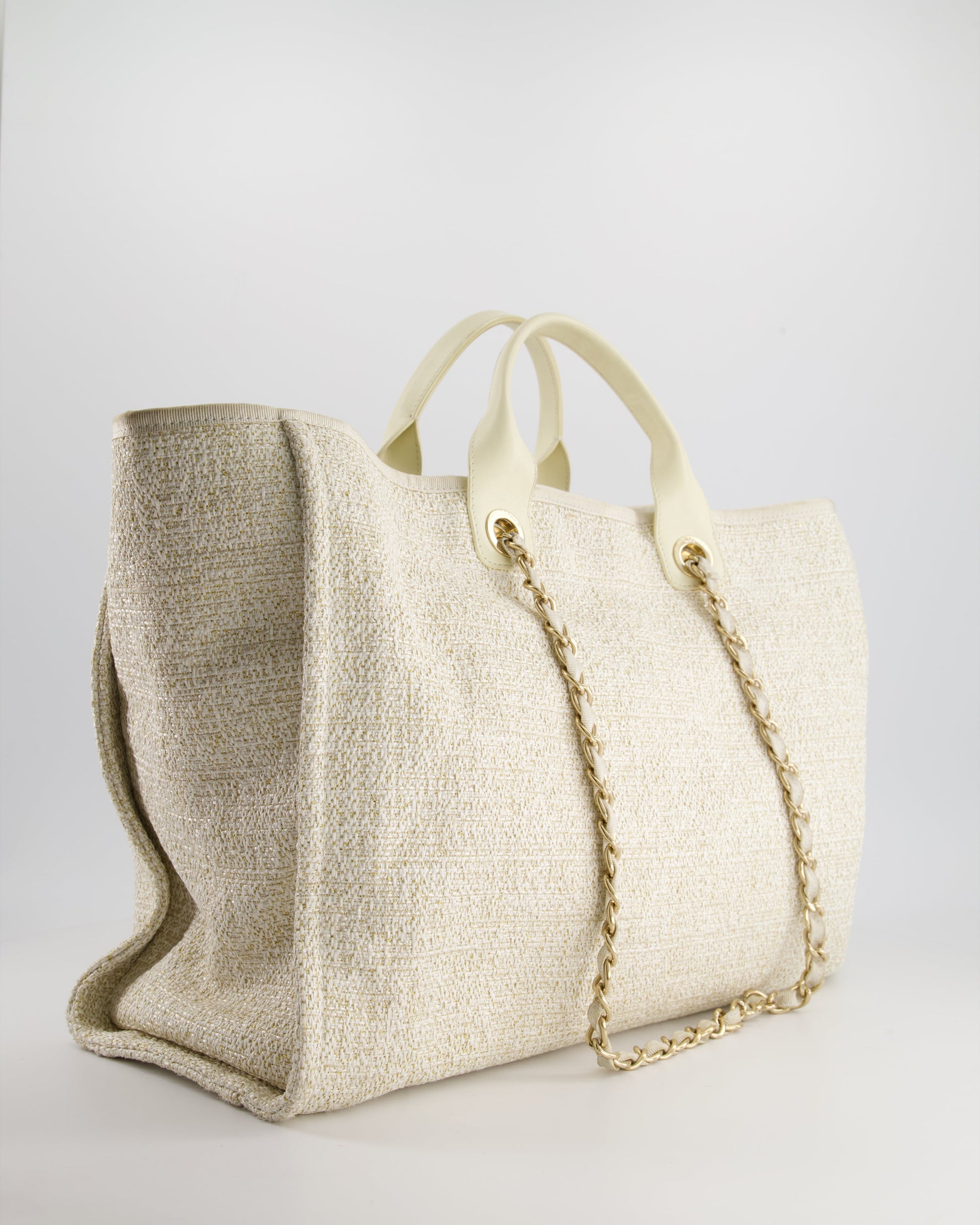 Chanel Cream Tweed Large Deauville Tote Bag with Gold Fabric Detail & Champagne Gold Hardware