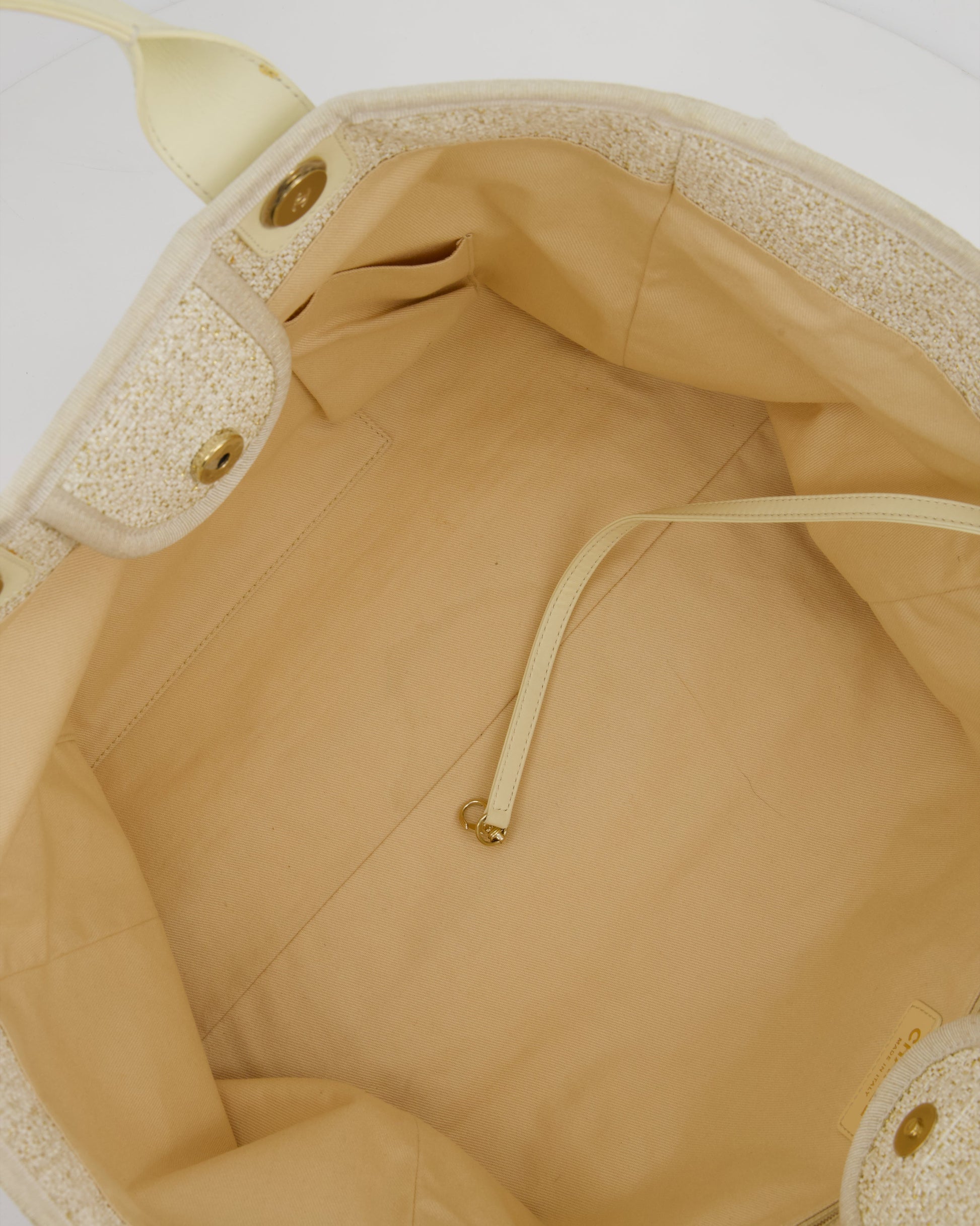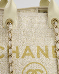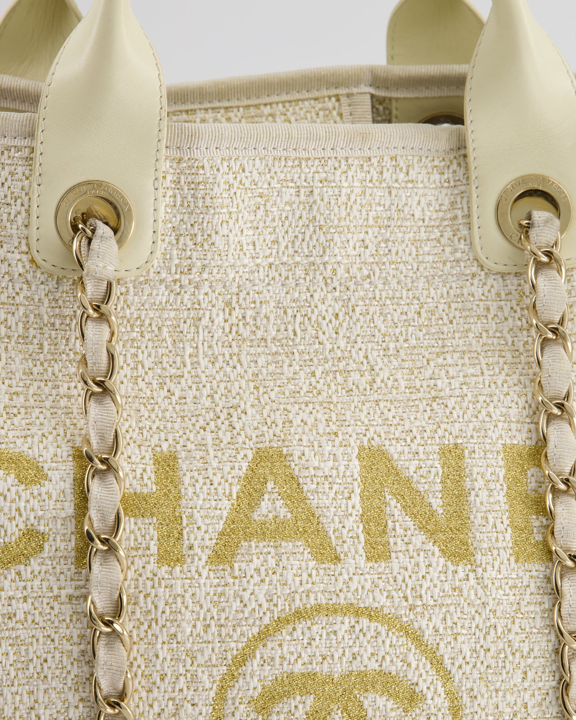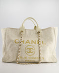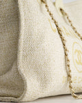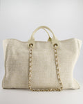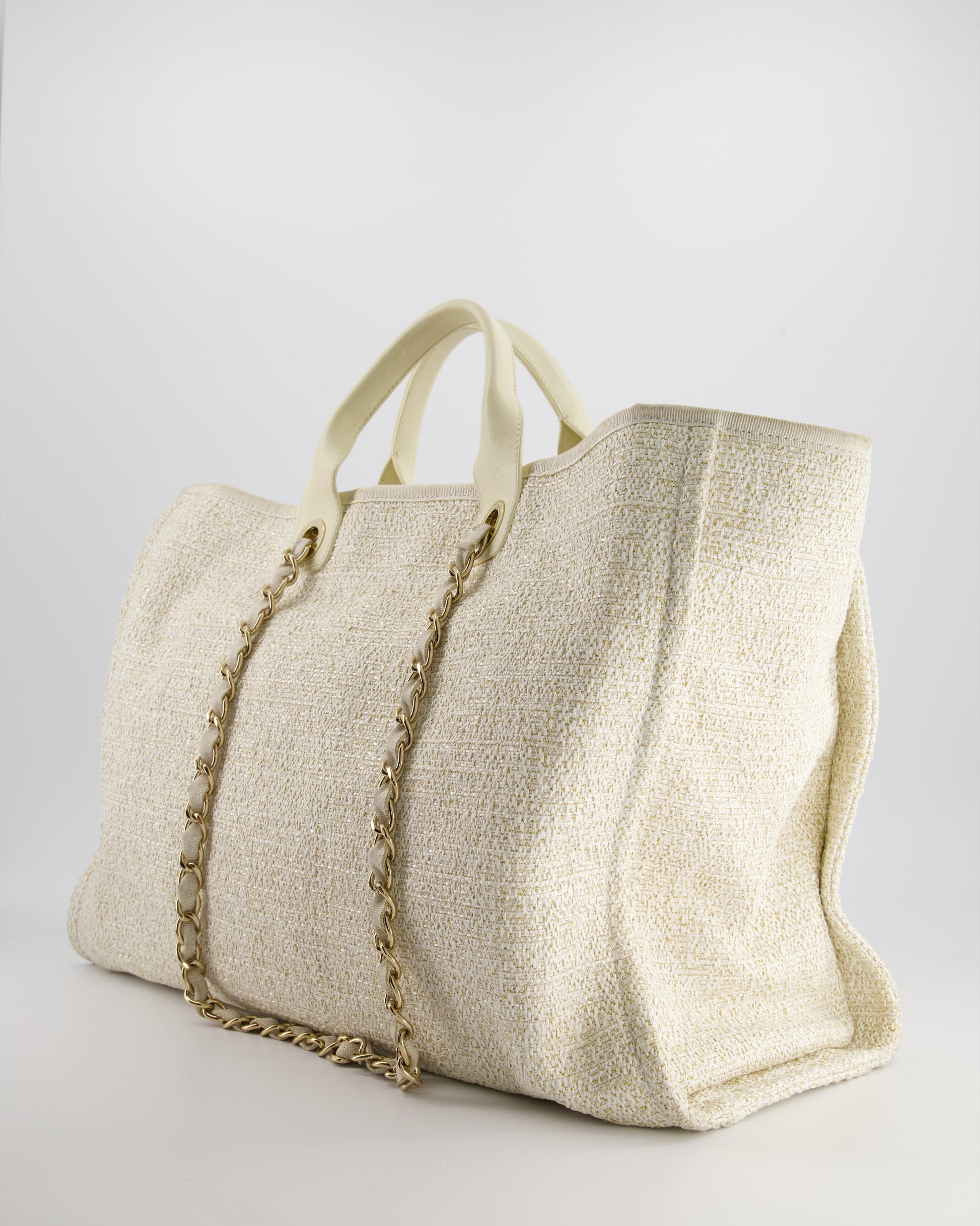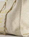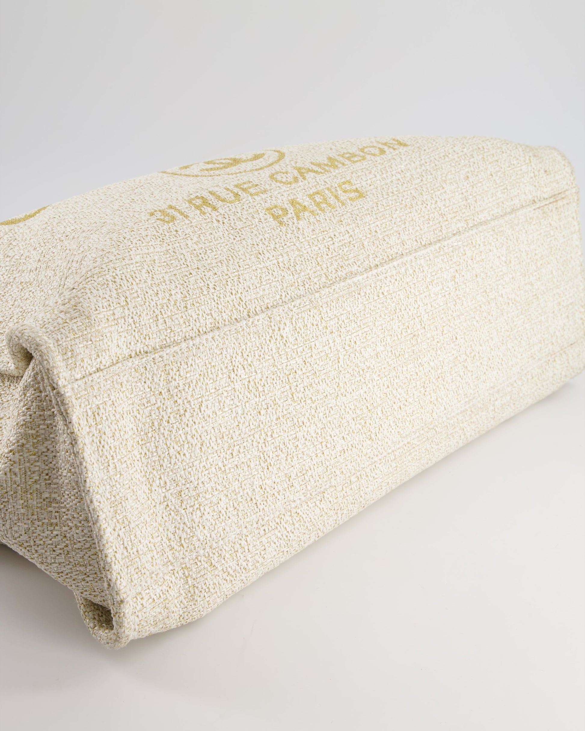 Chanel Cream Tweed Large Deauville Tote Bag with Gold Fabric Detail & Champagne Gold Hardware