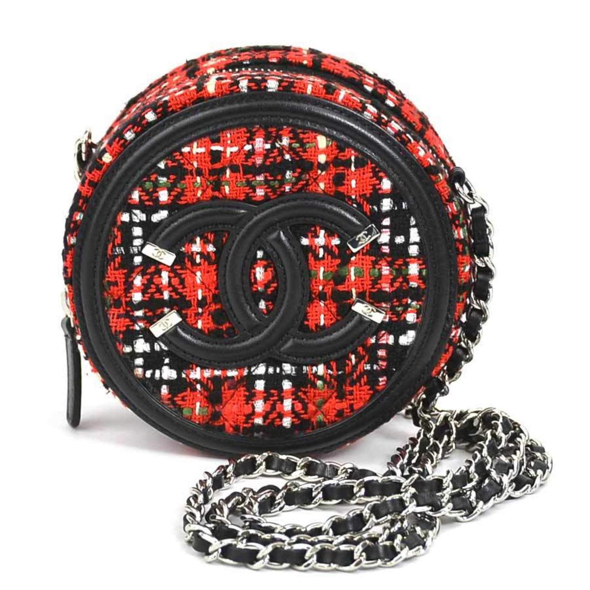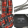 Chanel Crossbody Shoulder Bag Coco Mark Tweed/Leather/Metal Red/Black/Silver Women's