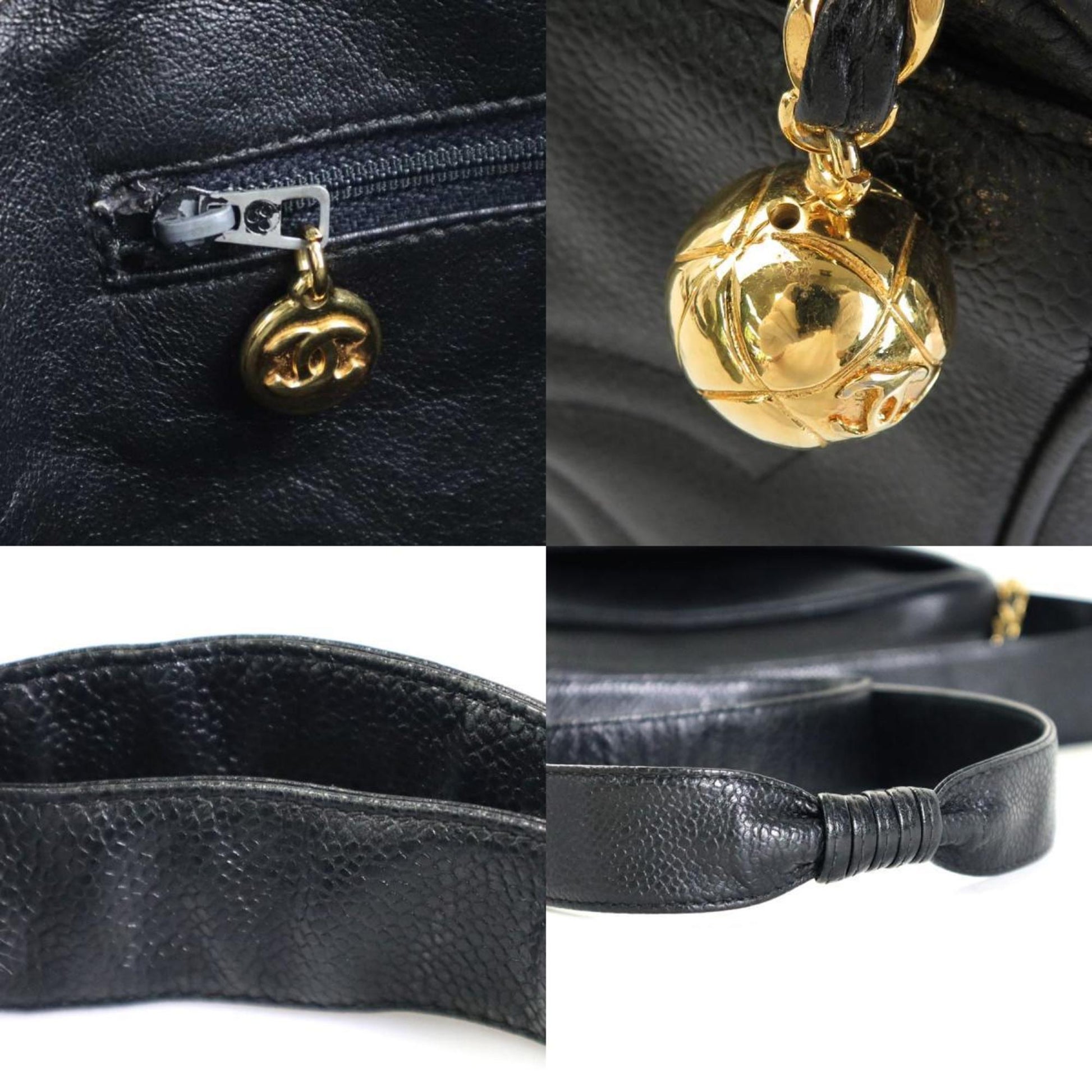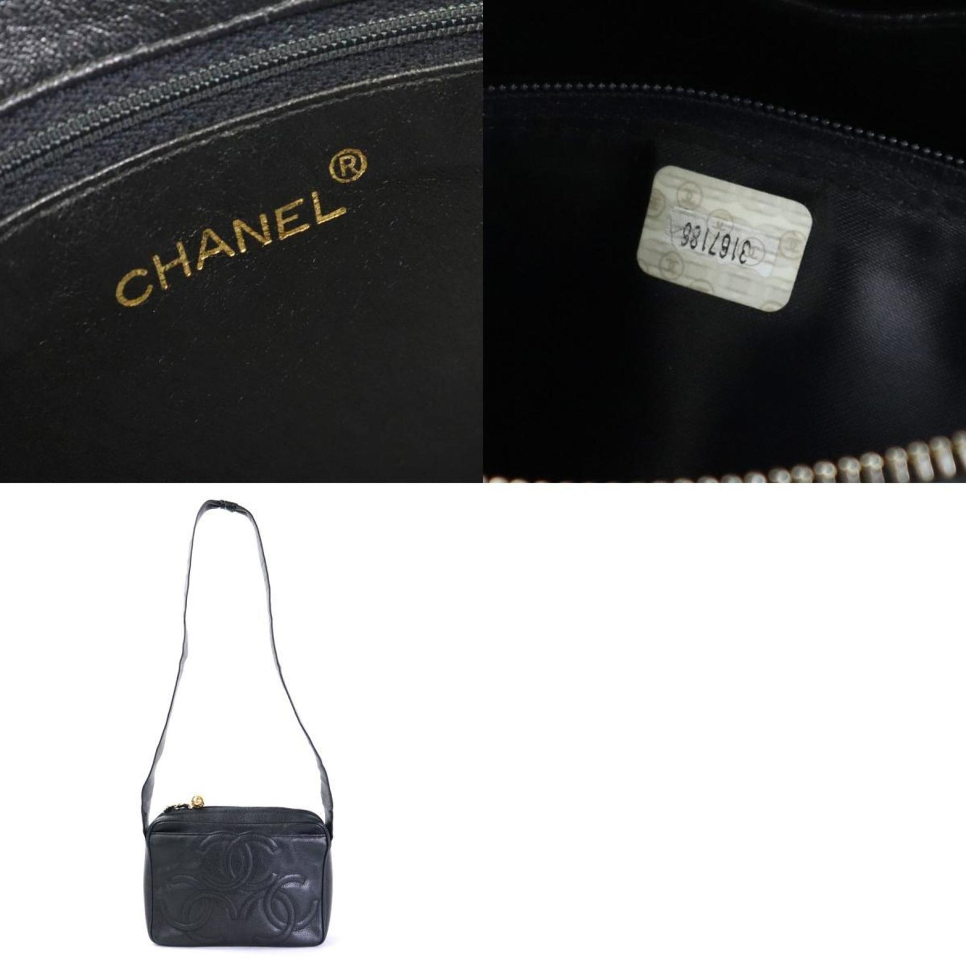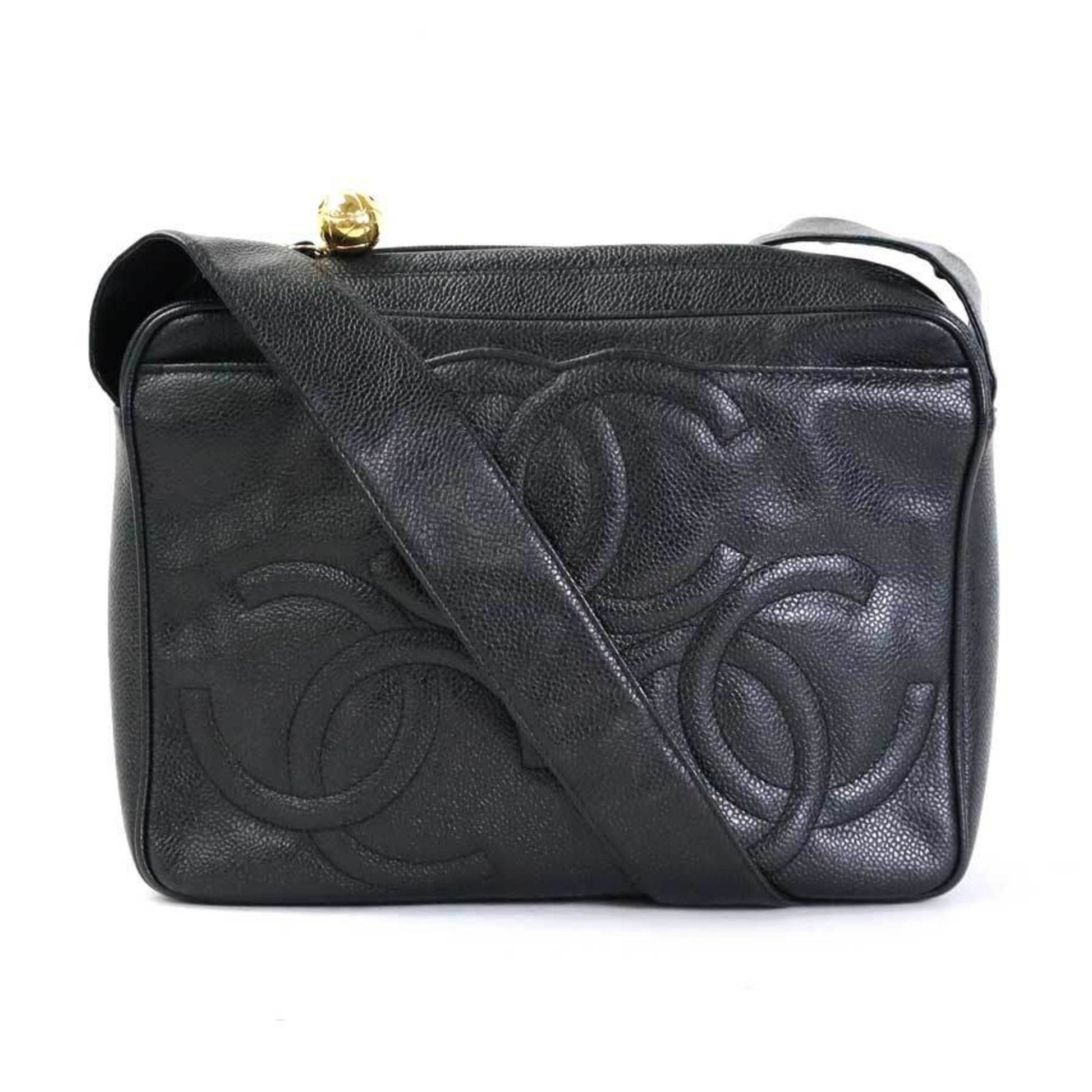 Chanel Crossbody Shoulder Bag Triple Coco Mark Caviar Skin Leather Black Gold Ladies