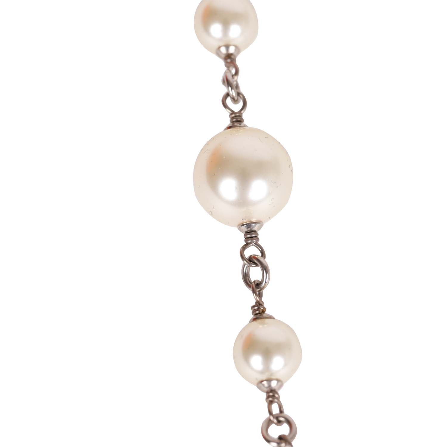 Chanel Crystal Imitation Pearl CC Sautoir Long Necklace