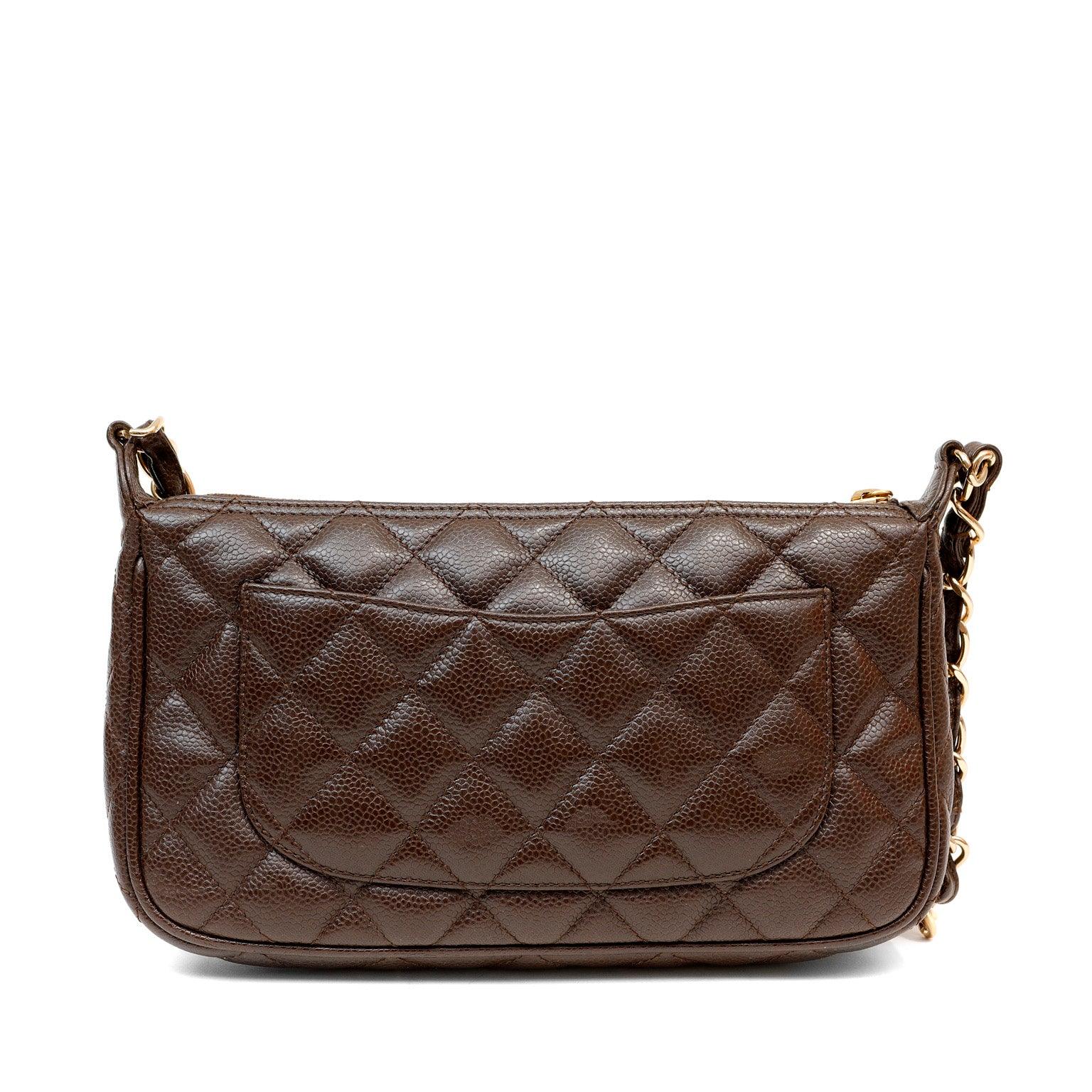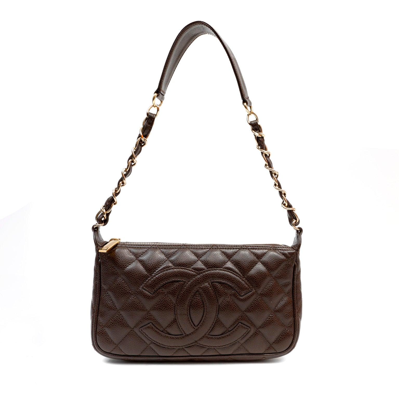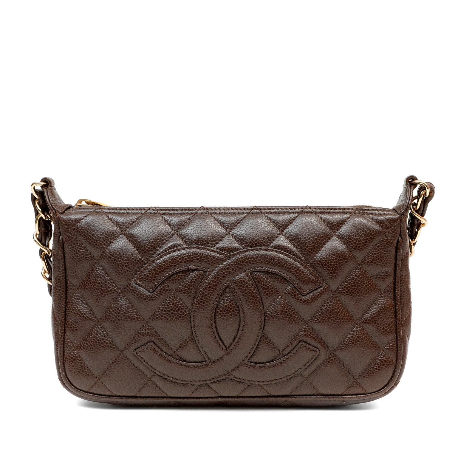 Chanel Dark Brown Caviar Timeless CC Shoulder Bag w/ Gold Hardware
