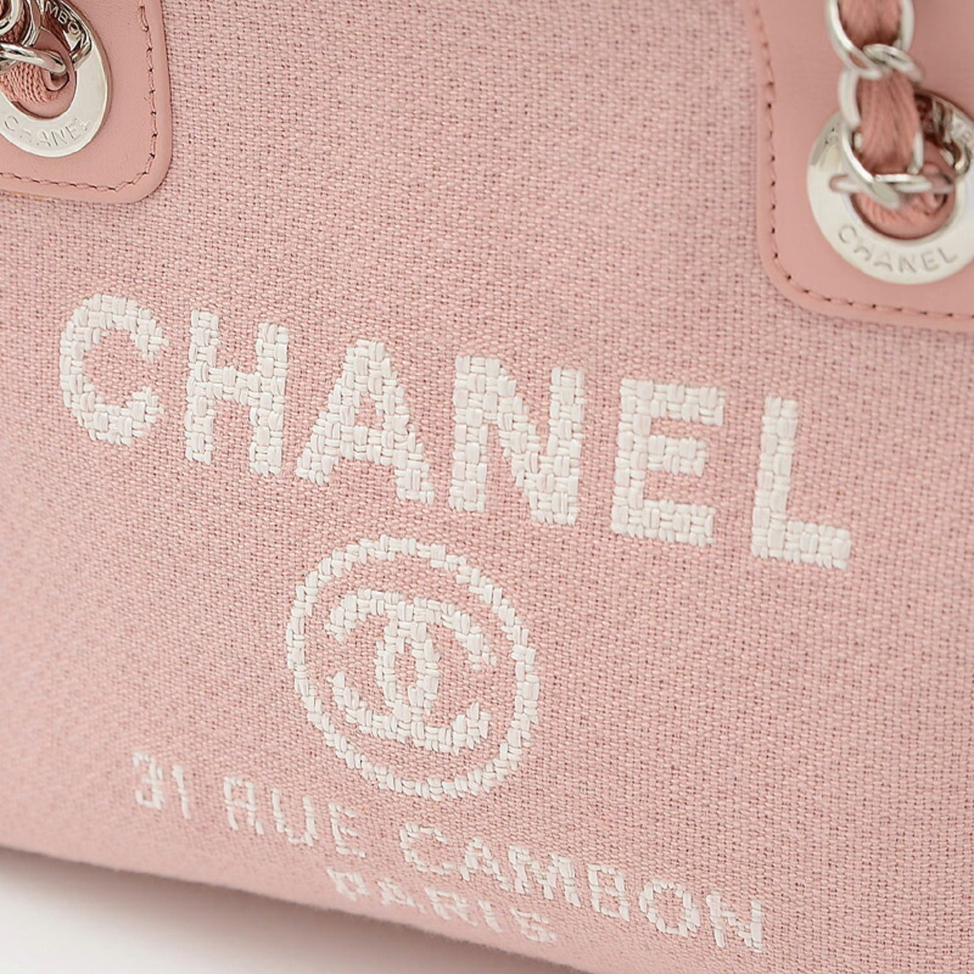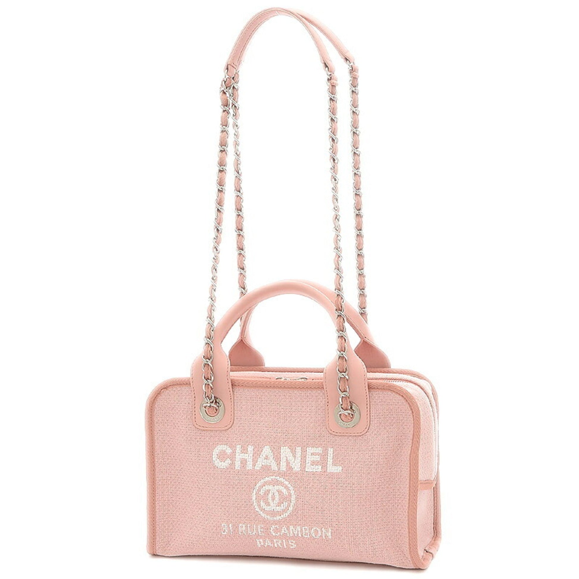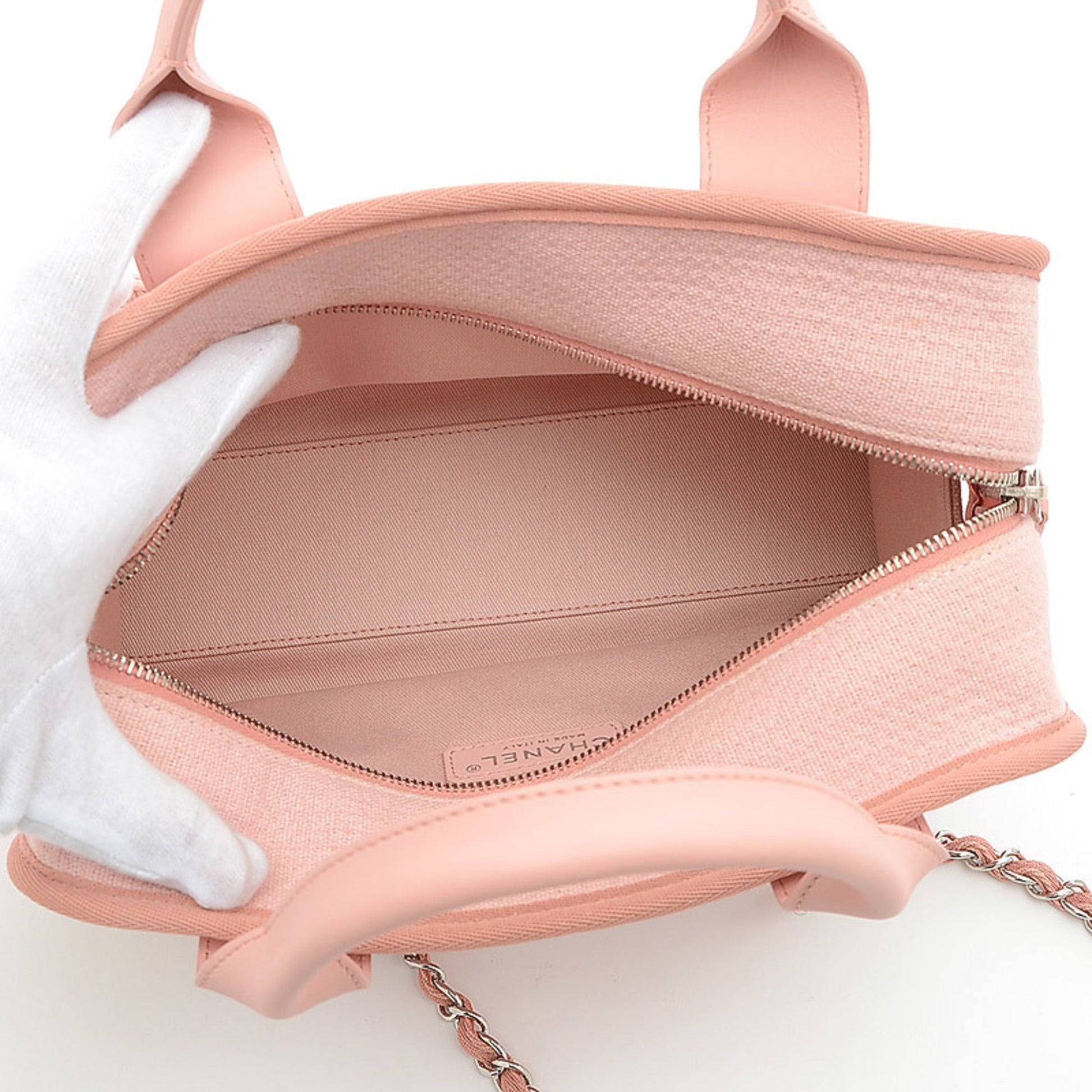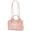 Chanel Deauville Bowling Bag Canvas Calf Pink A92749 Shoulder