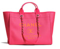CHANEL DEAUVILLE MIXED FABRIC LARGE TOTE PINK & ORANGE