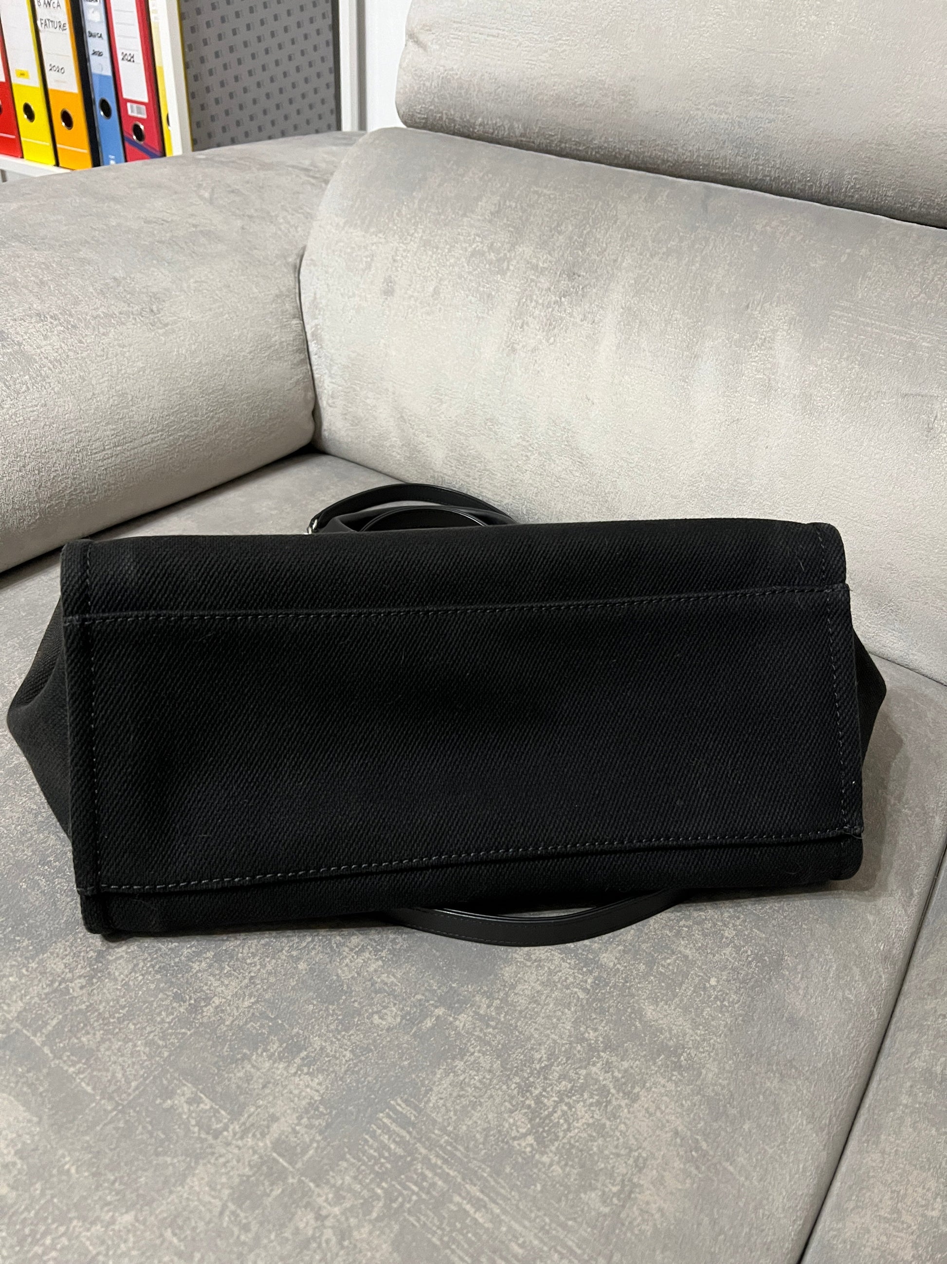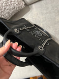 The bag has been embellished with black beads.�This is comfortable size large with 4 iconic handles.�