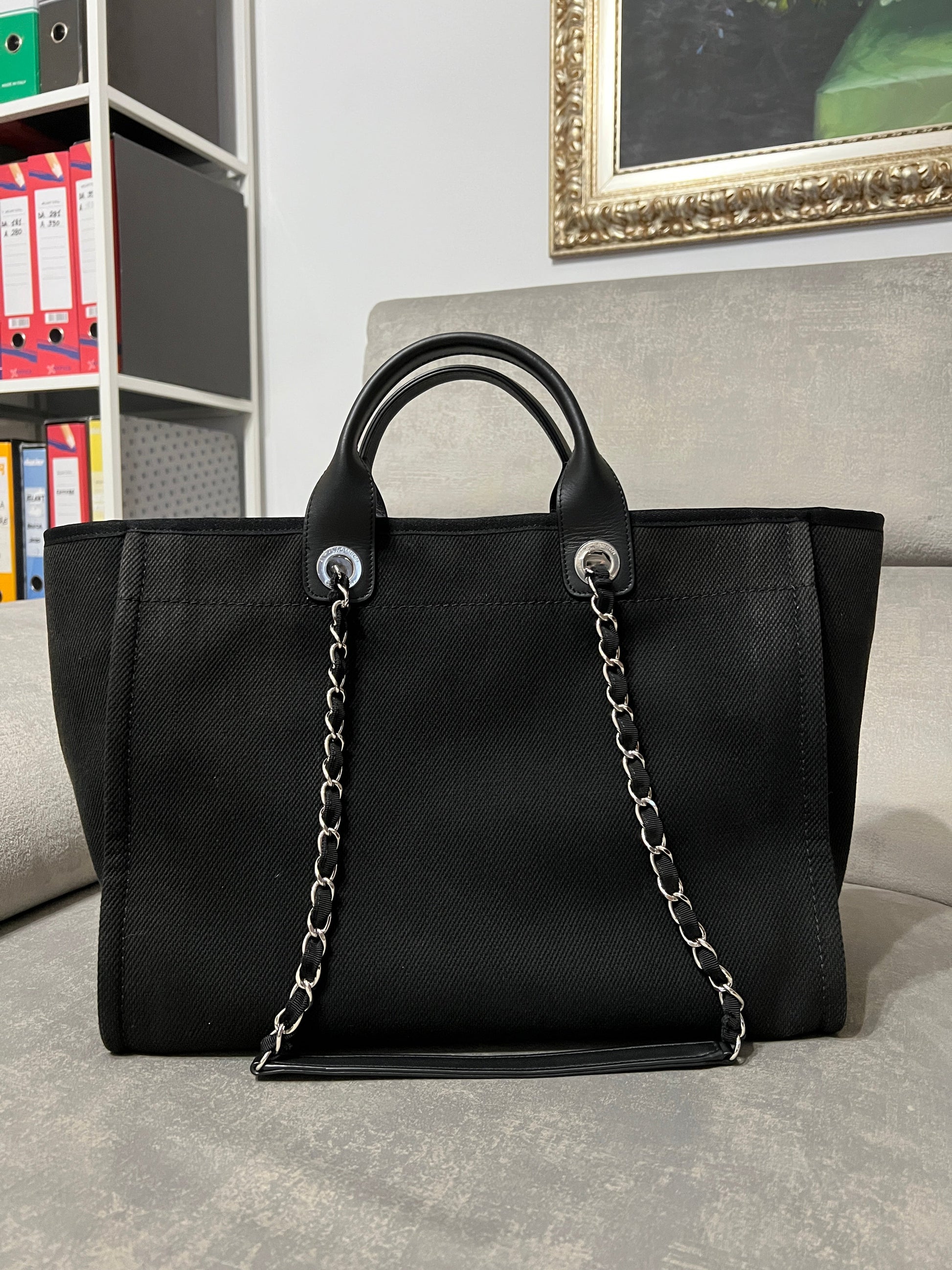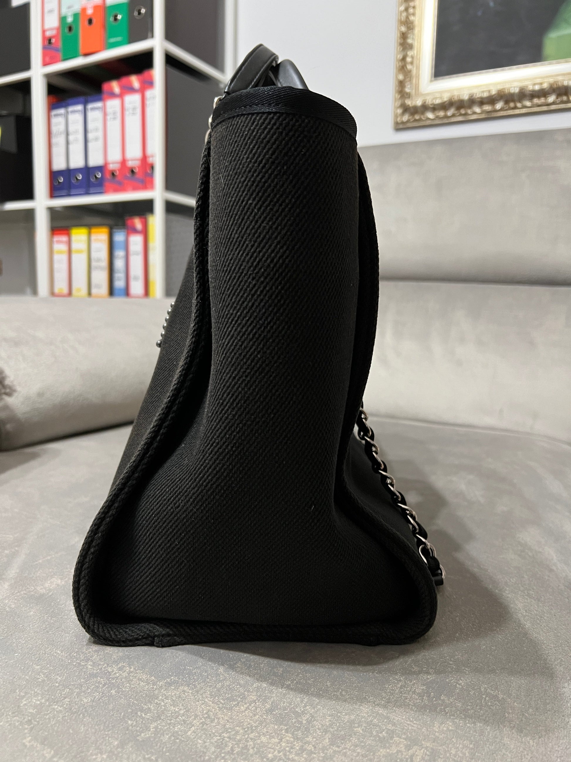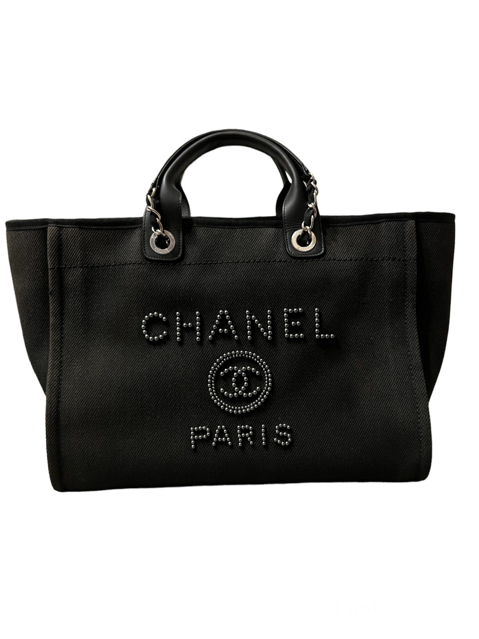 Chanel Deauville Tote Bag black canvas and silvered tone hardware.�