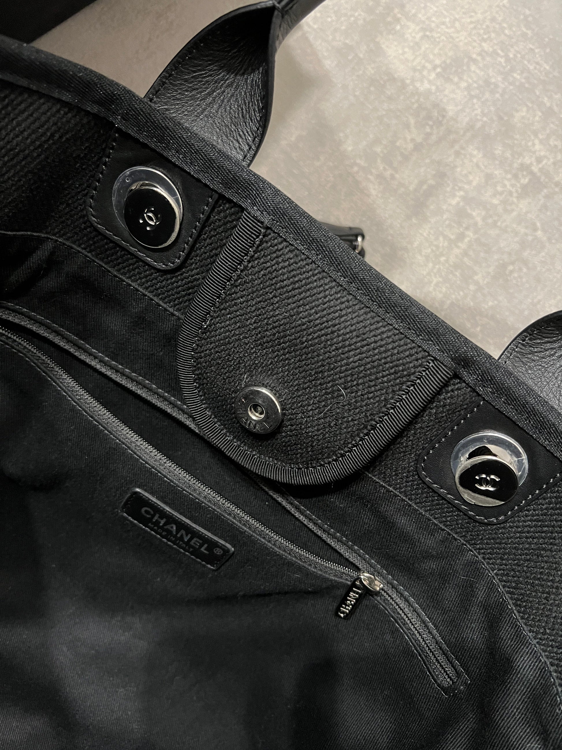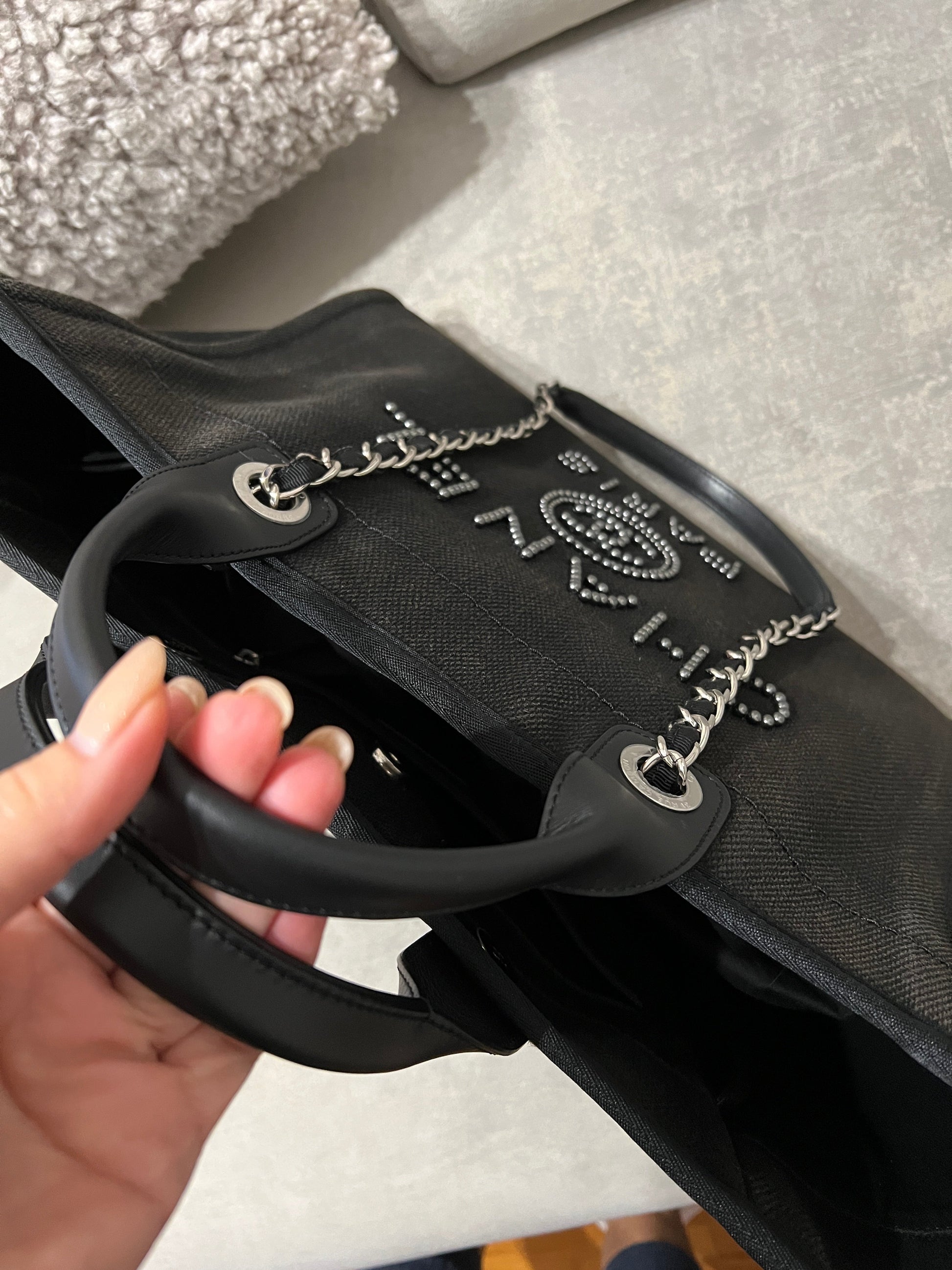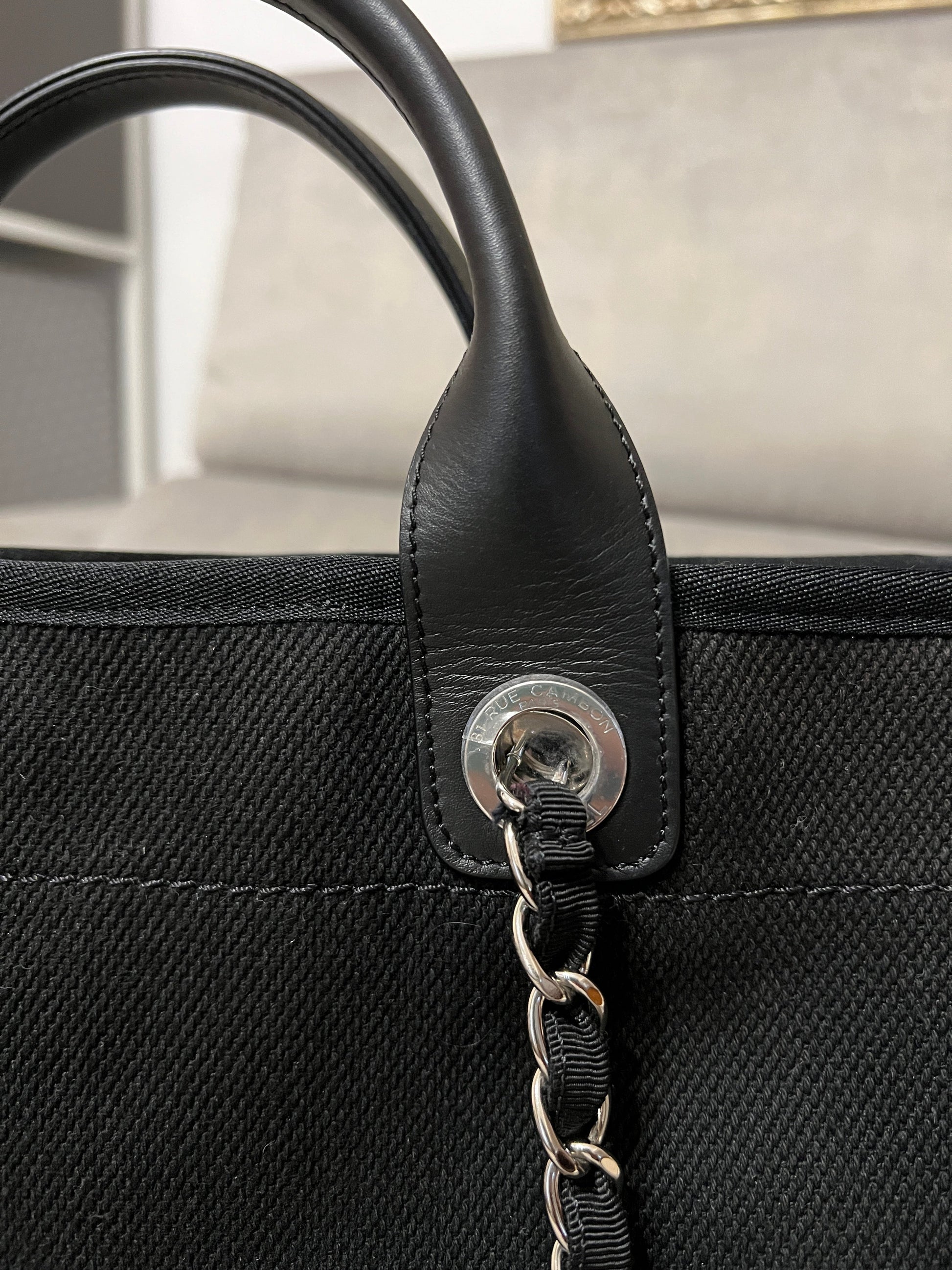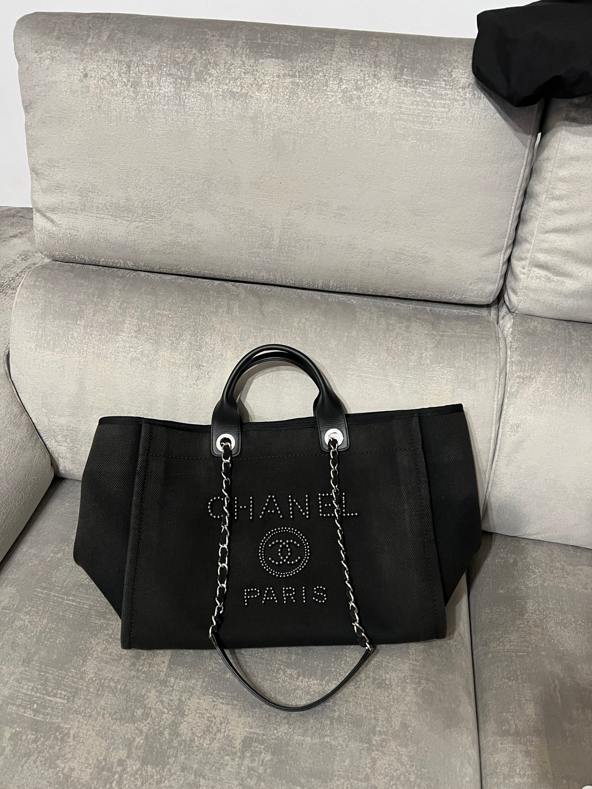 Chanel Deauville Tote Bag black canvas and silvered tone hardware.�
