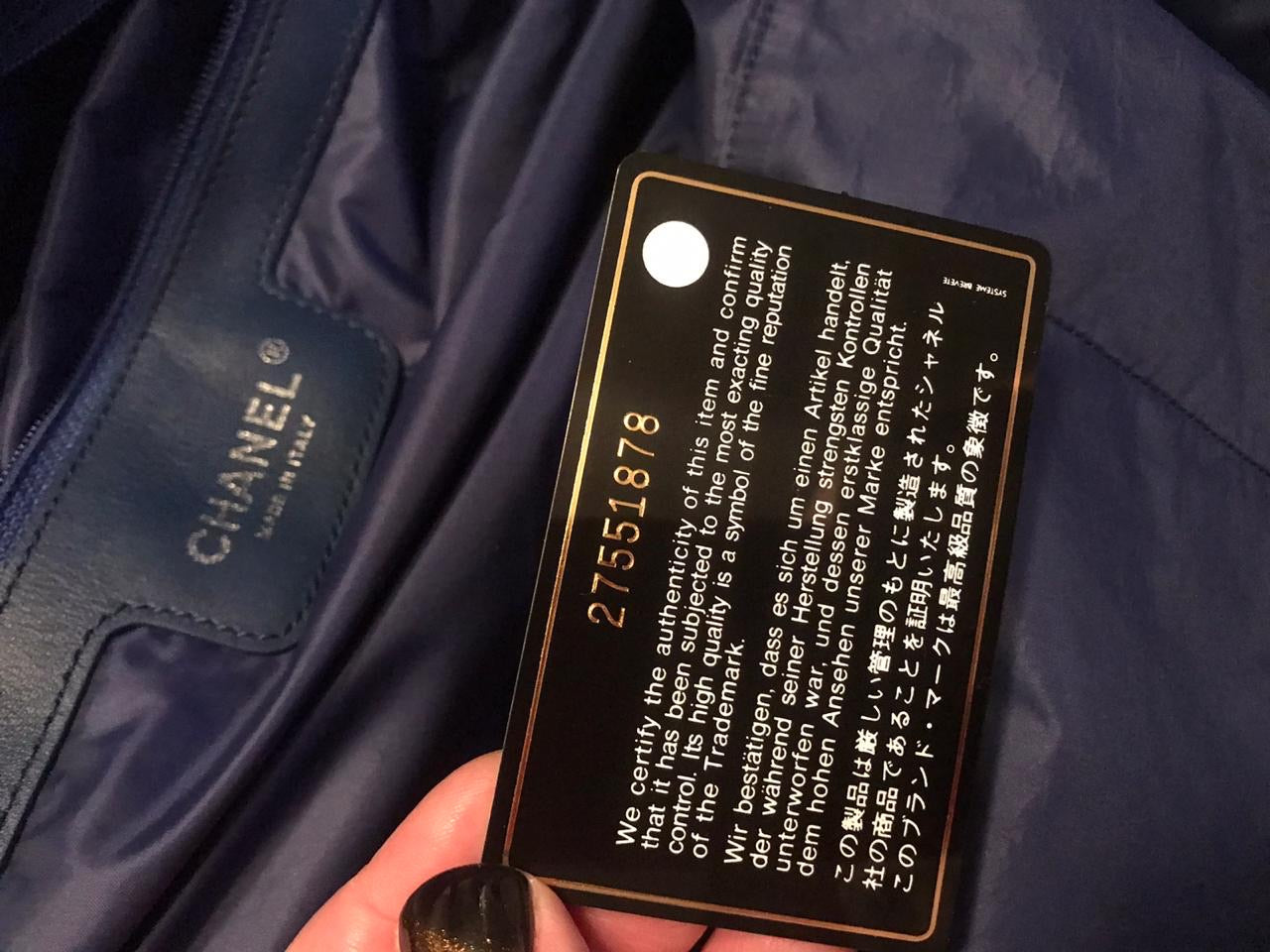 On a cream-colored mohair base, a classic blue Chanel logo is embroidered in the middle of the bag. The bag can also serve as a comfortable pillow under your head if you fold it up, or it can turn into a big bag by unzipping the branded Chanel clasp at the bottom which will increase the bag in size.