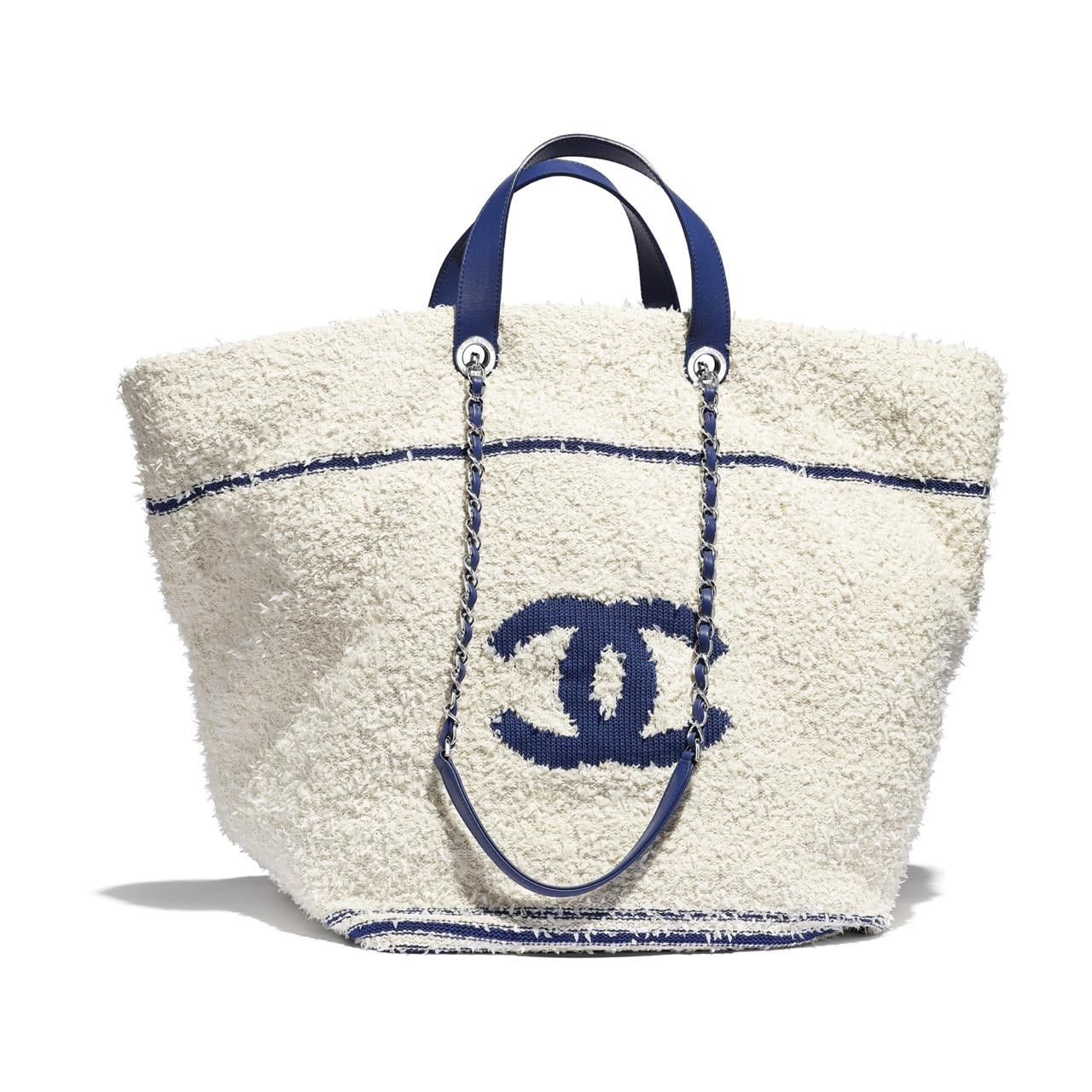 Take a closer look at our large terrycloth 2019 limited edition Chanel Deauville bag. A soft, pleasant-to-touch bag - a bag from high-quality mohair wit�s�strong leather handles will become your fellow traveller for the whole summer.