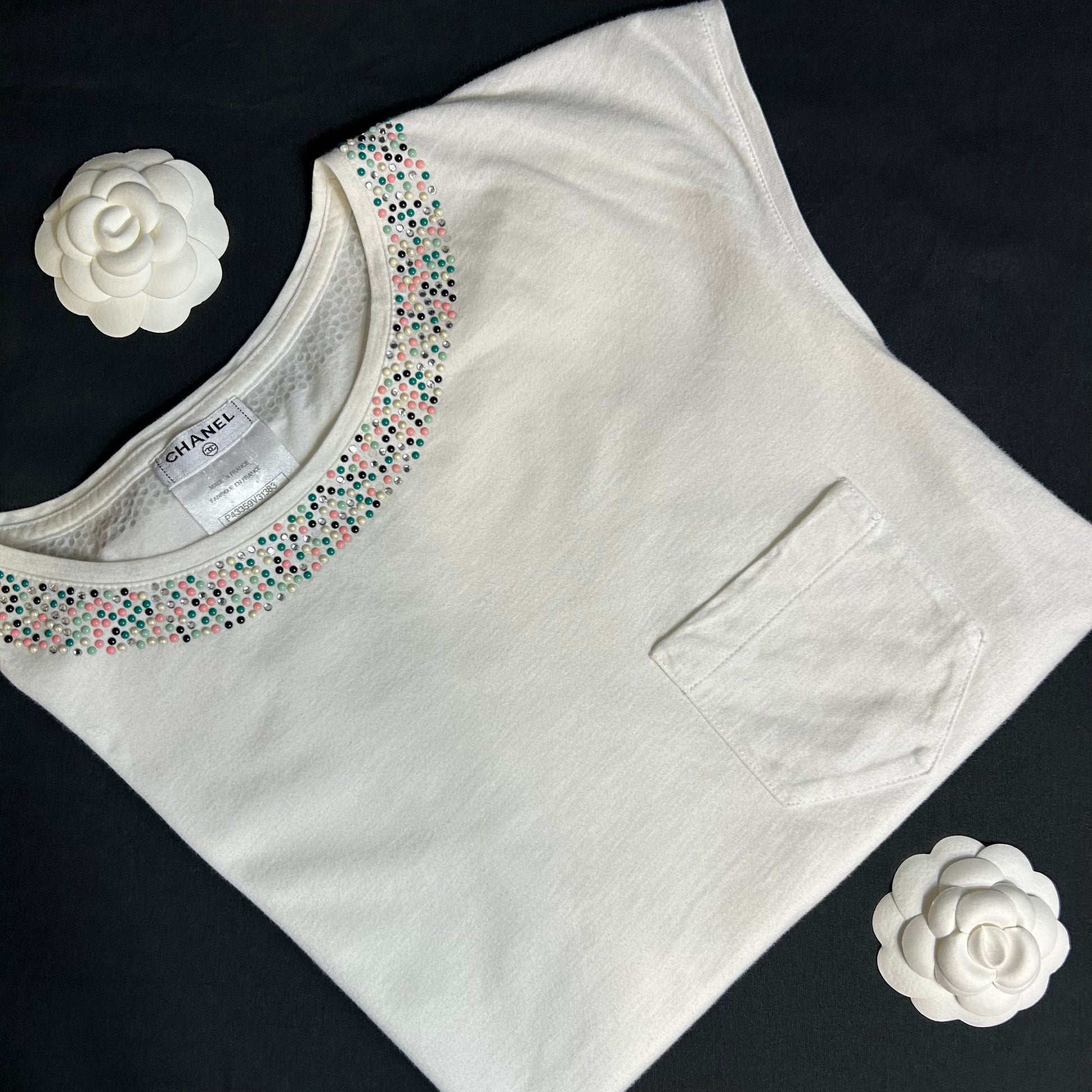 La maison Chanel signe ce débardeur avec un col travaillé et une poche plaquée.