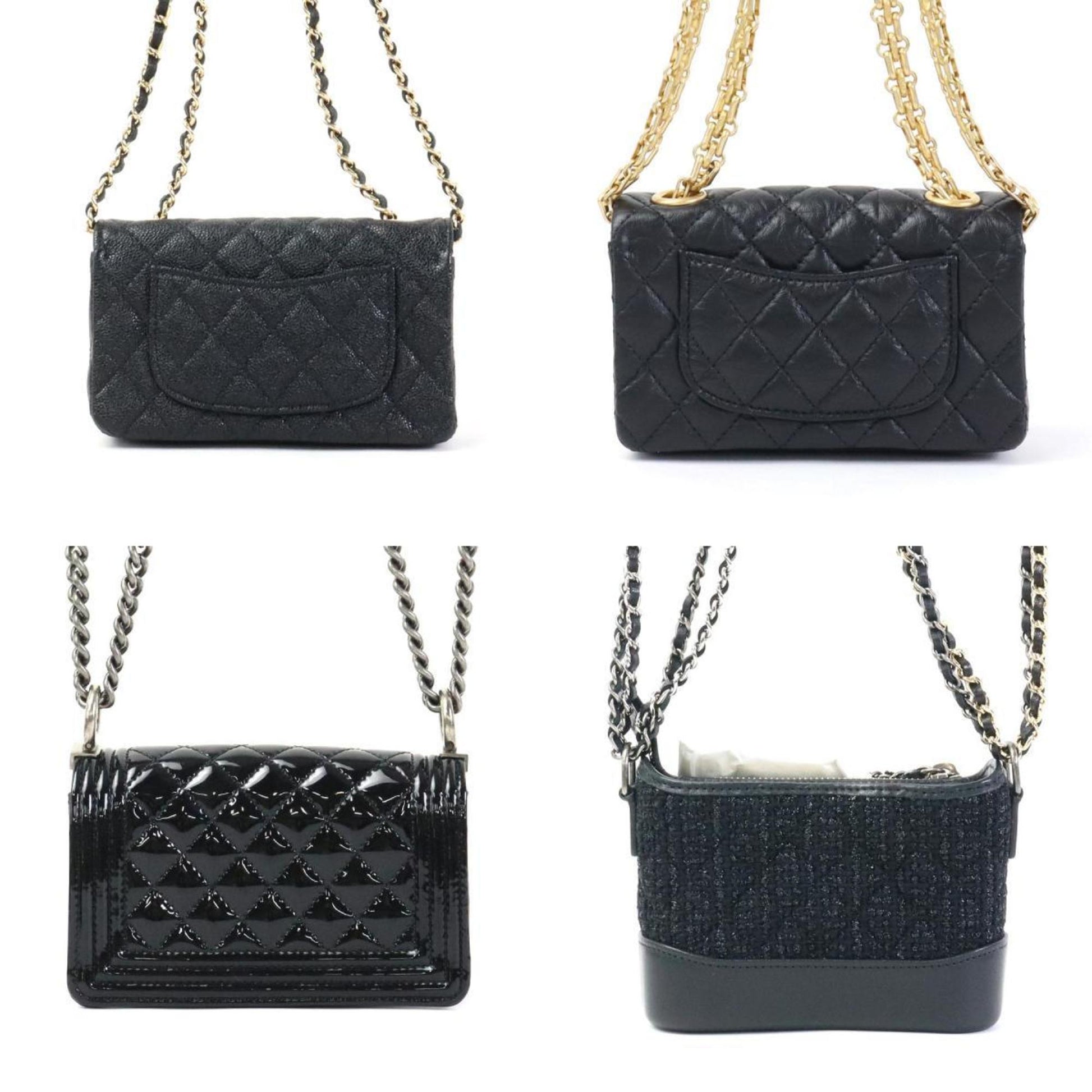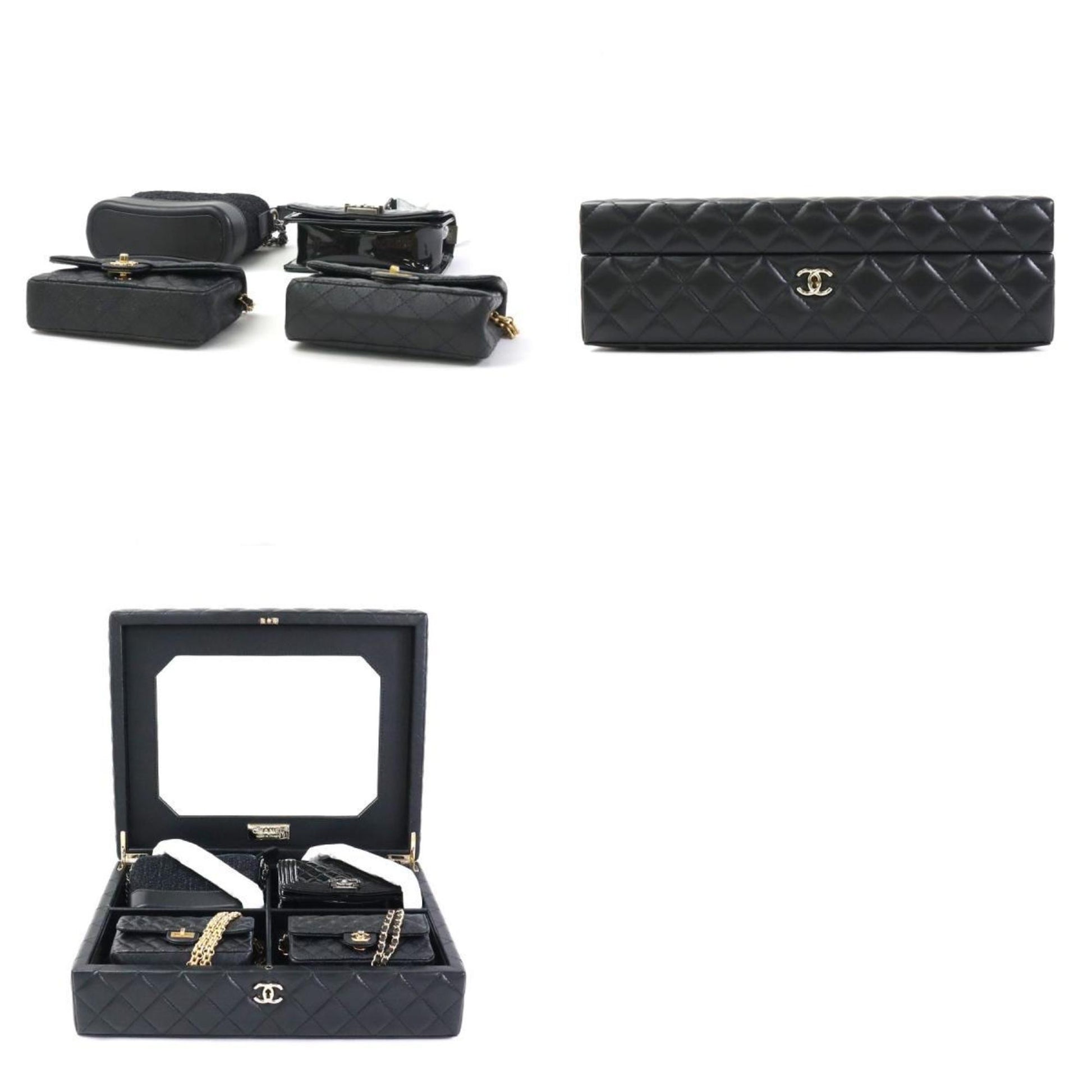 Chanel Diagonal Shoulder Bag Trunk Mini 4 Piece Set Success Story Leather Black Women's