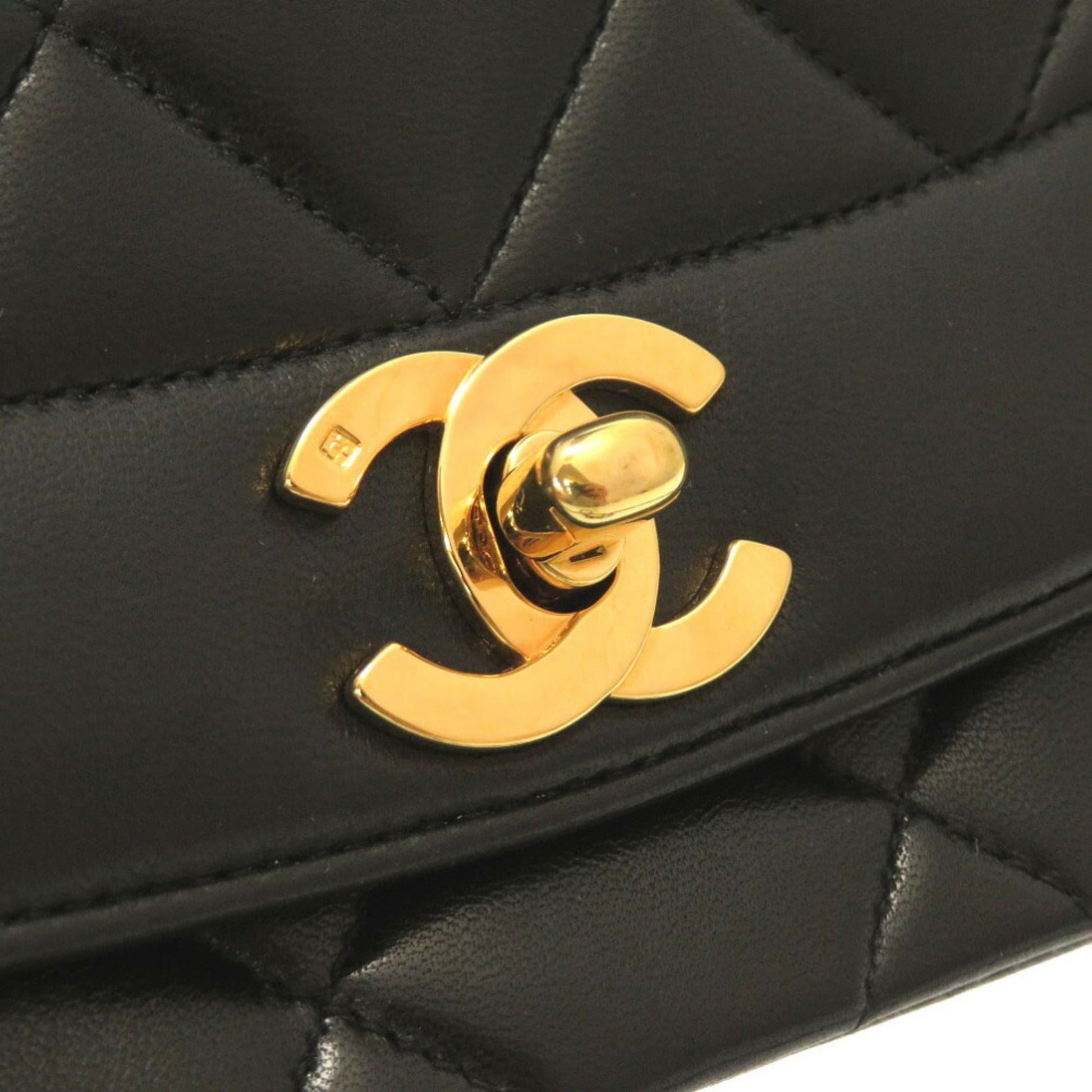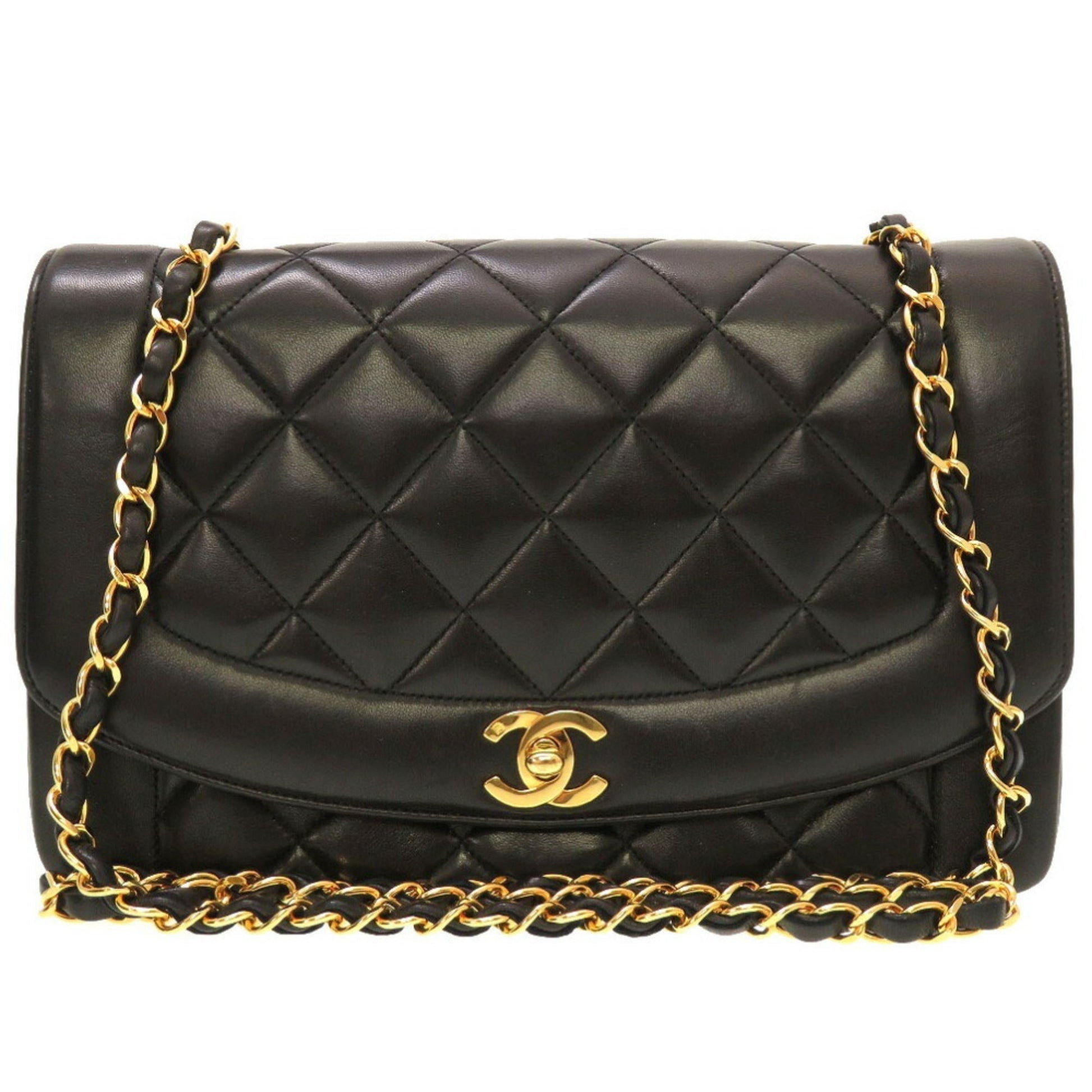 Chanel Diana 25 Medium Matelasse Lambskin Black Gold Chain Shoulder Bag Cocomark Turnlock