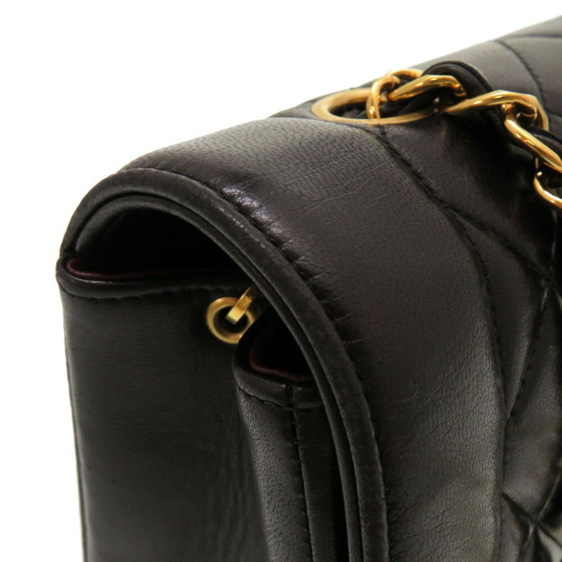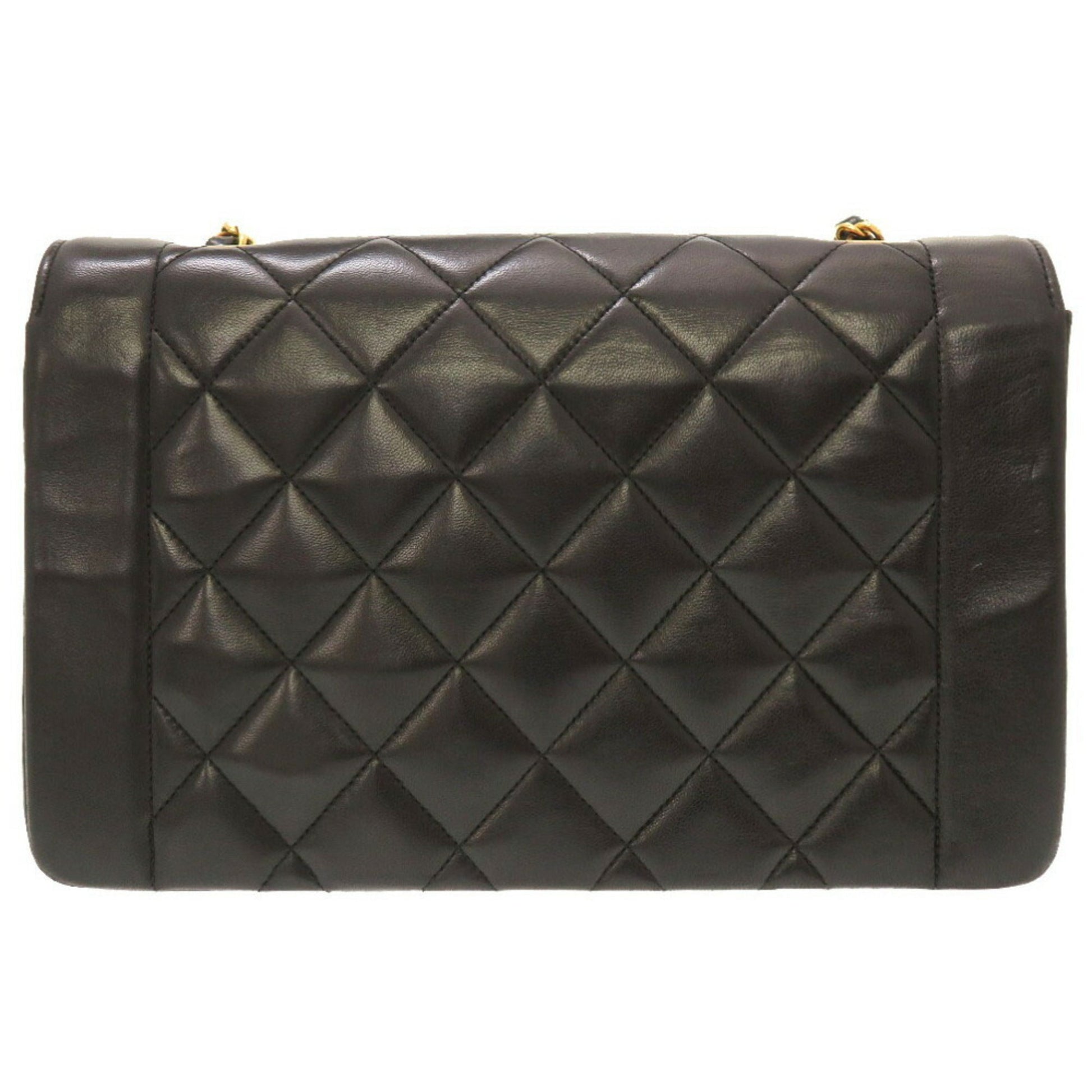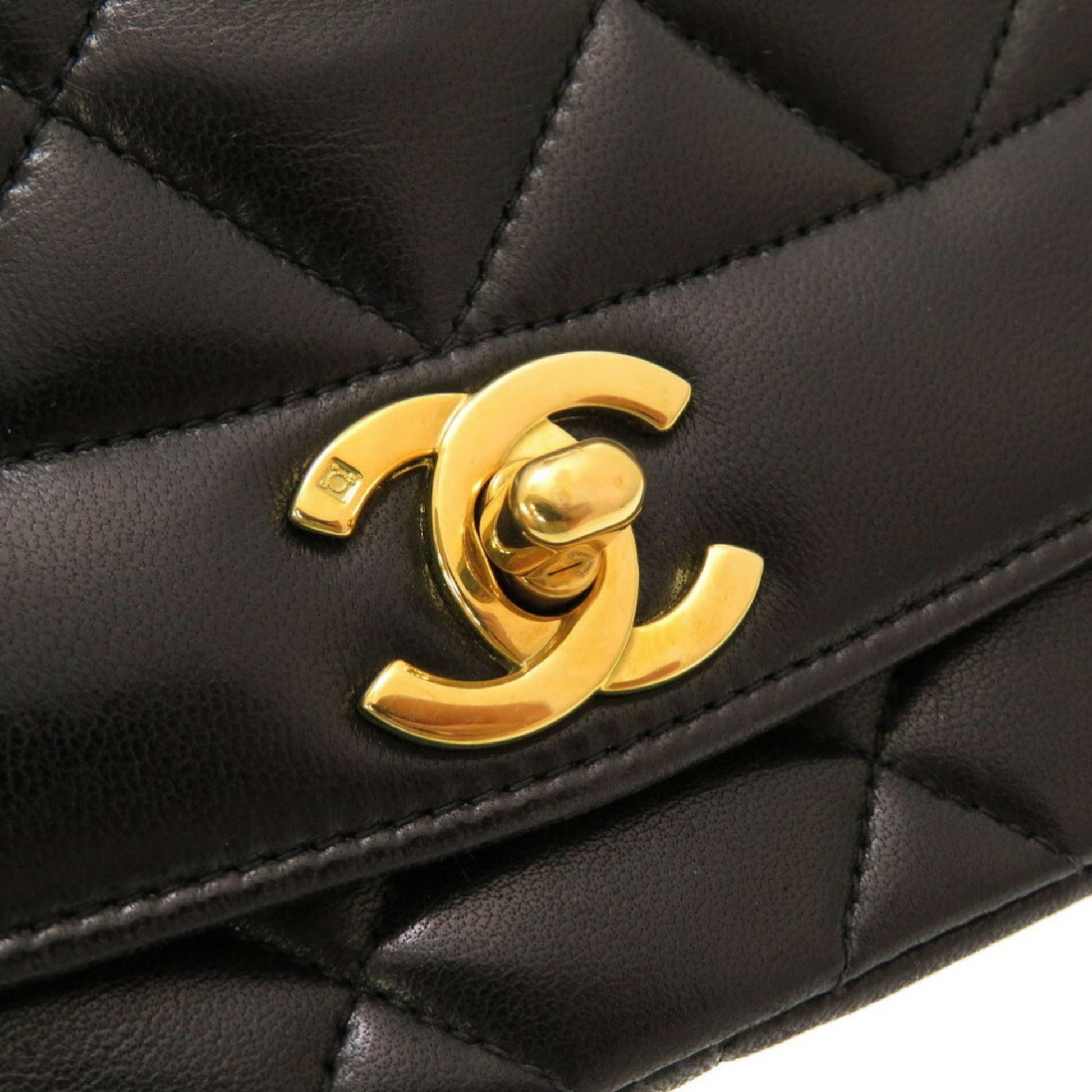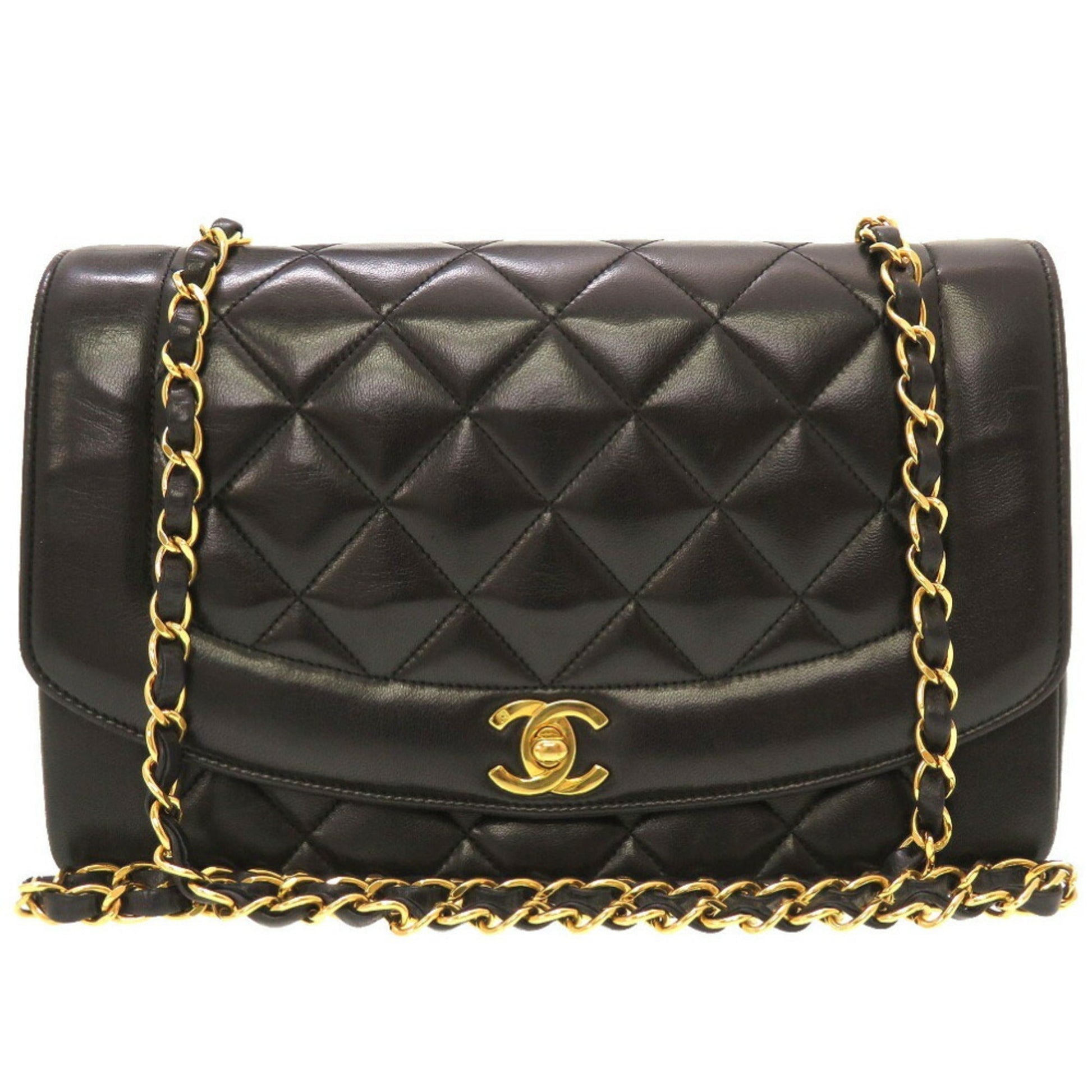 Chanel Diana 25 Medium Matelasse Lambskin Black Gold Chain Shoulder Bag No. 3 Coco Mark Turnlock
