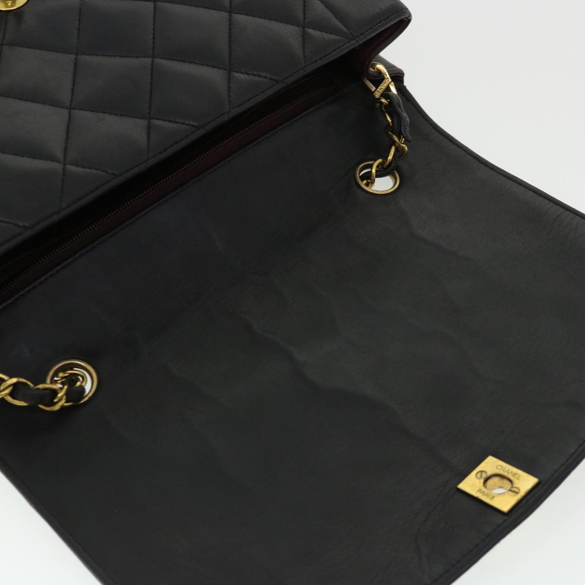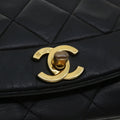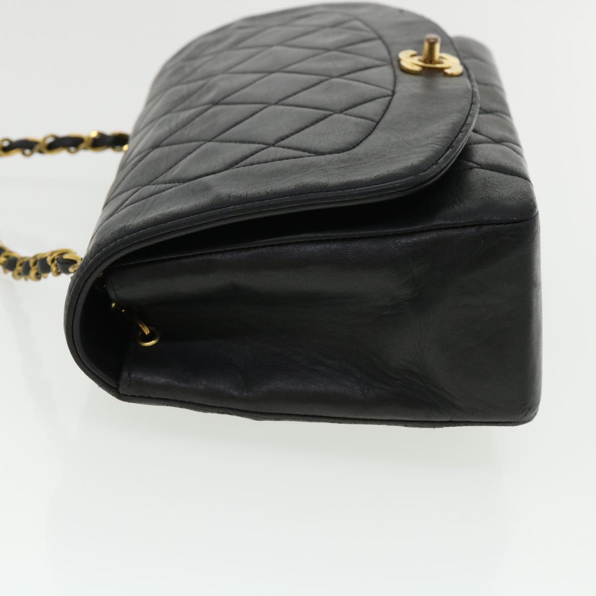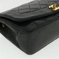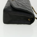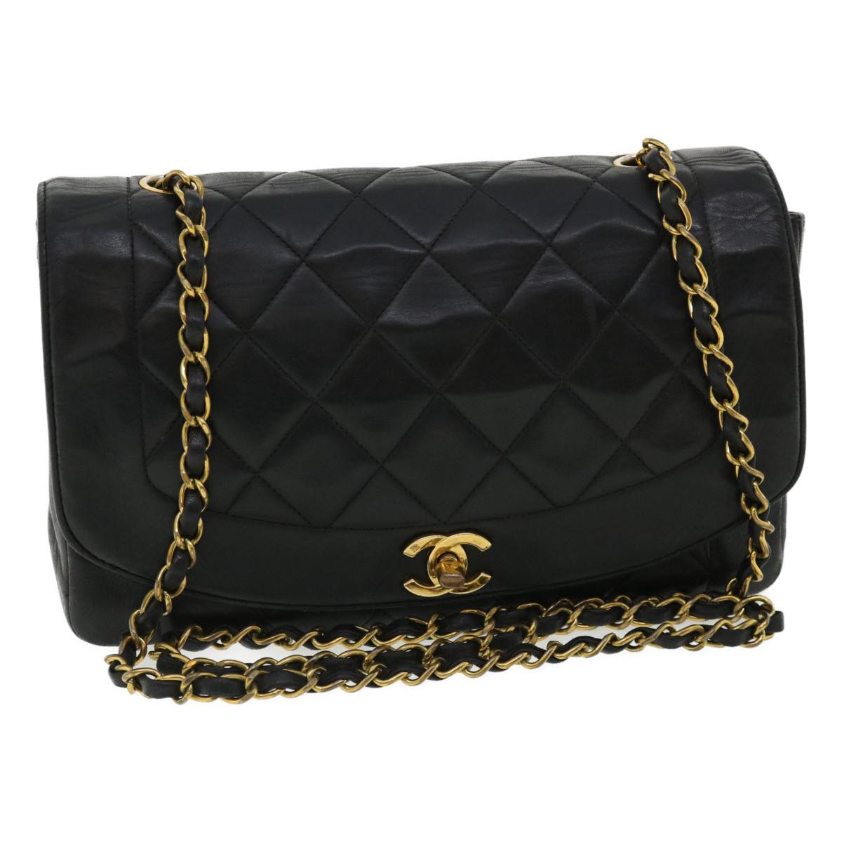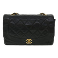 Chanel Diana Matelasse Chain Flap Shoulder Bag Lamb Skin Black Gold 25036A