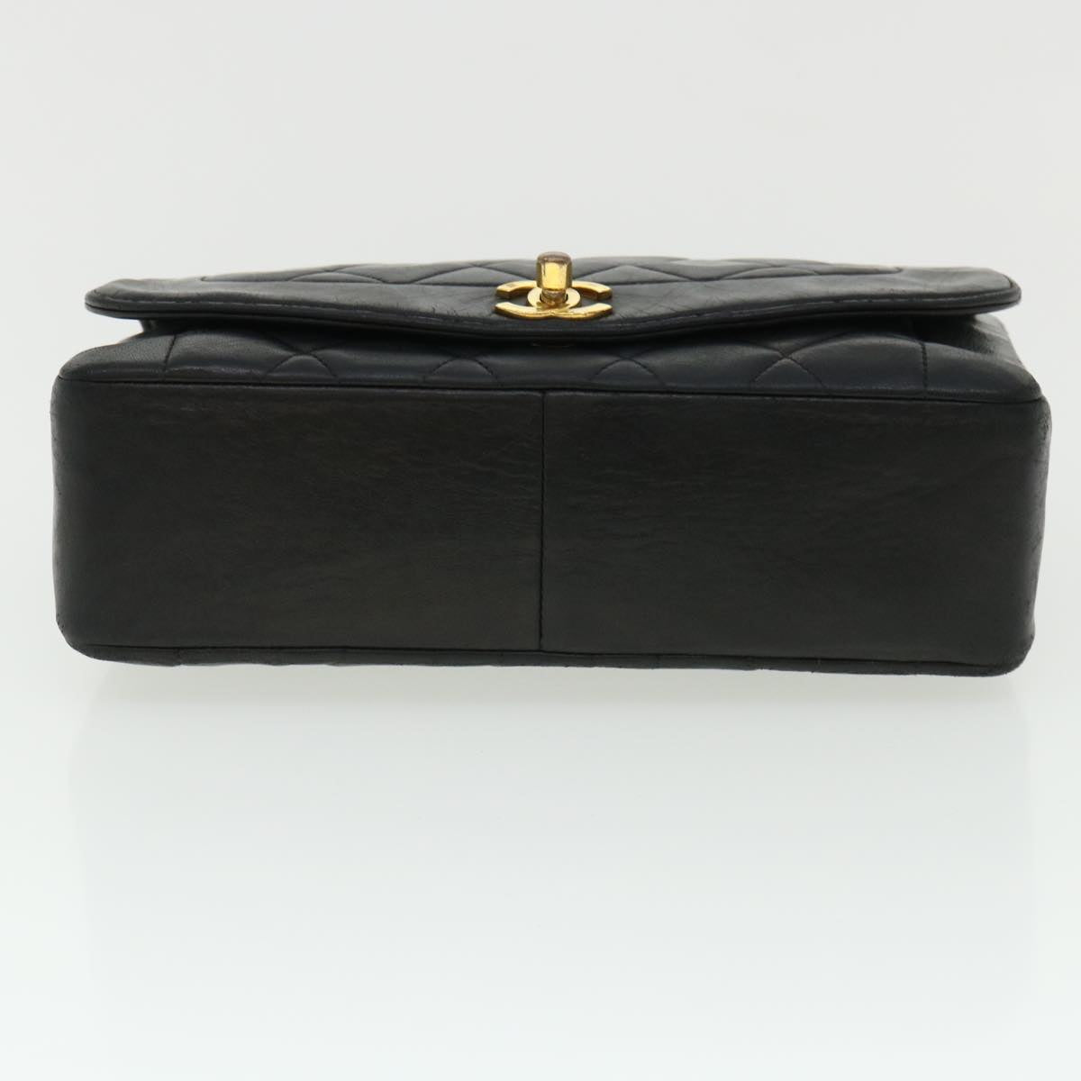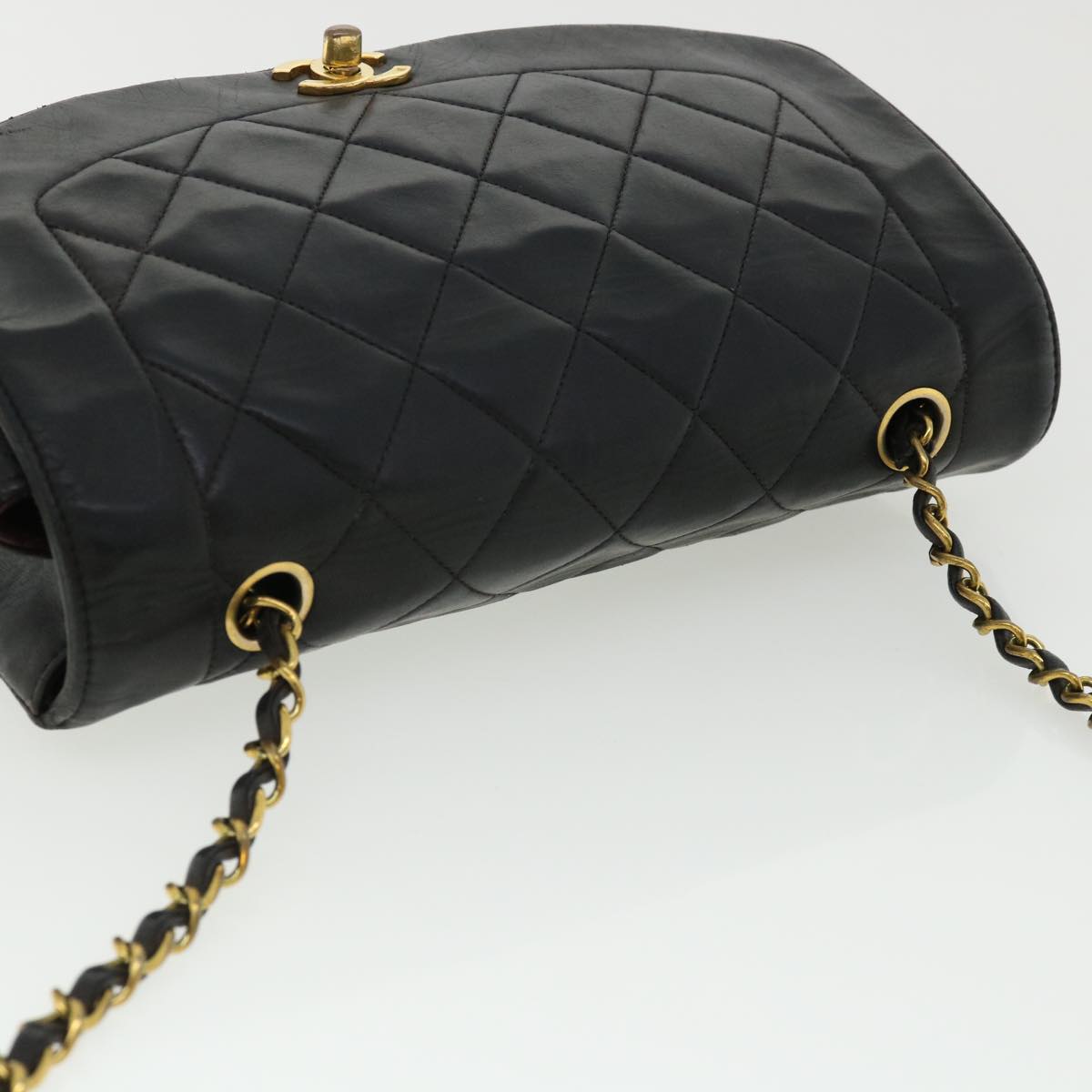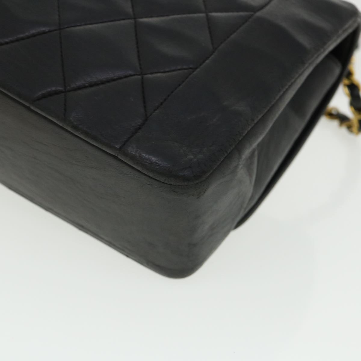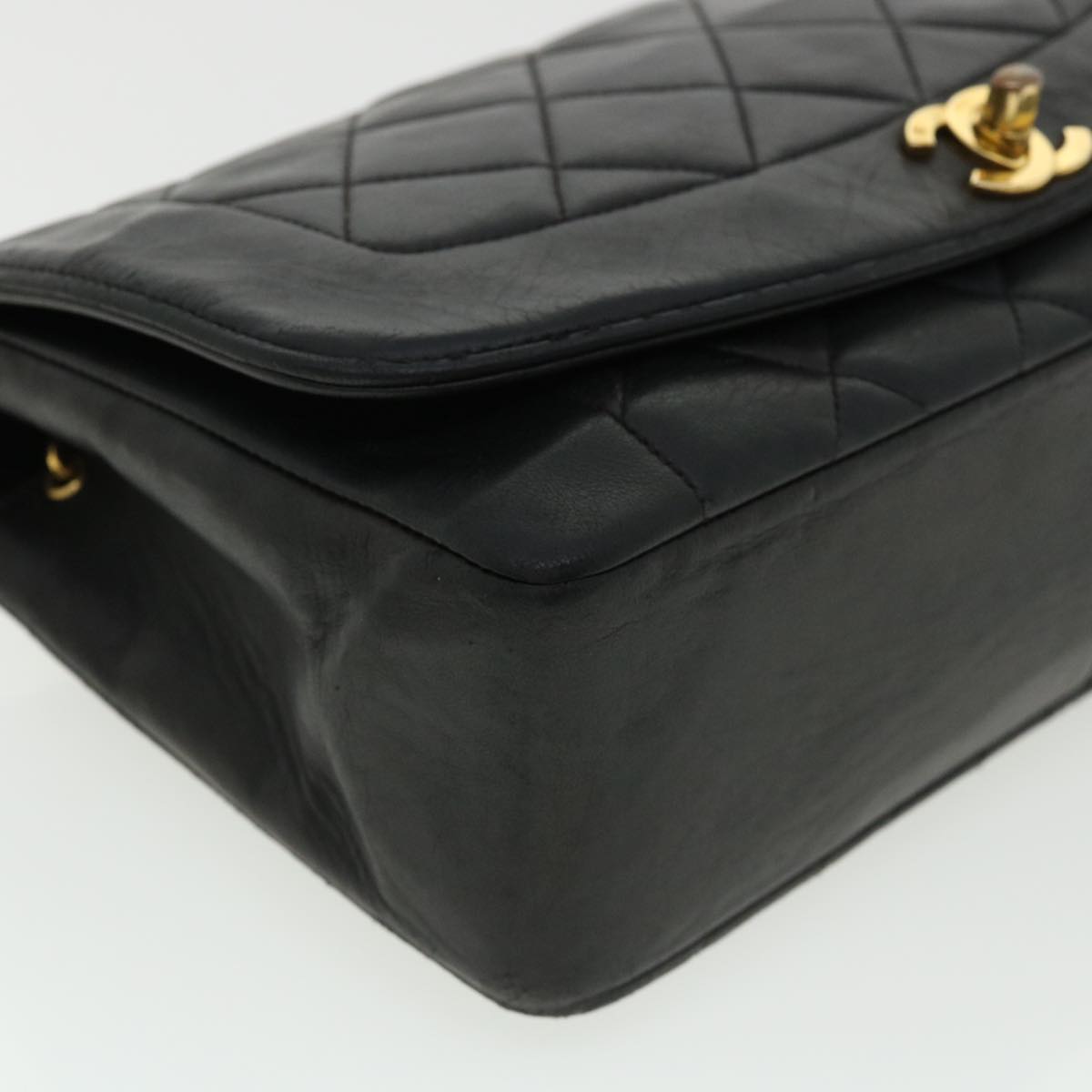 Chanel Diana Matelasse Chain Flap Shoulder Bag Lamb Skin Black Gold Auth 25036A
