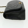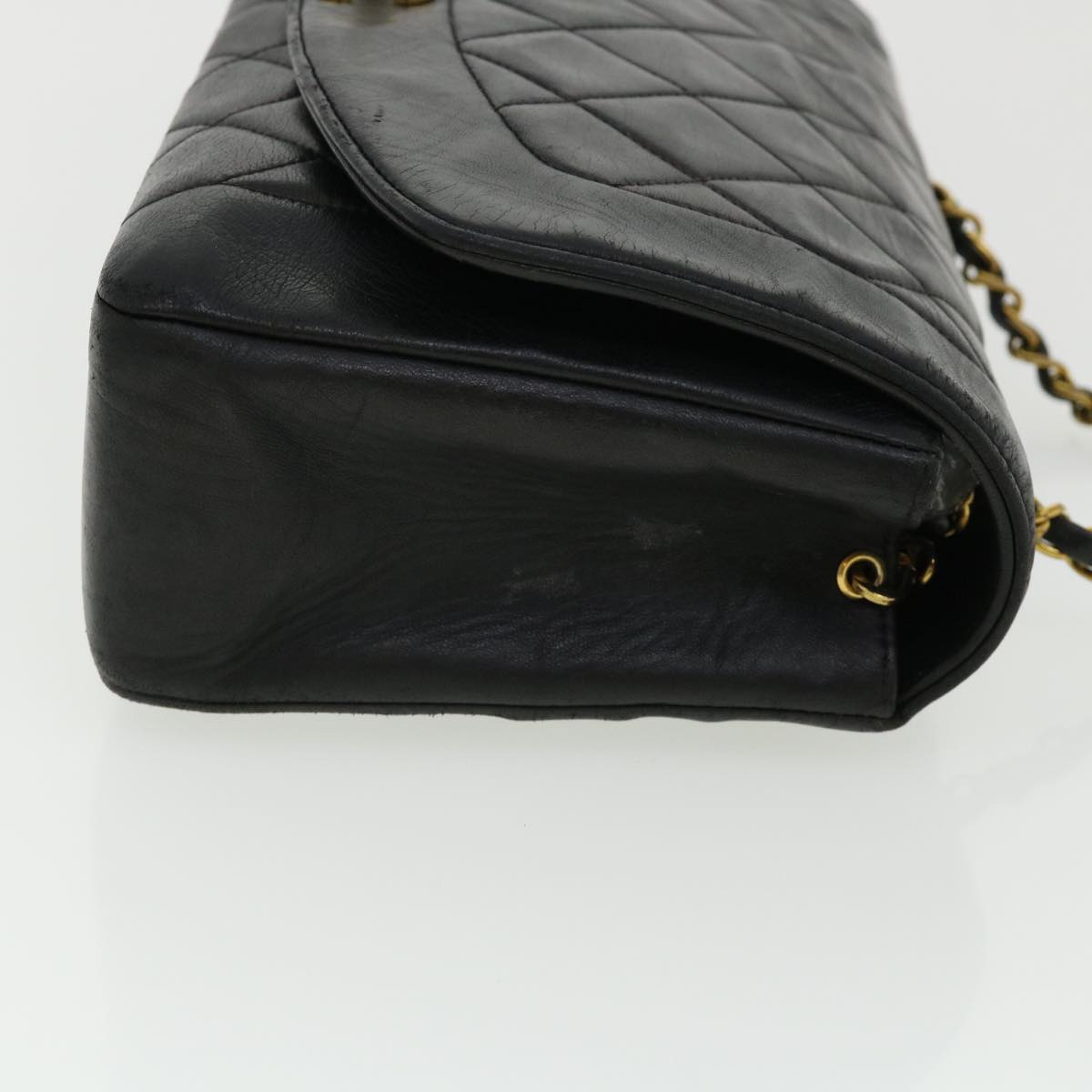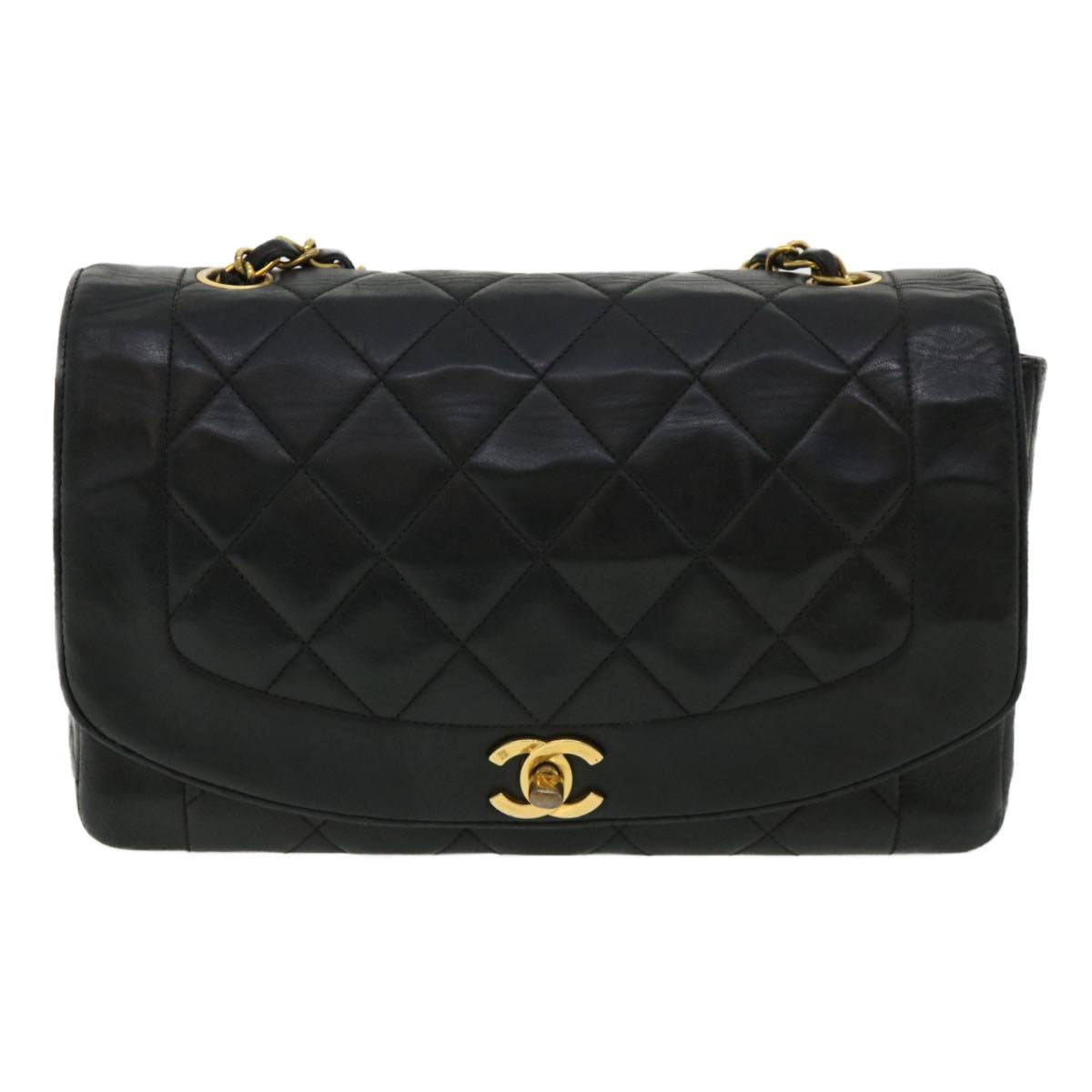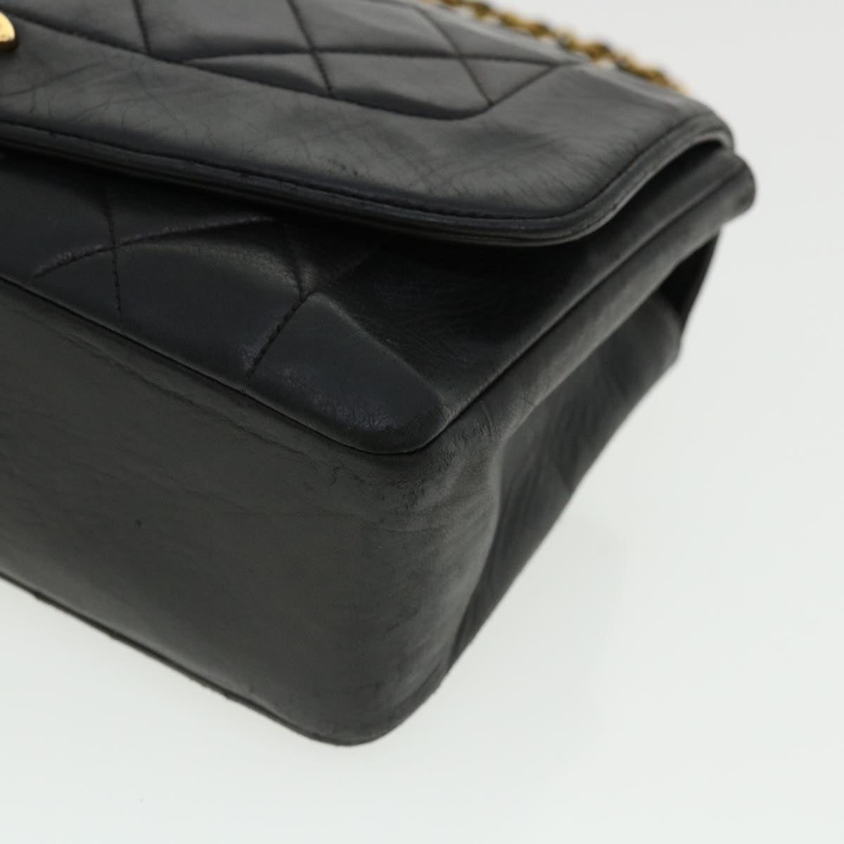 Chanel Diana Matelasse Chain Flap Shoulder Bag Lamb Skin Black Gold Auth 25036A