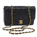 CHANEL Diana Matelasse Chain Shoulder Bag Lamb Skin Black CC Auth yk12192A
