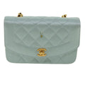 Chanel Diana Matelasse Shoulder Bag Satin Light Blue CC Auth 33325A