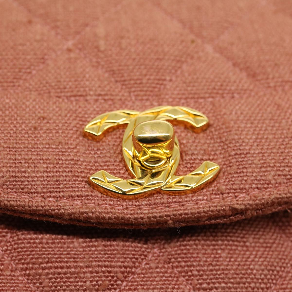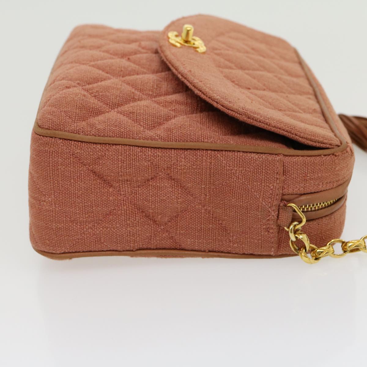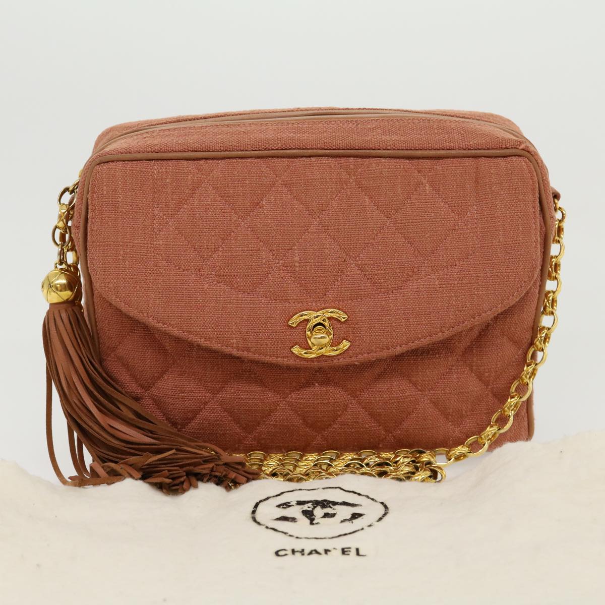 Chanel Diana Turn Lock Chain Shoulder Bag Linen Fringe Pink CC Auth 30153A